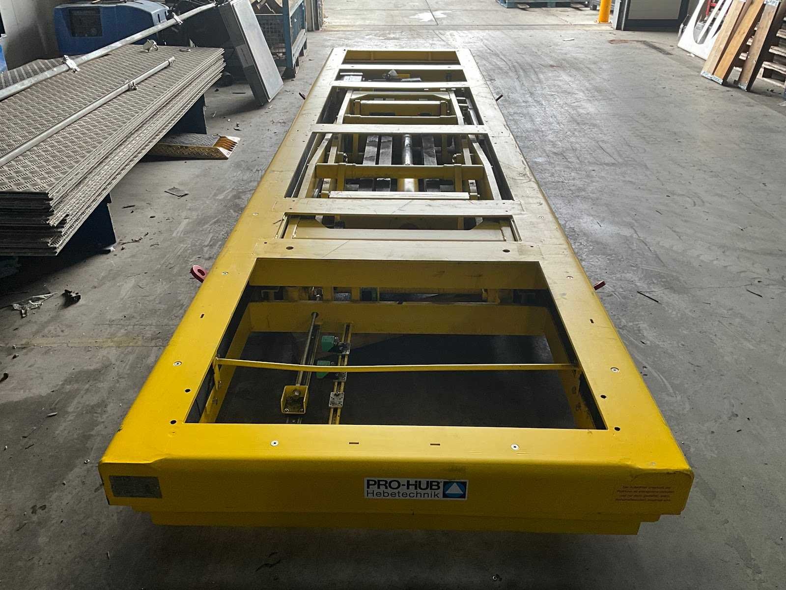 Hefvermogen 1500 kg Merk: pro-hub Type: 2016-00327-01 Aansluiting: 380V Eigen gewicht: 2000kg Totale afmeting L: 5000mm Totale afmeting Breedte: 1200mm Totale afmeting Hoogte: 300mm