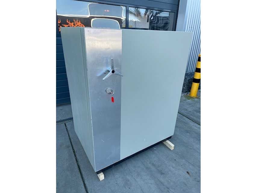Merk: Lips Product type: Brandveilige kluis Kleur: Grijs Lengte: 80cm Breedte: 115cm Hoogte: 135cm Materiaal: Metaal
