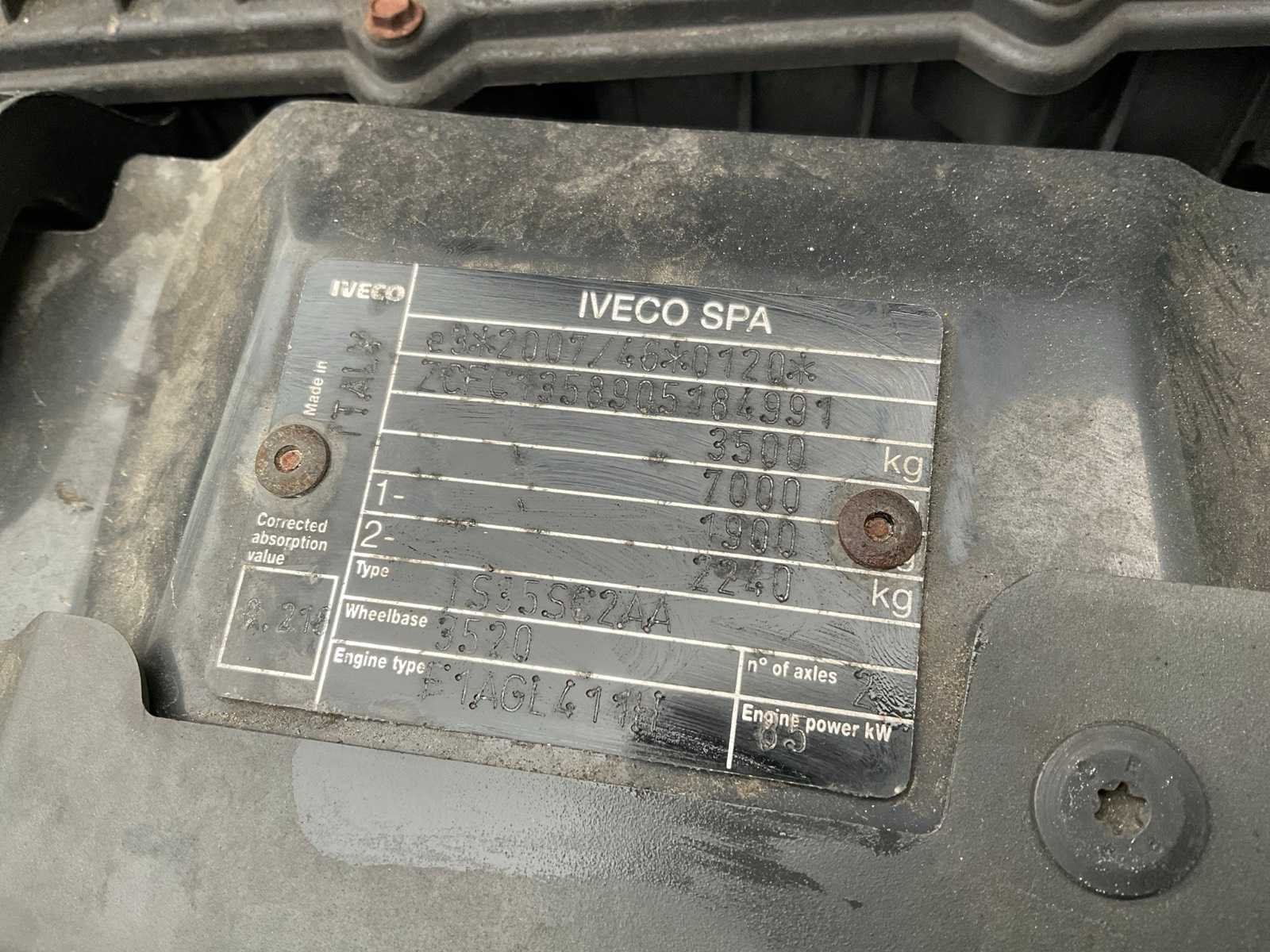 Kenteken: V-200-LS Merk: Iveco Type: 35s12 - L1H2 - Model: Daily Bouwjaar: 2018 Afgelezen kilometerstand: 111869km Cilinderinhoud: 2287cc Vermogen (kW): 85kW Brandstof: diesel Datum eerste toelating: 2018-02-19 Datum eerste toelating (NL): 2018-02-19 APK vervaldatum: 2025-04-23 NAP status: Logisch Transmissie: Automaat Aantal zitplaatsen: 3 Kleur: niet van toepassing Bruto BPM (NL): 14663 Rest BPM: 0 Aantal sleutels: 1 Ledig gewicht: 2230kg Laadvermogen: 1270kg Vermogen (pk): 116 Aantal cilinders: 4 Carrosserie: gesloten opbouw Emissieklasse: 6 Maximaal trekgewicht ongeremd: 750