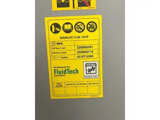Met toebehoren zichtbaar op foto's Merk: Creemers Type: RCC 15 Freq Bouwjaar: 2019 Capaciteit.: 5.5-13bar Vermogen: 15kW Aansluiting: 230V