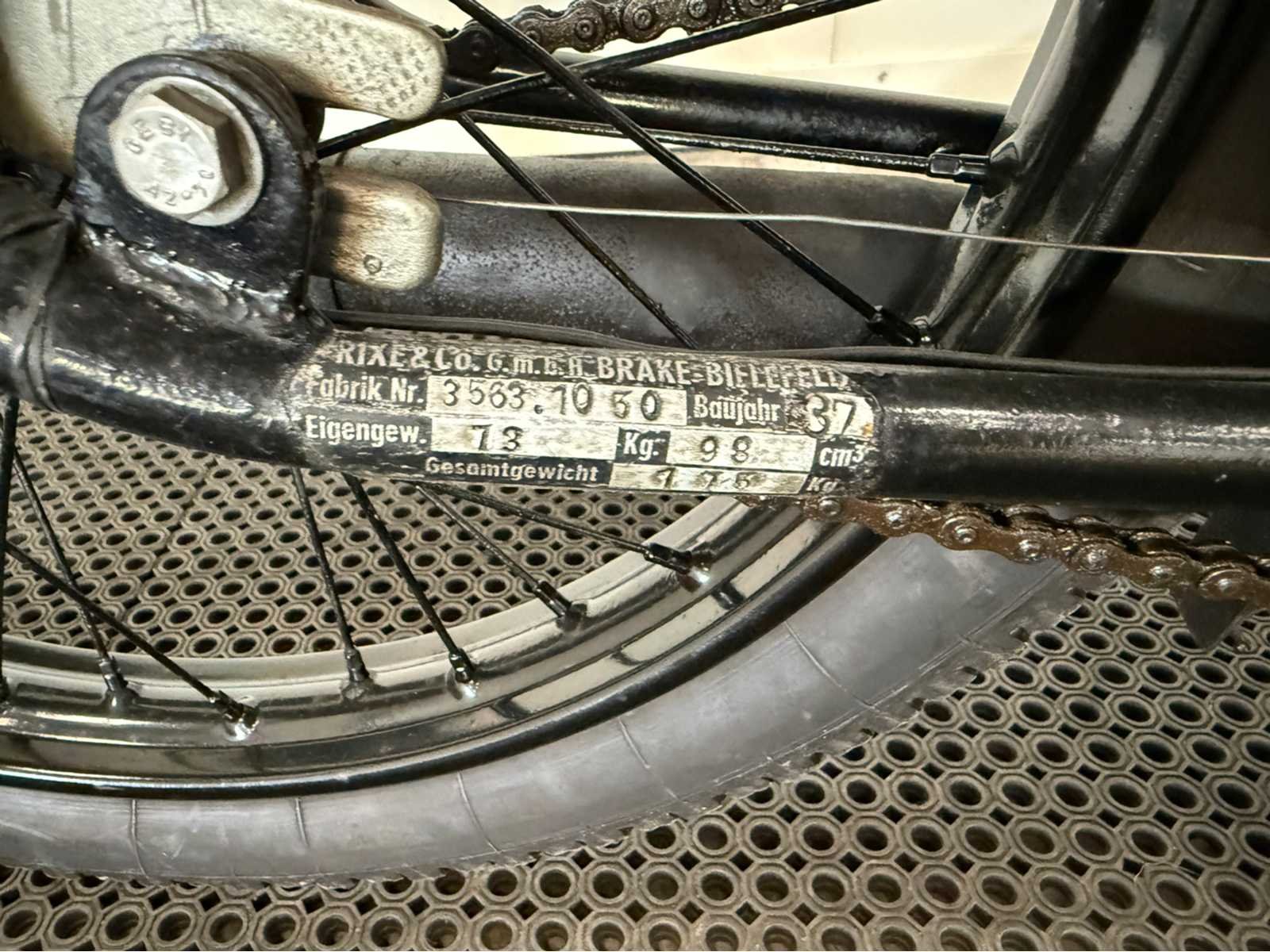 Uit priveverzameling, start en rijdt niet Merk: Rixe Model: ZM1113 Kenteken: ZM-11-13 Brandstof: benzine Cilinderinhoud: 98cc Datum eerste toelating: 1937-06-30 Vermogen (kW): 0kW Kleur: niet van toepassing Datum eerste toelating (NL): 1990-11-23 Nationaliteit documenten: Nederlands Bouwjaar: 1937 No self drive export!: true