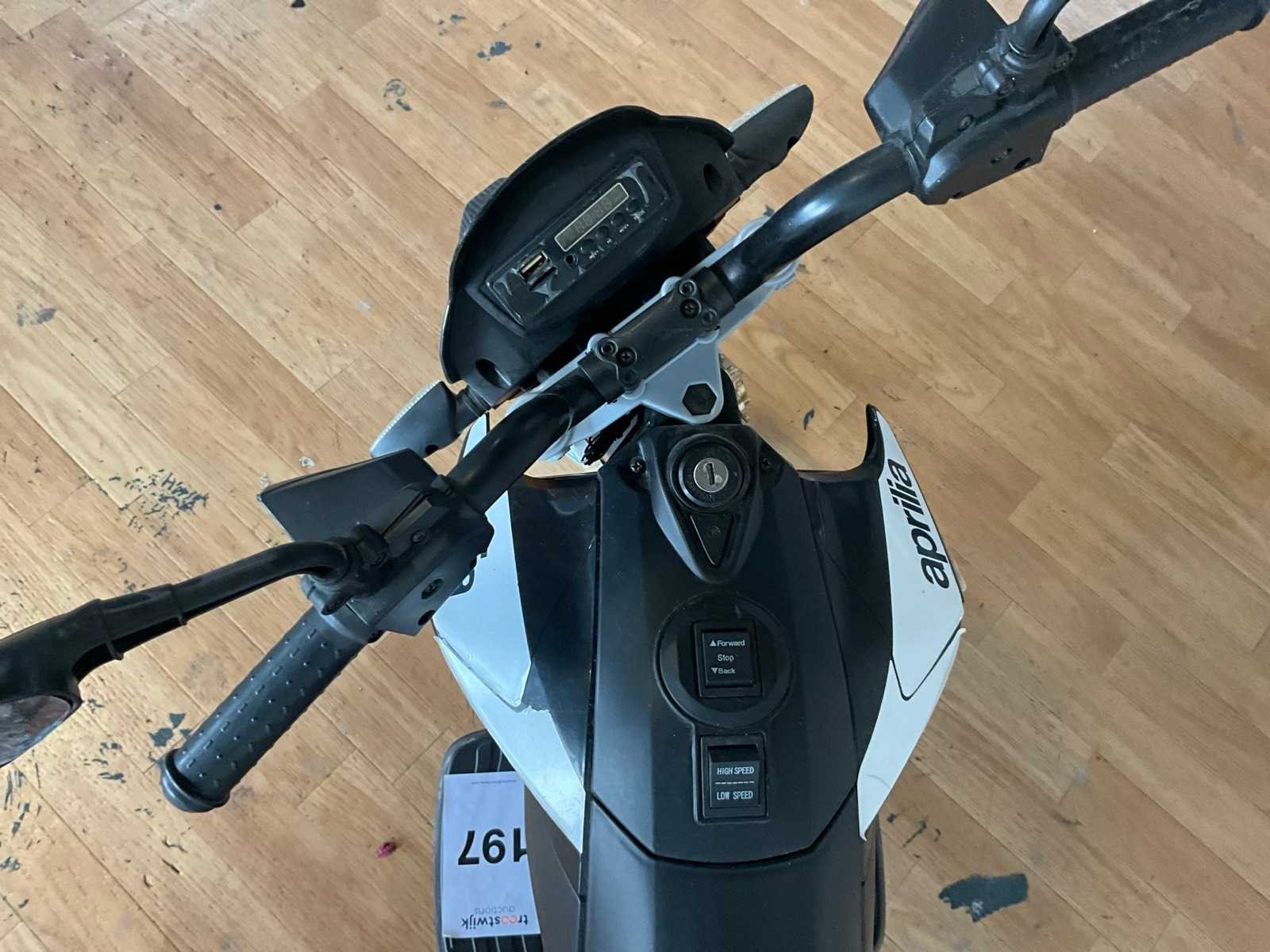 Zithoogte circa: 44 cm. Voorzien van zijwieltjes. Merk: Aprilla Lengte: 100cm Breedte: 50cm Hoogte: 60cm
