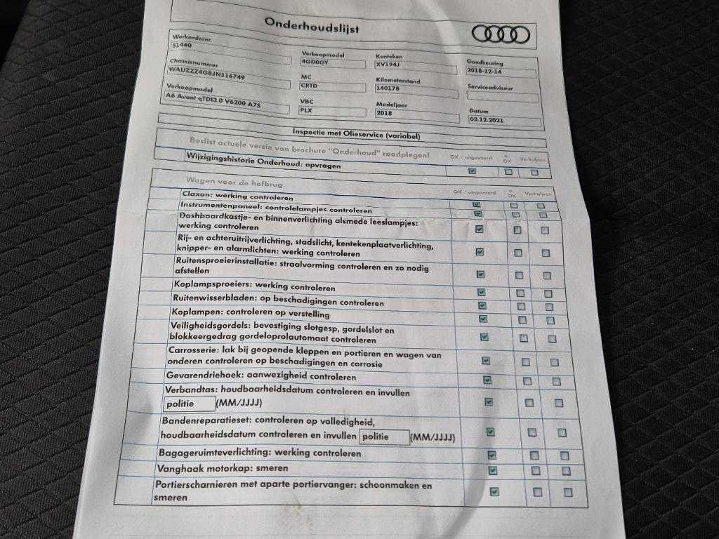 Kenteken: XV-194-J Merk: Audi Model: A6 Avant Type: 50 TDI q. Sp. P.L. Afgelezen kilometerstand: 288140km Cilinderinhoud: 2967cc Vermogen (kW): 200kW Brandstof: Diesel Chassisnummer: WAUZZZ4G8JN116749 NAP status: Geen oordeel Datum eerste toelating: 2018-11-21 Datum eerste toelating (NL): 2019-03-26 APK vervaldatum: 2026-03-19 Aantal zitplaatsen: 5 Kleur: wit Transmissie: Automaat Stuurwiel: links Emissieklasse: 6 Aantal deuren: 4 Ledig gewicht: 1810kg Aantal cilinders: 6 Carrosserie: stationwagen Onderhoudshistorie: Ja gedeeltelijk Carfax Link: https://was.carfax.eu/v0/api/ccdid/5100016408/svc/201/vinreg/XV194J/checksum/eyJhbGciOiJIUzI1NiIsInR5cCI6IkpXVCJ9.eyJleHAiOjE3NzExNTYwMTB9.-R6j6frw6n6B4PK6L4MaZ_2wqx5YJR6TLEZluccenNY startinformatie : Start en rijdt