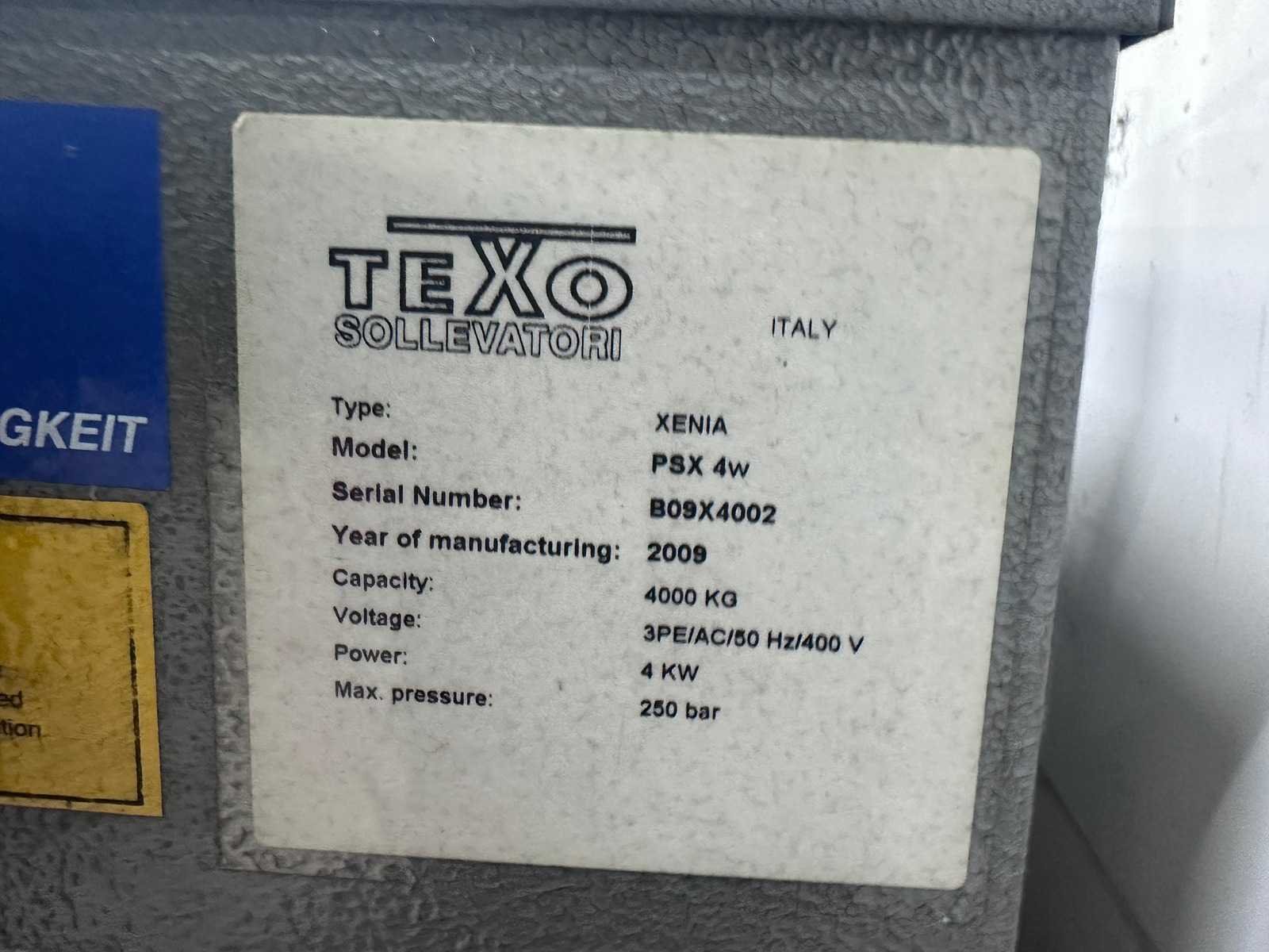 Is al volledig professioneel gedemonteerd en ligt opgeslagen op locatie. Merk: TEXO Xenia Type: PSX 4W Bouwjaar: 2009 Serienummer: B09X4002 Schaarhefbrug: true Aansluiting: 400V