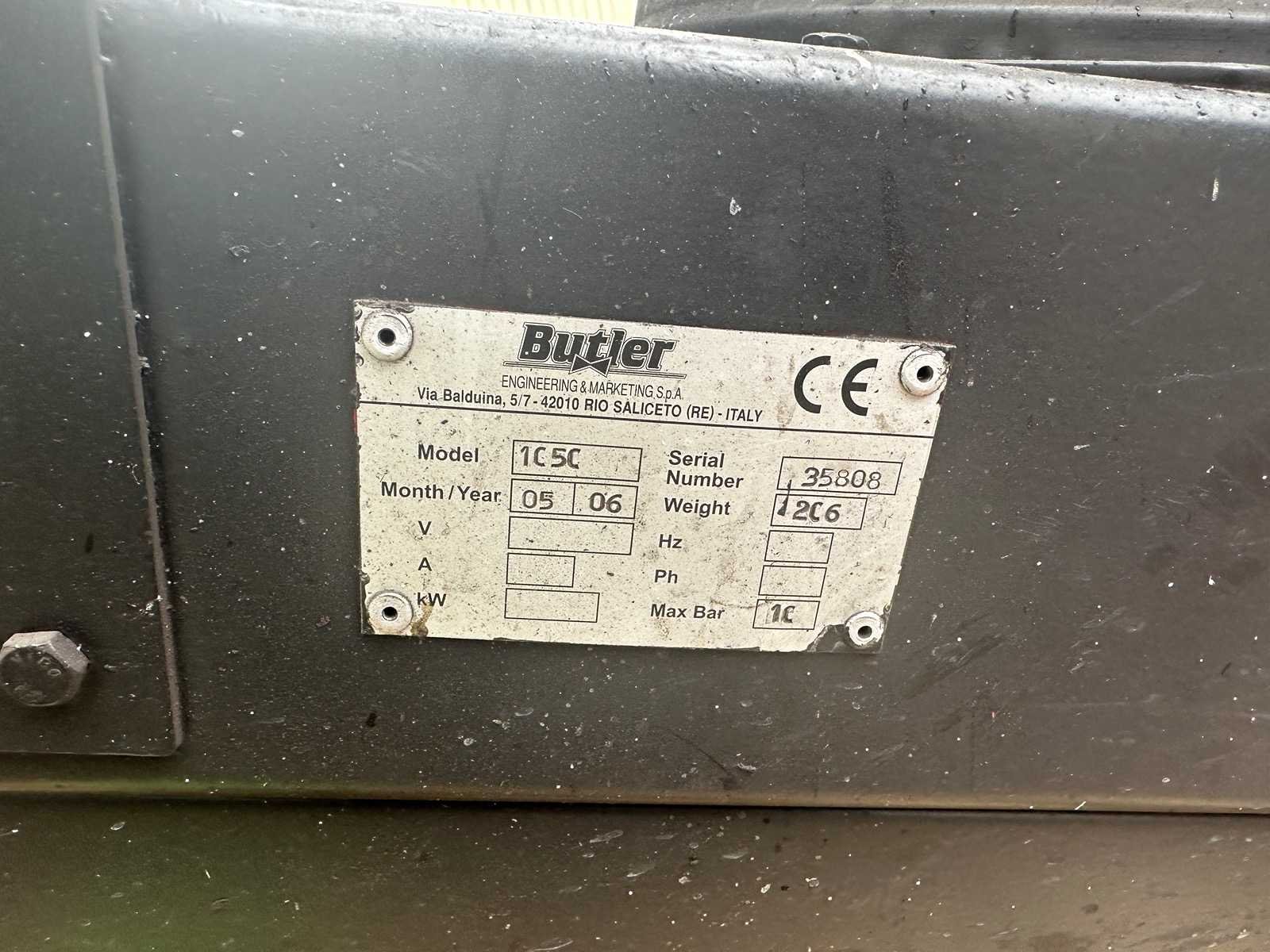 Merk: Butler Type: 1050 Bouwjaar: 2006 Serienummer: 35808 Eigen gewicht: 206kg