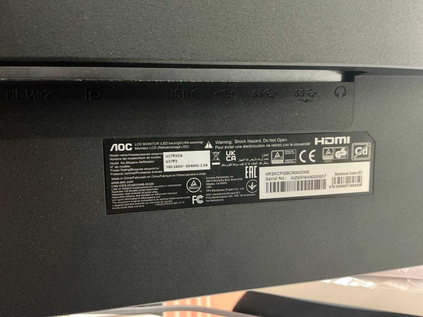 Met ingebouwde usb-C dock Merk: AOC Model: U27P2CA Displaypoort: 2 VGA: 1 HDMI: 1 USB: 4 Pc monitor: Ja Beelddiagonaal: 27'' Kleur: Zwart Met voedingskabel: true