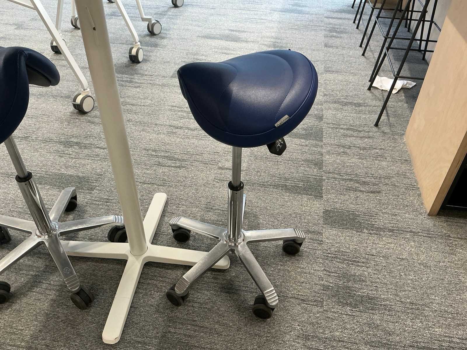 Ronde tafel inclusief 2x 8core werkkruk/zadelkruk Lengte: 70cm Breedte: 70cm Hoogte: 105cm
