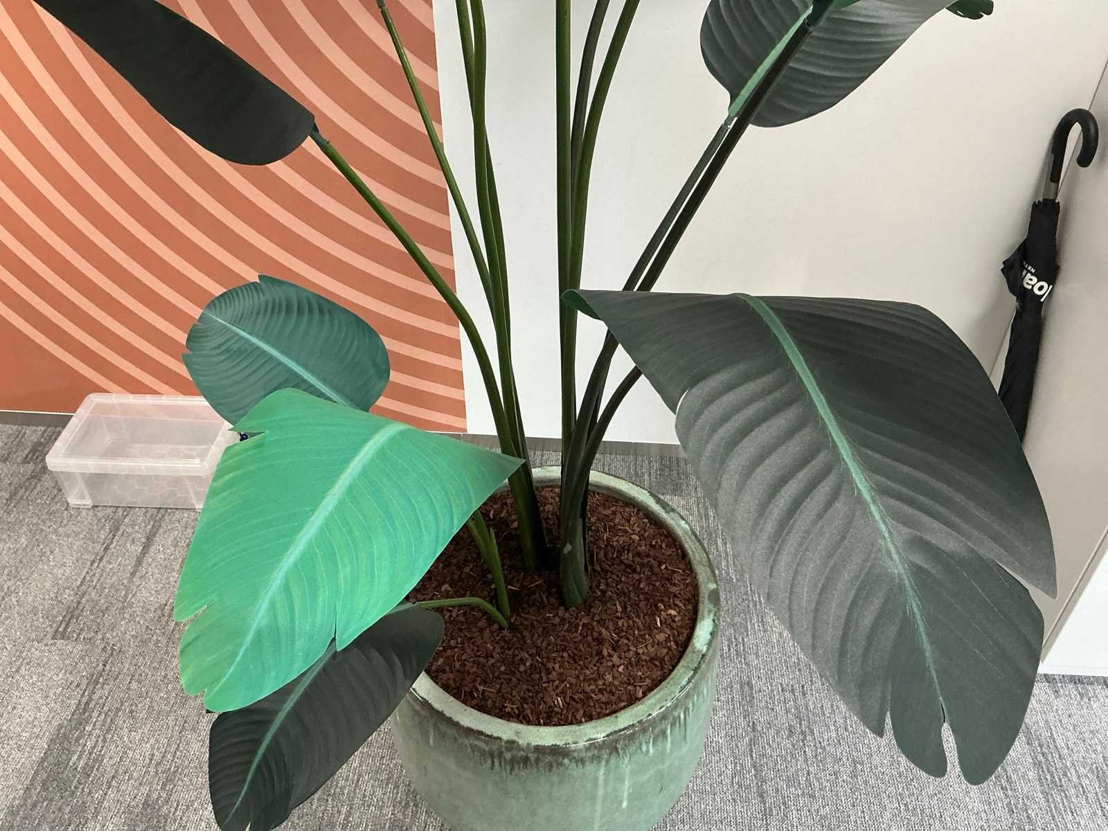 2x kunstplant in pot (afmetingen pot; 53x53x47cm en 42x42x53cm), hoogte planten ca 240cm