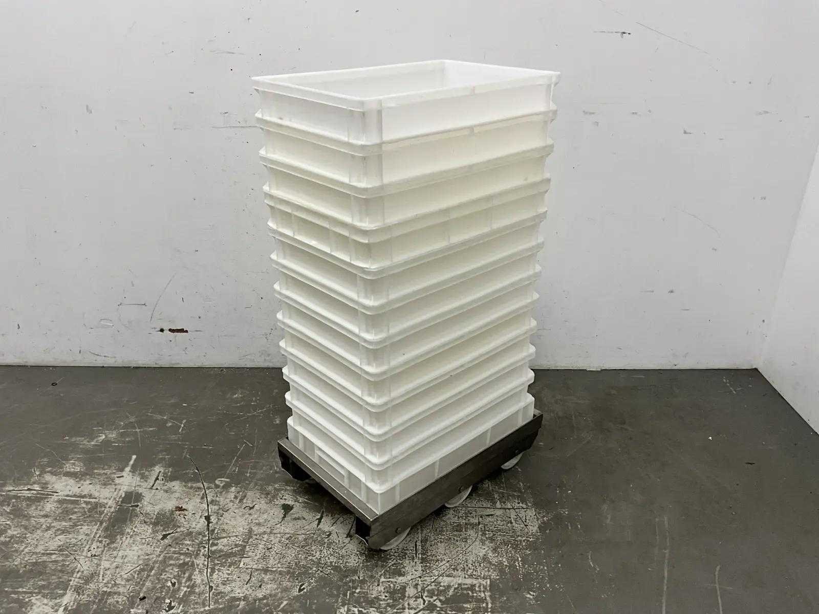 V.v. 12 deegkratten en krattentransportkar. Merk: Dominioni Model: P55R Lengte: 750mm Breedte: 950mm Hoogte: 1530mm