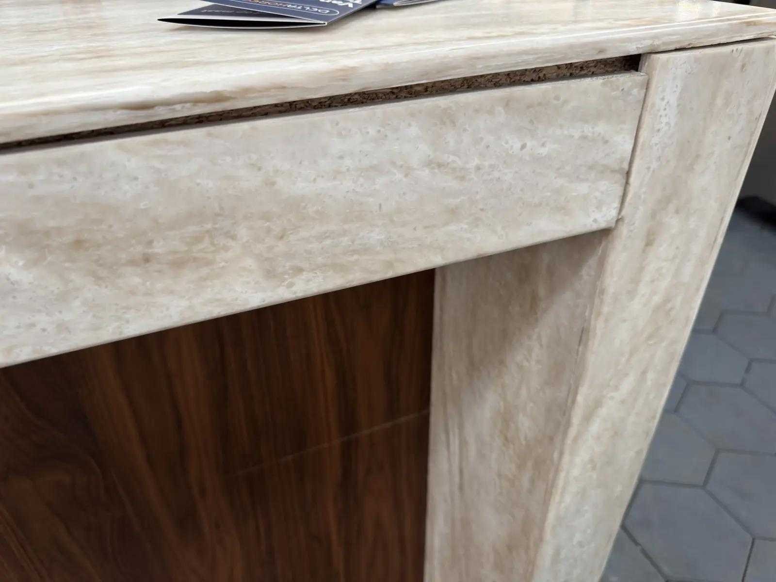 Reeds professioneel gedemonteerd en zorgvuldig getransporteerd naar de afhaallocatie. LET OP! Voor bovenstaande kunnen additionele kosten van toepassing zijn. De totale hoogte van de bar met kraan is 1550mm. KRION® is een solide oppervlaktemateriaal (Solid Surface) van de nieuwe generatie ontwikkeld door SYSTEMPOOL, bedrijf van de Porcelanosa Groep. Het is een zeer aangenaam materiaal, vergelijkbaar met natuursteen. Het bestaat voor tweederde deel uit natuurlijke mineralen (ATH: Aluminiumtrihydroxide) en een laag percentage aan hars met een hoge bestendigheid. Merk: Krion by ZW interior Totale afmeting L: 5000mm Totale afmeting Breedte: 1100mm Totale afmeting Hoogte: 1150mm