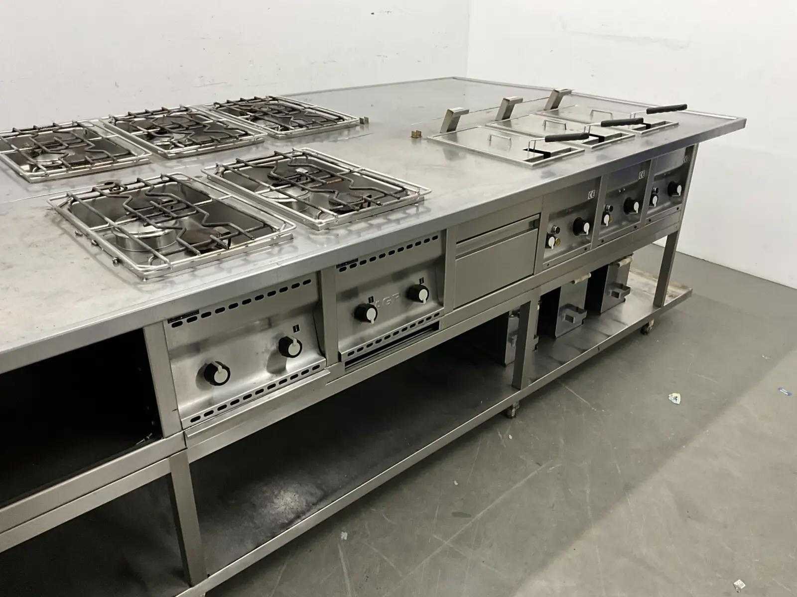 V.v. 10 gaspitten, 3 elektrische friteuses (incl. 1x nieuw verwarmingselement) en Etagere. Merk: AGP