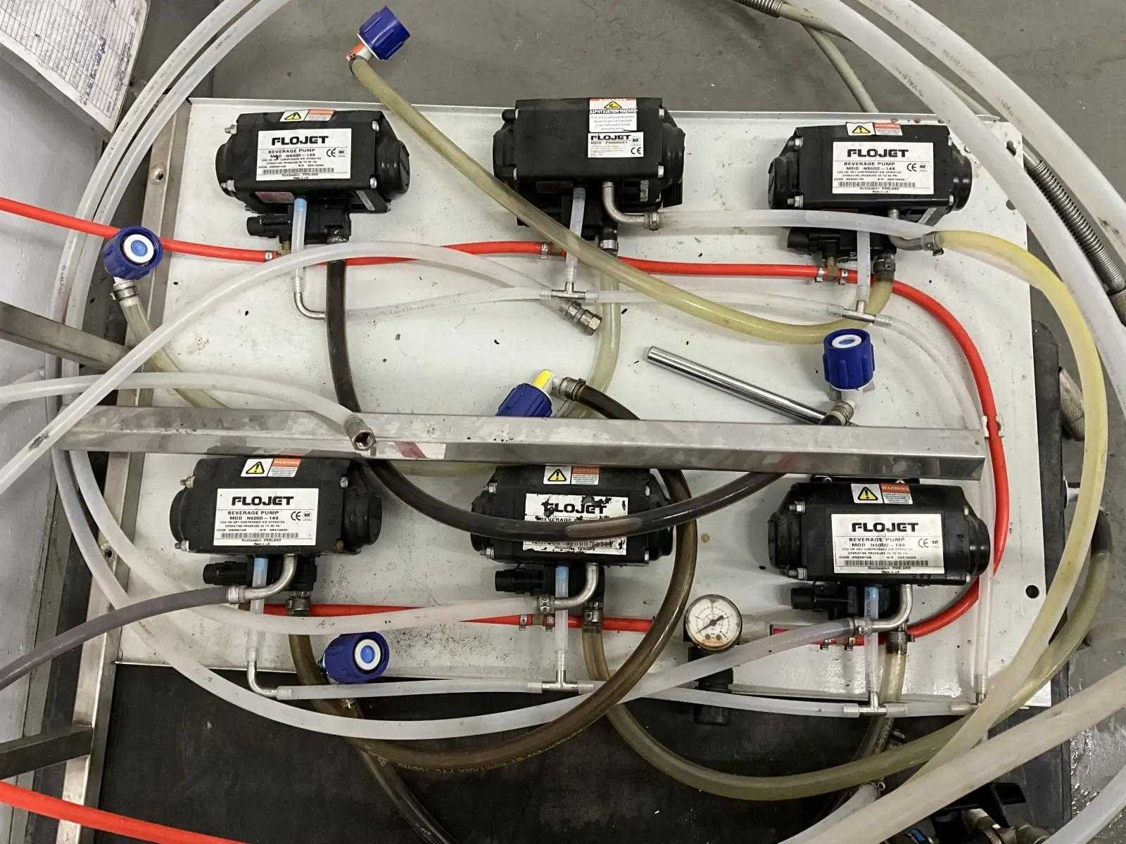 V.v. Flojet Sirooppompen & koolzuur drukregelaars en aansluitingen. Merk: Celli Dispensing Equipment Model: Ideal/Brave60