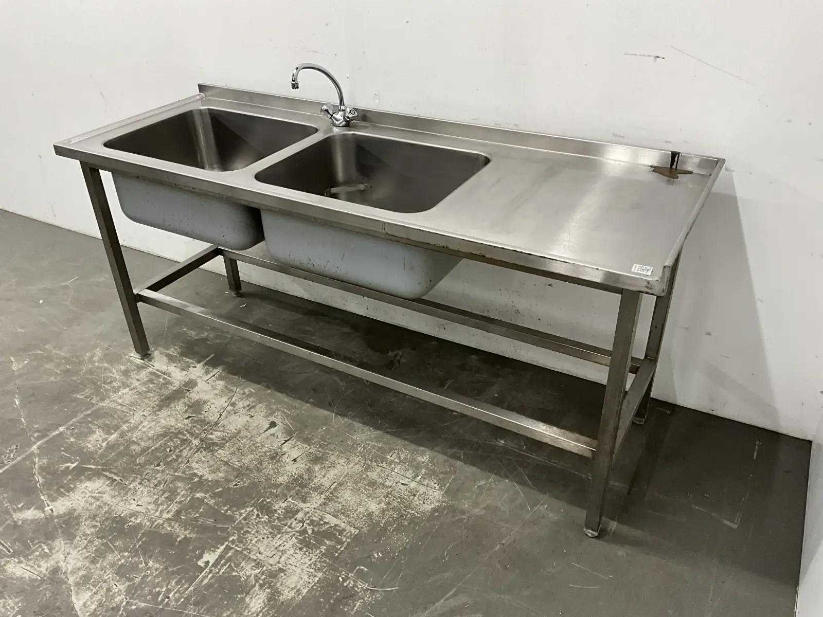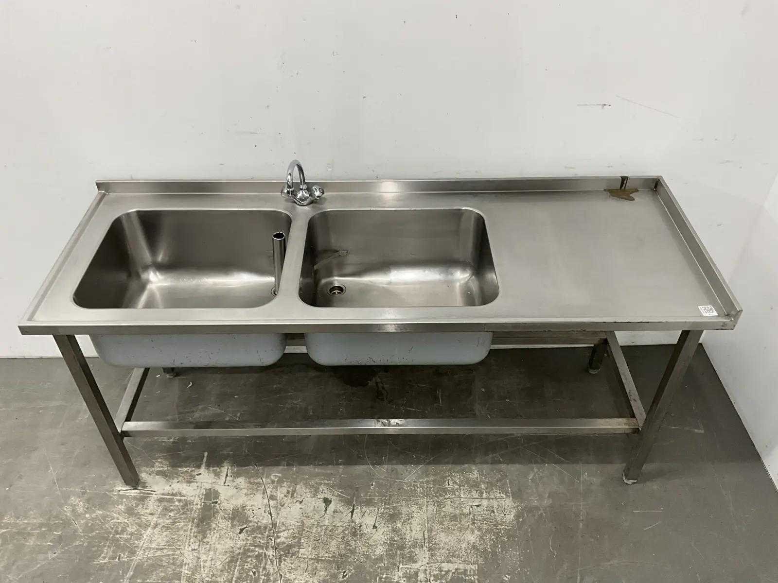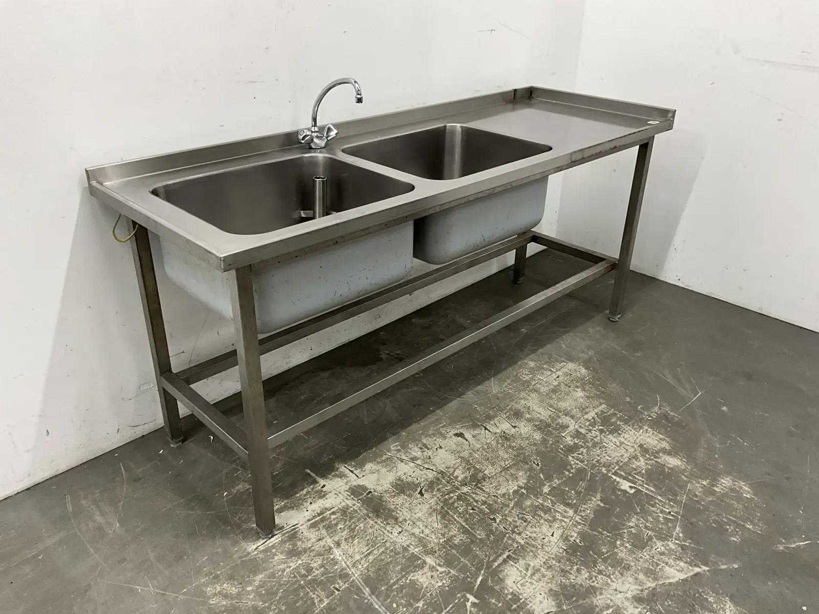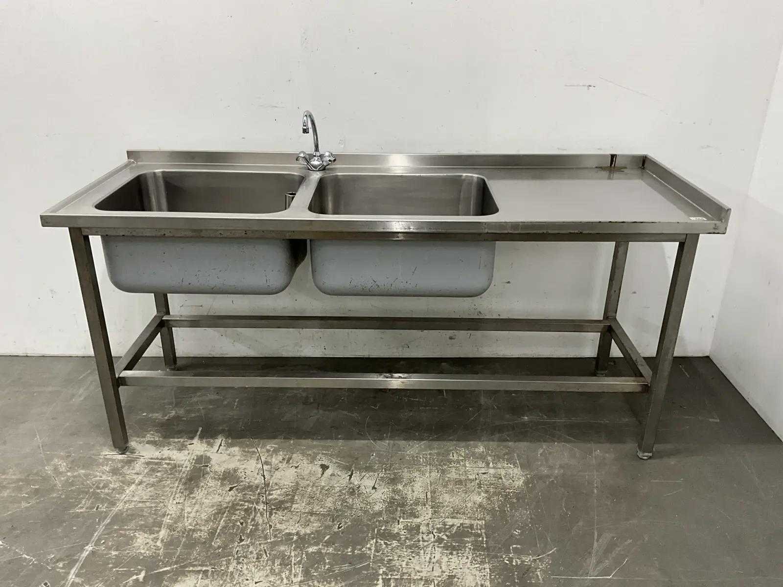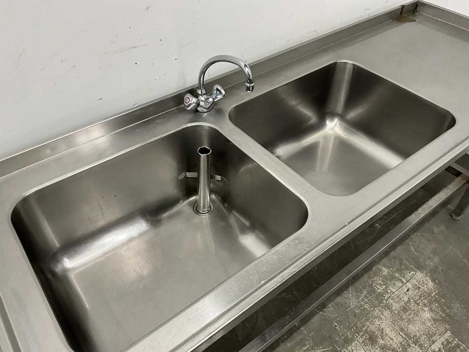 Afmeting spoelbakken: 60x50x30 cm. V.v. mengkraan. Lengte: 200cm Breedte: 70cm Hoogte: 93cm