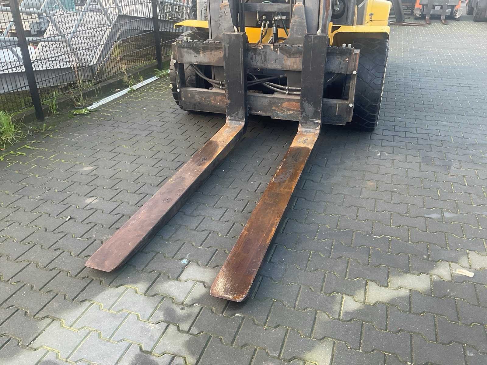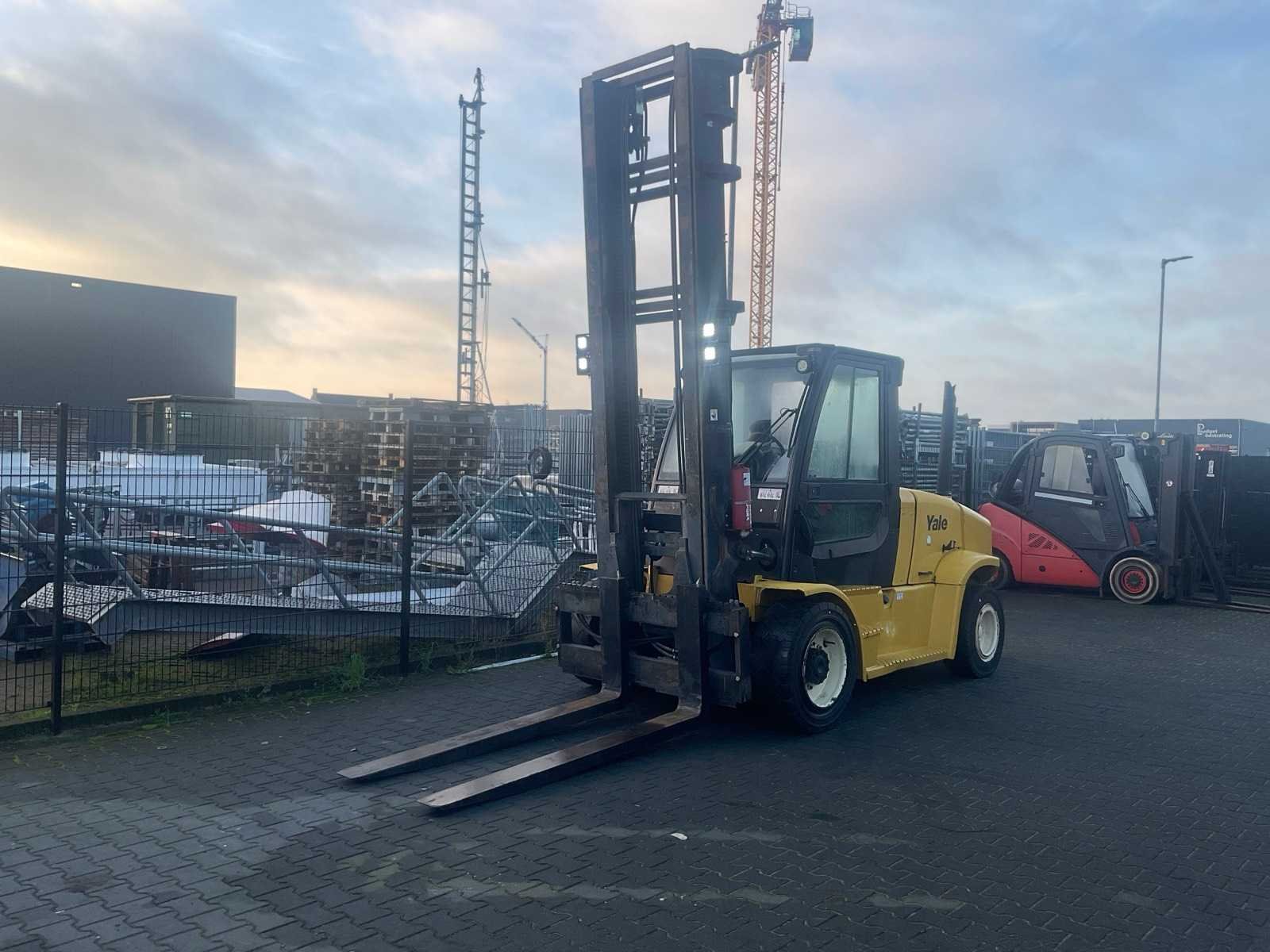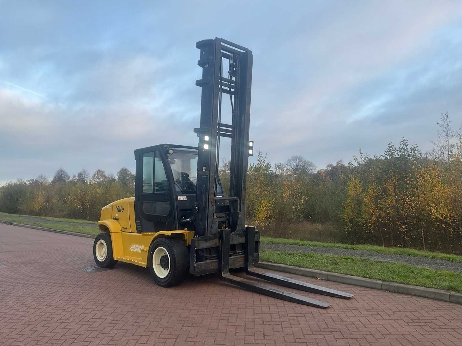 Mast kan. Gedemonteerd worden. Voor. Transport. 2x extra functie aan het vorkenbord Merk: Yale Type: Gdp80v Bouwjaar: 2017 Serienummer: B909101640R Brandstof: Diesel Mast: Duplex Soort band: Volrubber banden Aantal wielen: 4 Afgelezen urenstand: 1142 Eigen gewicht: 13020kg Hefvermogen: 8000kg Lepellengte: 1950mm Max. hefhoogte: 6065mm Hefhoogte: 6065mm Vol rubber banden: true Totale afmeting L: 4100mm Totale afmeting Breedte: 2000mm Totale afmeting Hoogte: 4200mm Diesel: true