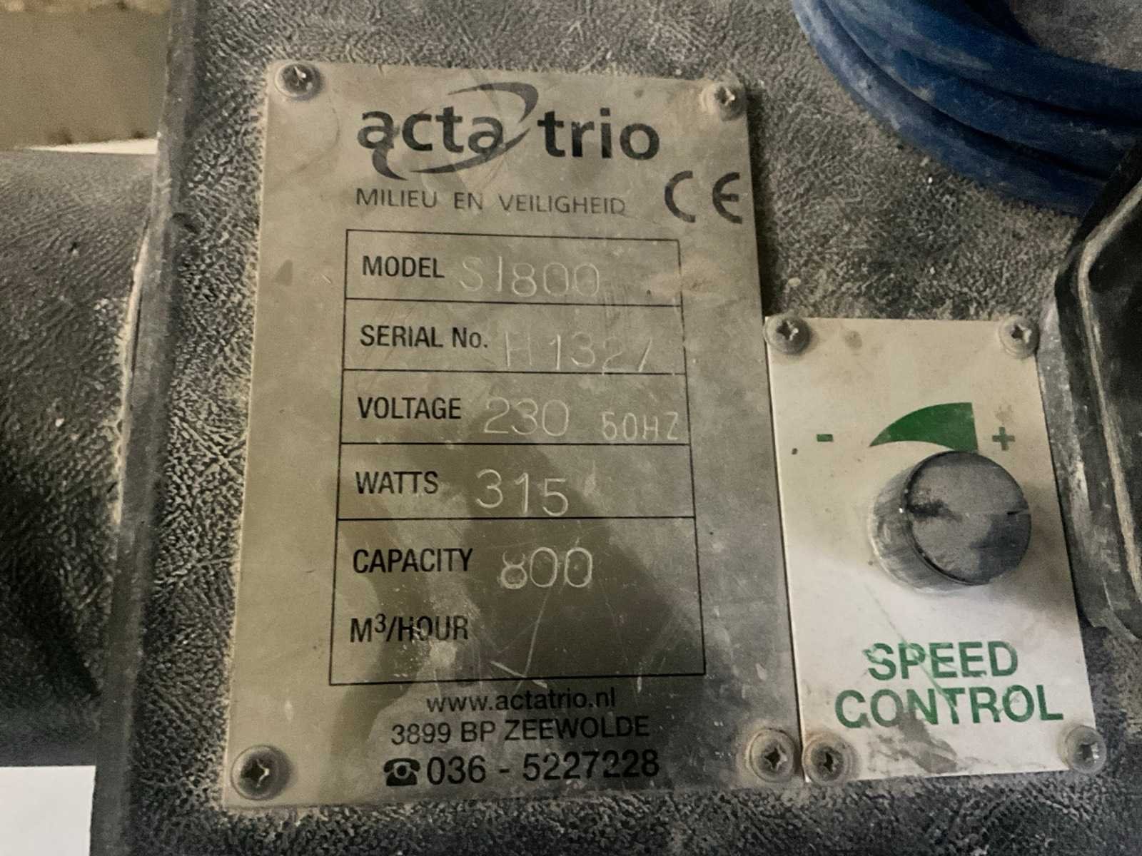 Capaciteit circa: 800 m3/h Merk: Acta trio Type: S1800 Totale afmeting L: 370mm Totale afmeting Breedte: 500mm Totale afmeting Hoogte: 500mm