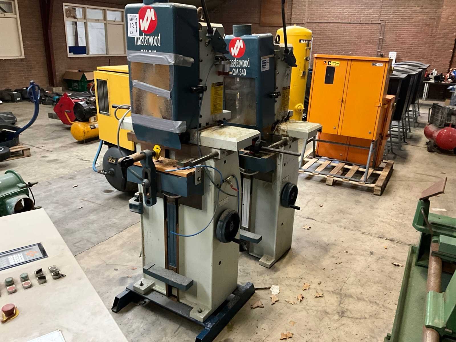 Volgens opgave beide defect Merk: Masterwood Type: OM340 Bouwjaar: 1999 Aansluiting: 400V Totale afmeting Breedte: 1300mm Totale afmeting Hoogte: 1950mm Totale afmeting L: 850mm Gewicht: 340