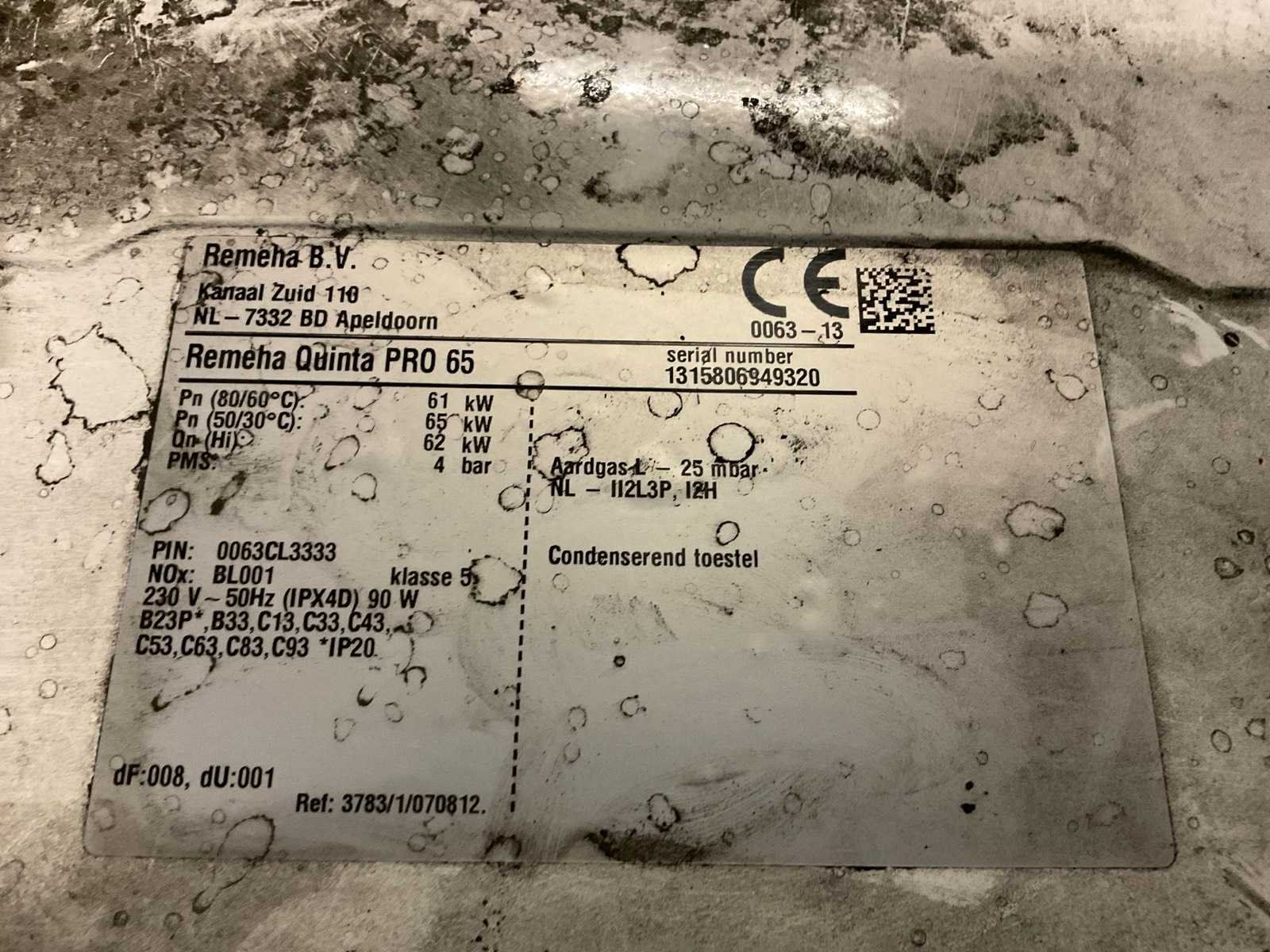 3 x.blowers Merk: Remeha Type: Quinte pro 45-65 Gasgestookt: true Capaciteit.: 65kW Maximale werkdruk: 4bar Aansluiting: 220V Totale afmeting L: 500mm Totale afmeting Breedte: 500mm Totale afmeting Hoogte: 1300mm