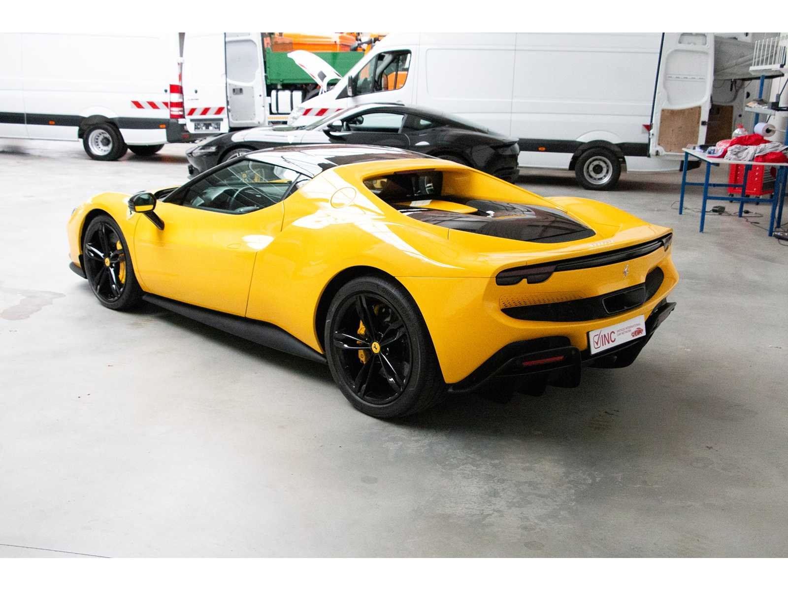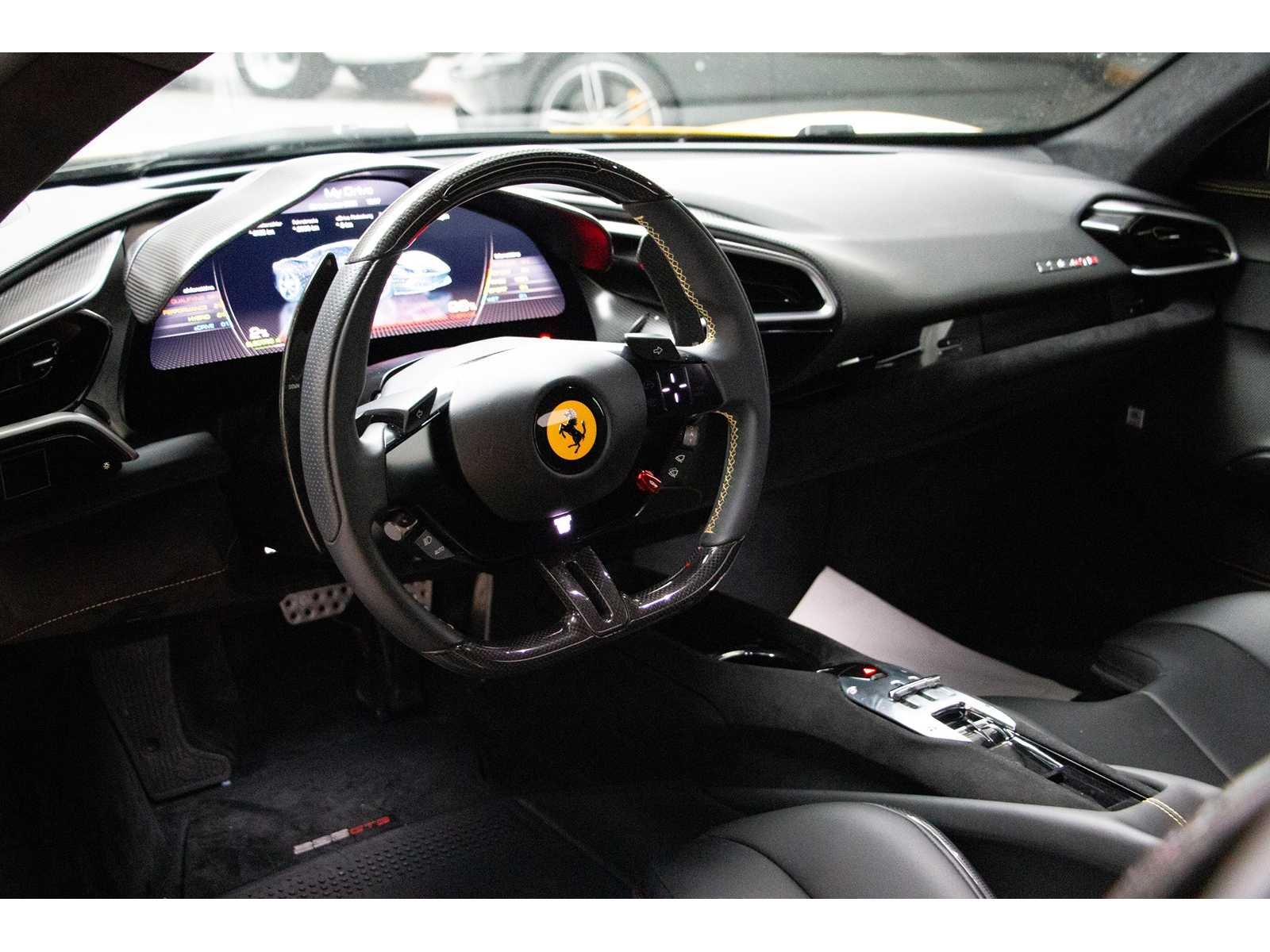 Ferrari 296 GTB – Hybride Supercar met Italiaanse Ziel Deze Ferrari 296 GTB vertegenwoordigt het nieuwe hoofdstuk van Ferrari: compacte kracht, Formule 1-technologie en tijdloze elegantie in één pure rijdersauto. Uitgevoerd in Giallo Modena met contrasterende zwarte accenten is dit exemplaar niet alleen technisch bijzonder, maar ook visueel een statement. Onder de glazen motorkap ligt een 3.0 liter V6 twin-turbo gekoppeld aan een elektromotor samen goed voor maar liefst 830 pk. De sprint van 0 naar 100 km/h duurt slechts 2,9 seconden, terwijl volledig elektrisch rijden ook mogelijk is dankzij het e-Drive systeem. Deze 296 GTB is uitgevoerd met: Giallo Modena lak met Nero details en striping Zwart gesmede velgen met gele remklauwen Achterwielaandrijving en 8-traps DCT automaat Hybride aandrijving met 25 km elektrisch bereik Actieve aerodynamica en Ferrari Side Slip Control Het design ademt klassieke Ferrari-heritage, maar met moderne finesse. Slanke LED-koplampen, brede heupen, luchtinlaten achter de deuren en een cockpit die volledig op de bestuurder is gericht. Een auto voor wie prestaties zoekt, maar ook schoonheid en zeldzaamheid waardeert. Merk: Ferrari Model: 296 GTB Type: Coupe Bouwjaar: 2023 Afgelezen kilometerstand: 3.040km Cilinderinhoud: 2992cc Vermogen (kW): 625kW Brandstof: Benzine / Electrisch Datum eerste toelating: 30-08-2023 Vermogen (pk): 850hp Aandrijving: Elektrische motor + 7.45 kWh batterij Kleur: Geel/Zwart Transmissie: 8-traps DCT automaat Aantal deuren: 2 Aantal sleutels: 2 Aantal cilinders: 6 Nationaliteit documenten: Duits Airconditioning: true Navigatie: true Xenon verlichting: true LED-koplampen: true Leder bekleed: true