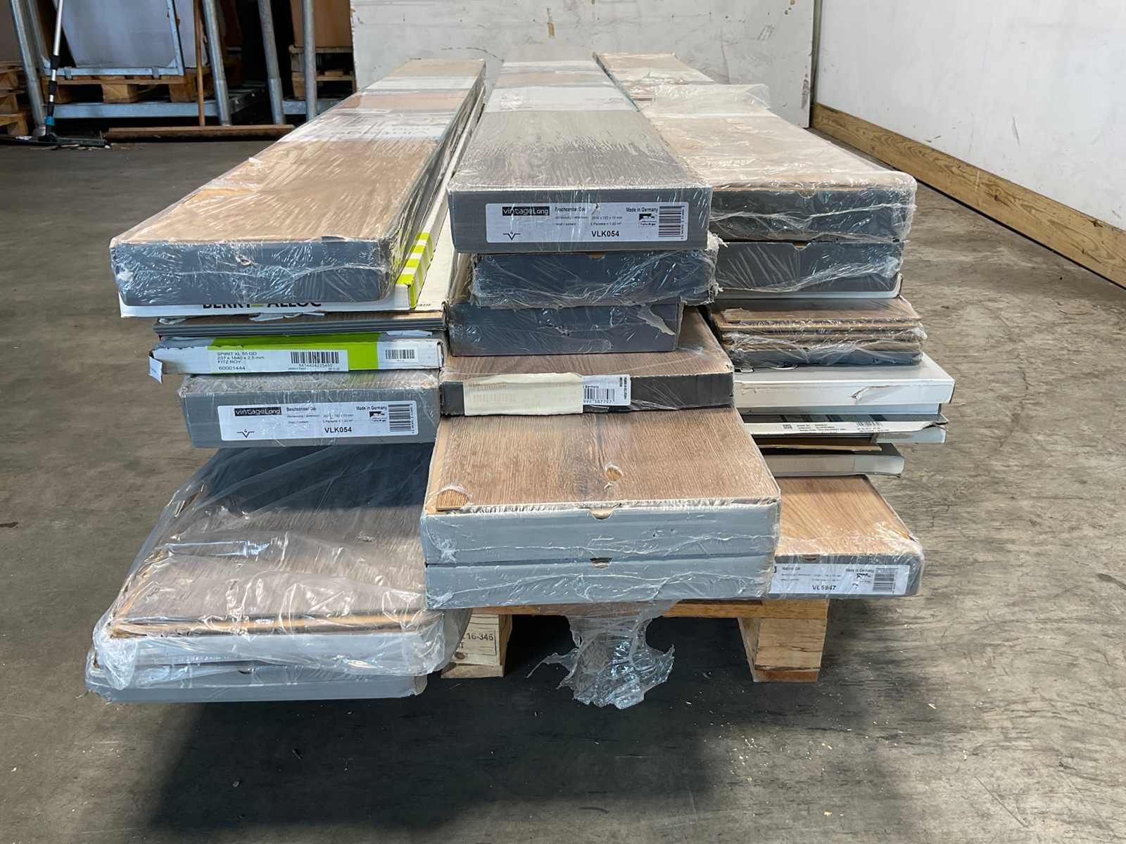 Mixpallet met diverse soorten laminaat – ongeveer 35 pakken, goed voor circa 80m². Bekijk de foto’s voor specificaties en details.