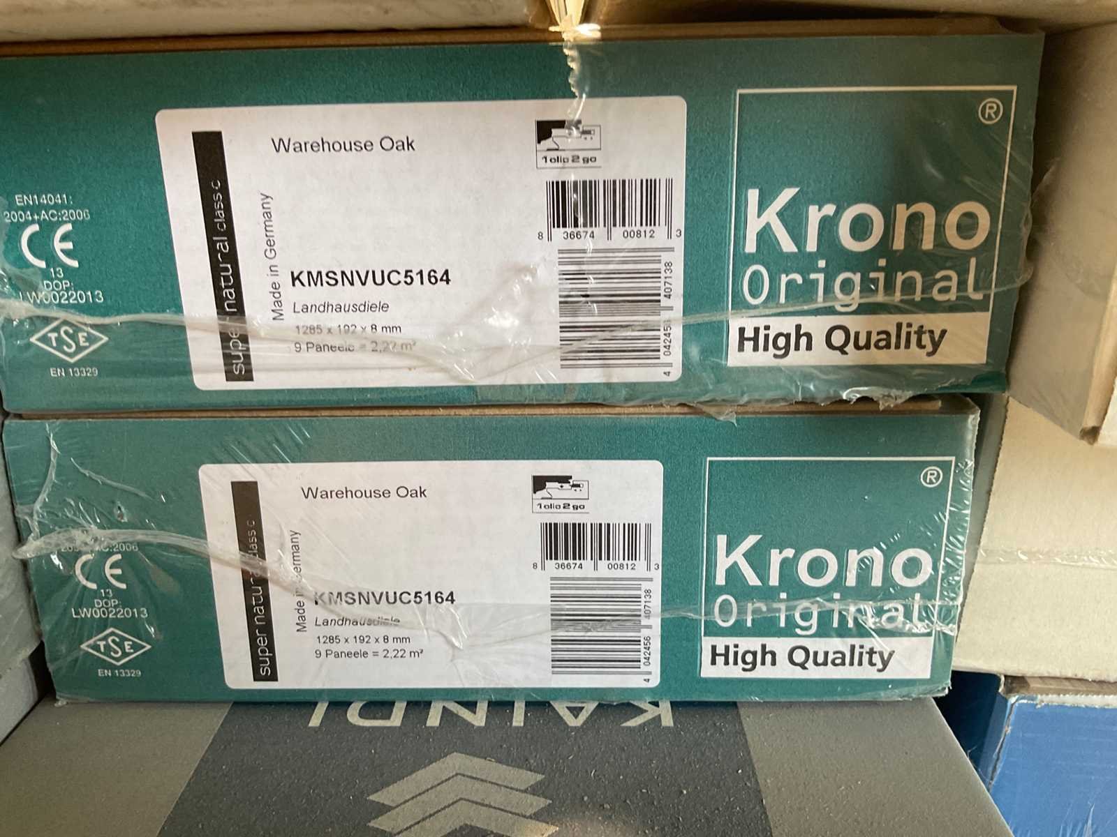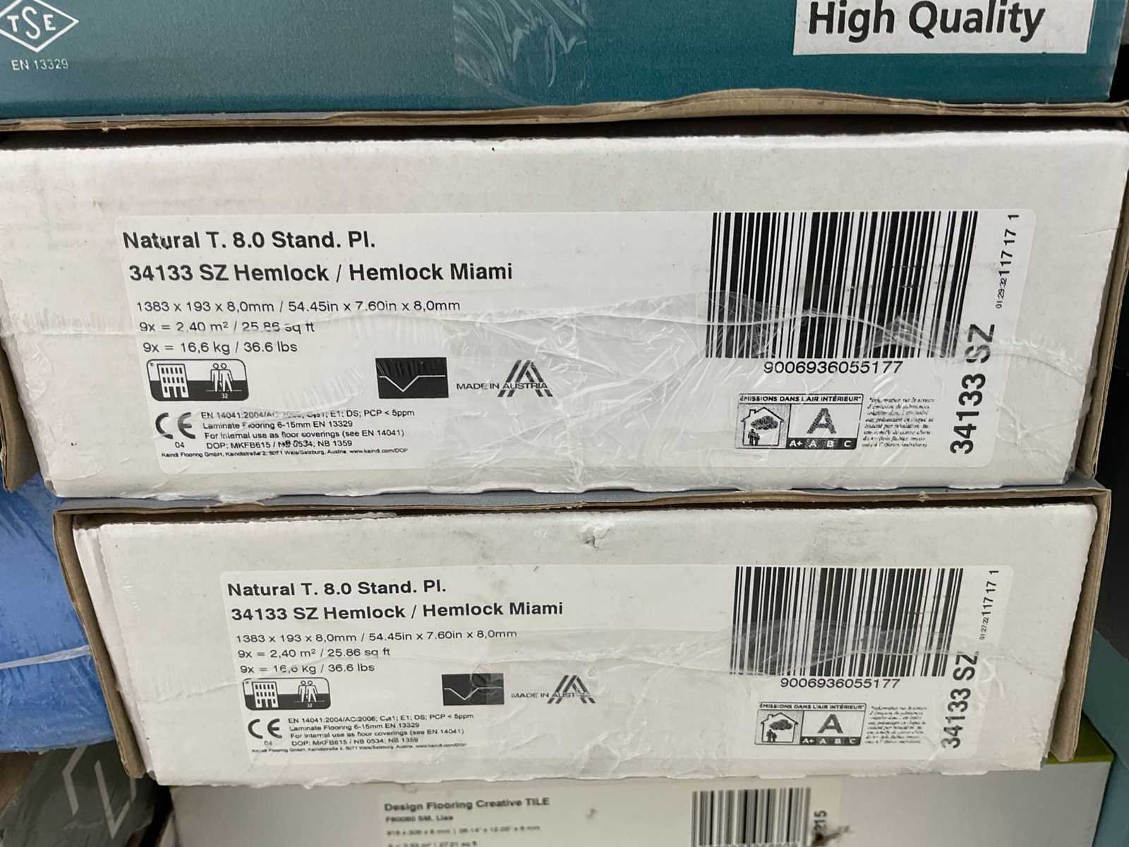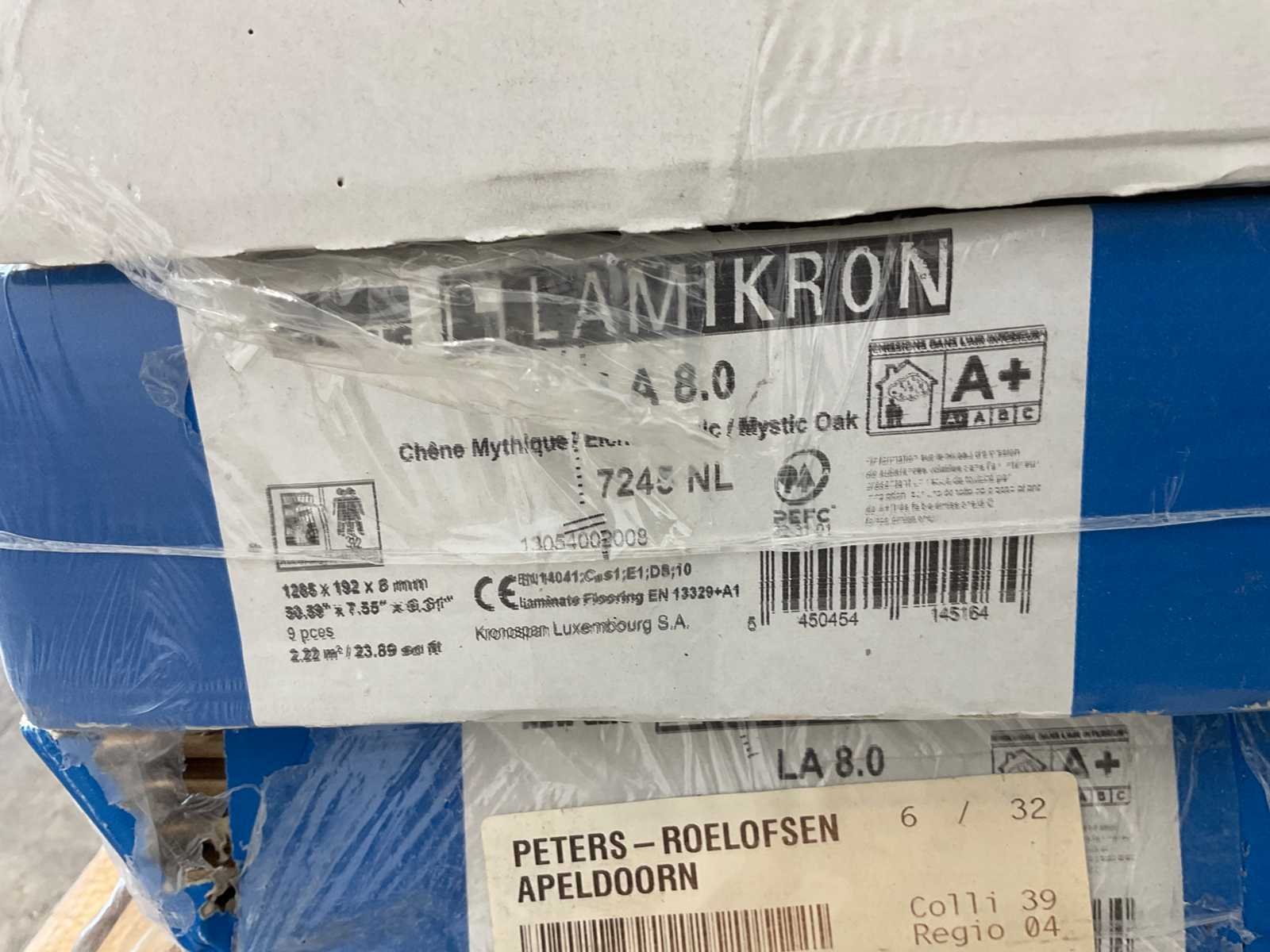 Mixpallet met diverse soorten laminaat – ongeveer 20 pakken, goed voor circa 45m². Bekijk de foto’s voor specificaties en details.