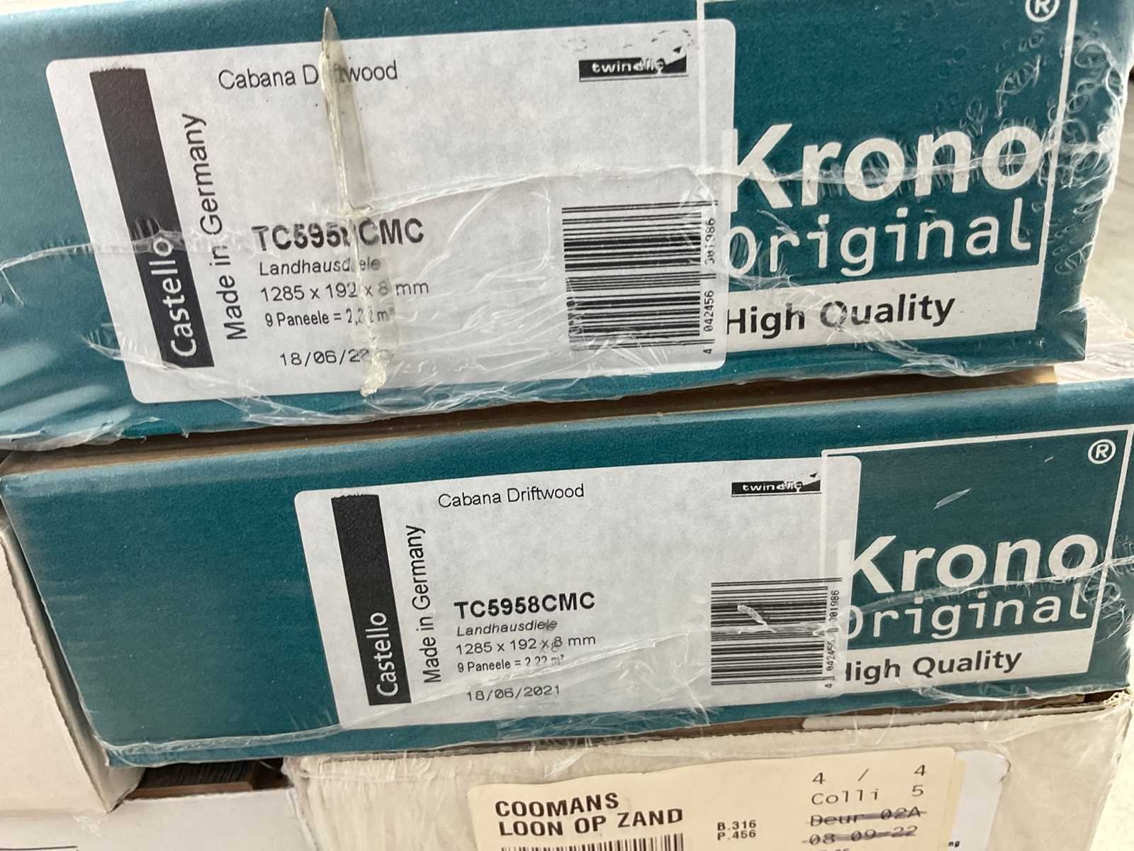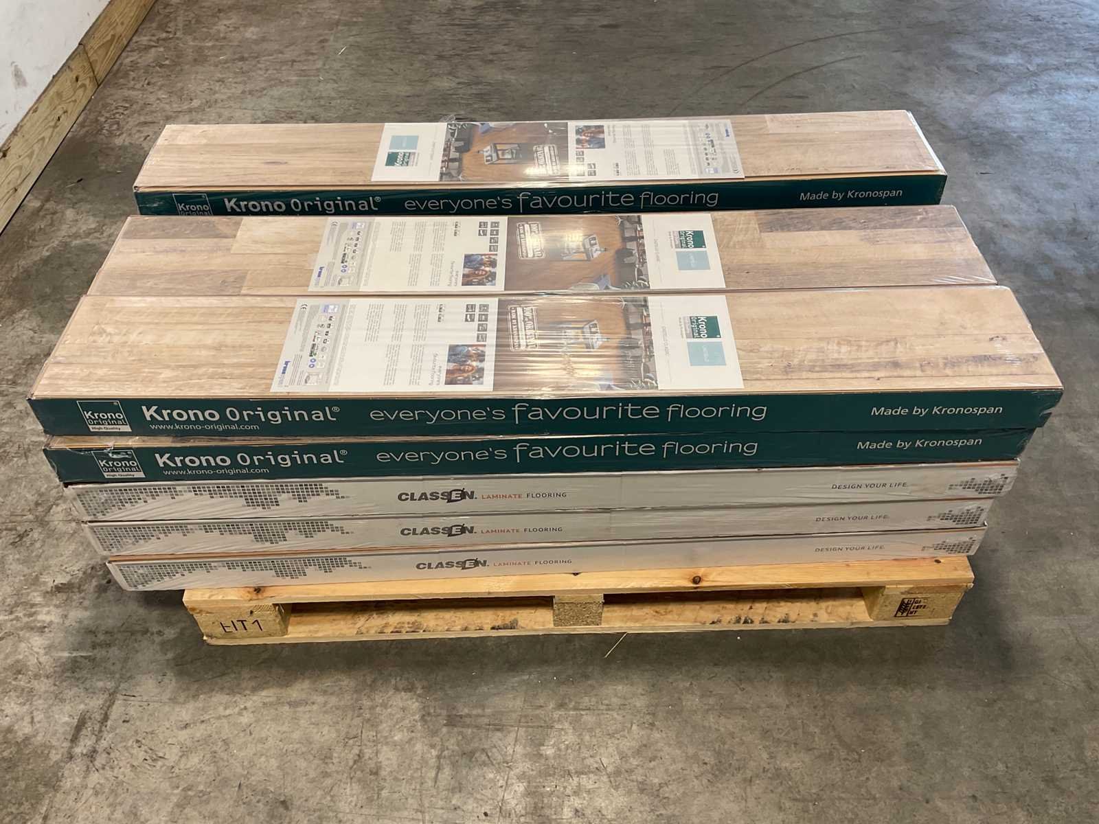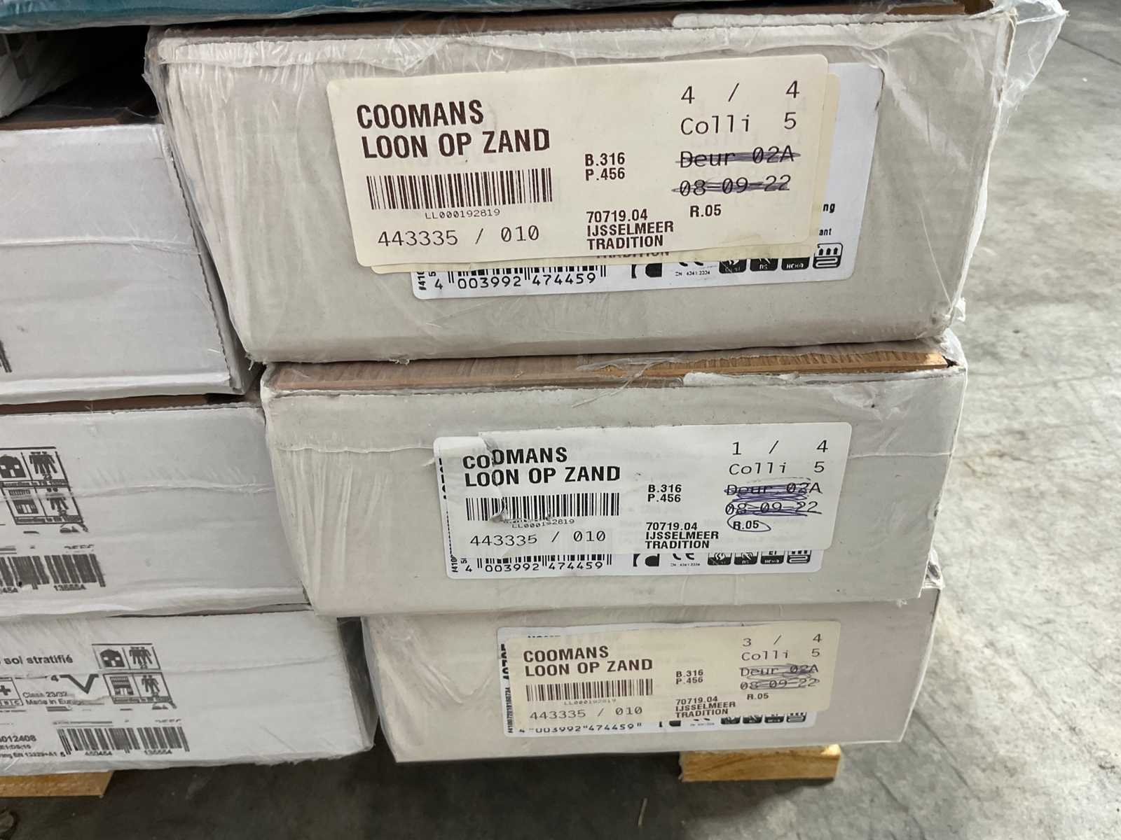 Mixpallet met diverse soorten laminaat – ongeveer 17 pakken, goed voor circa 38 m². Bekijk de foto’s voor specificaties en details.