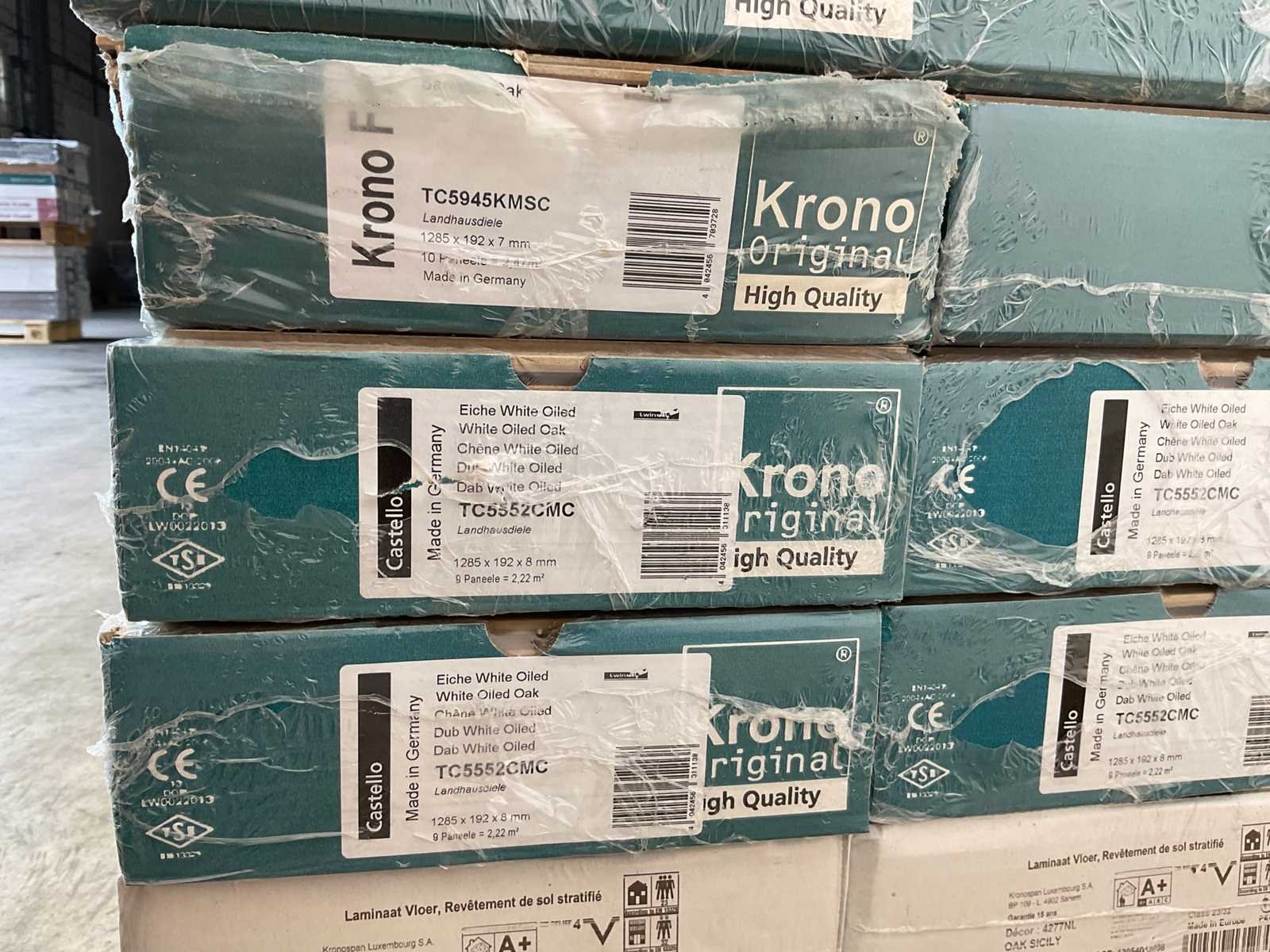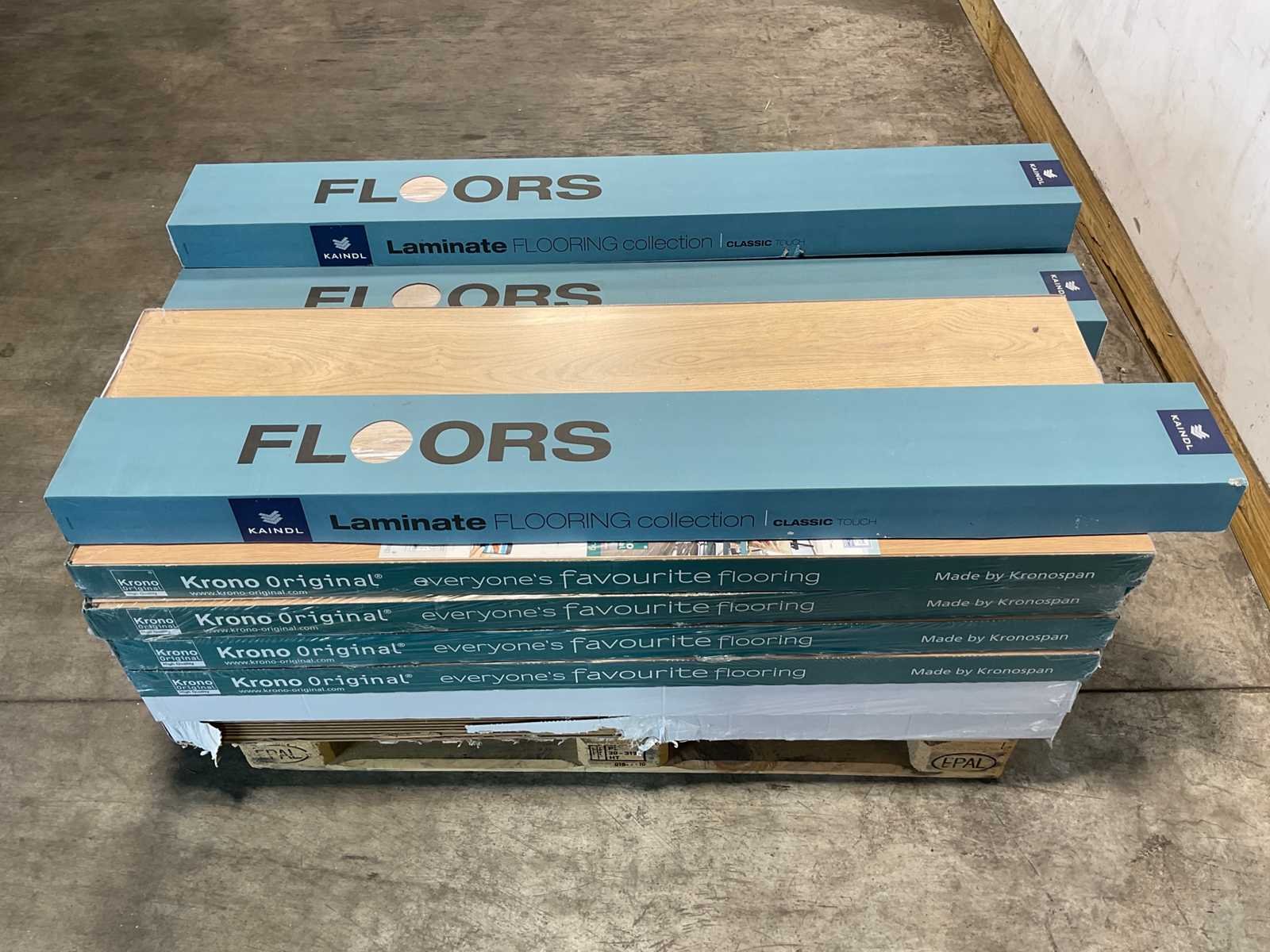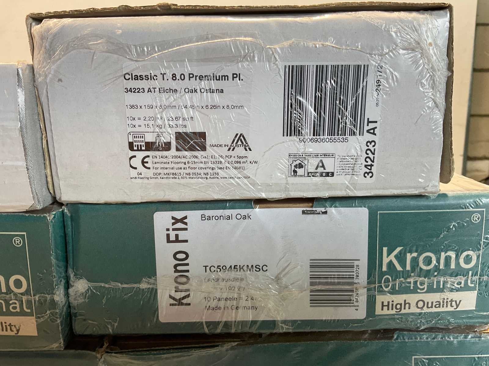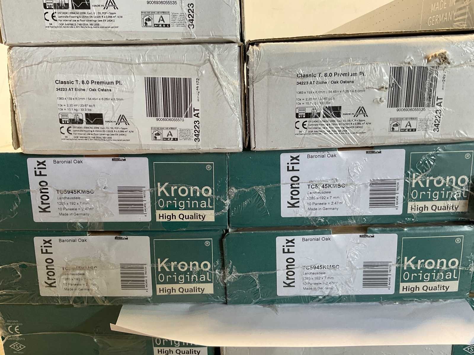 Mixpallet met diverse soorten laminaat – ongeveer 27 pakken, goed voor circa 60 m². Bekijk de foto’s voor specificaties en details.
