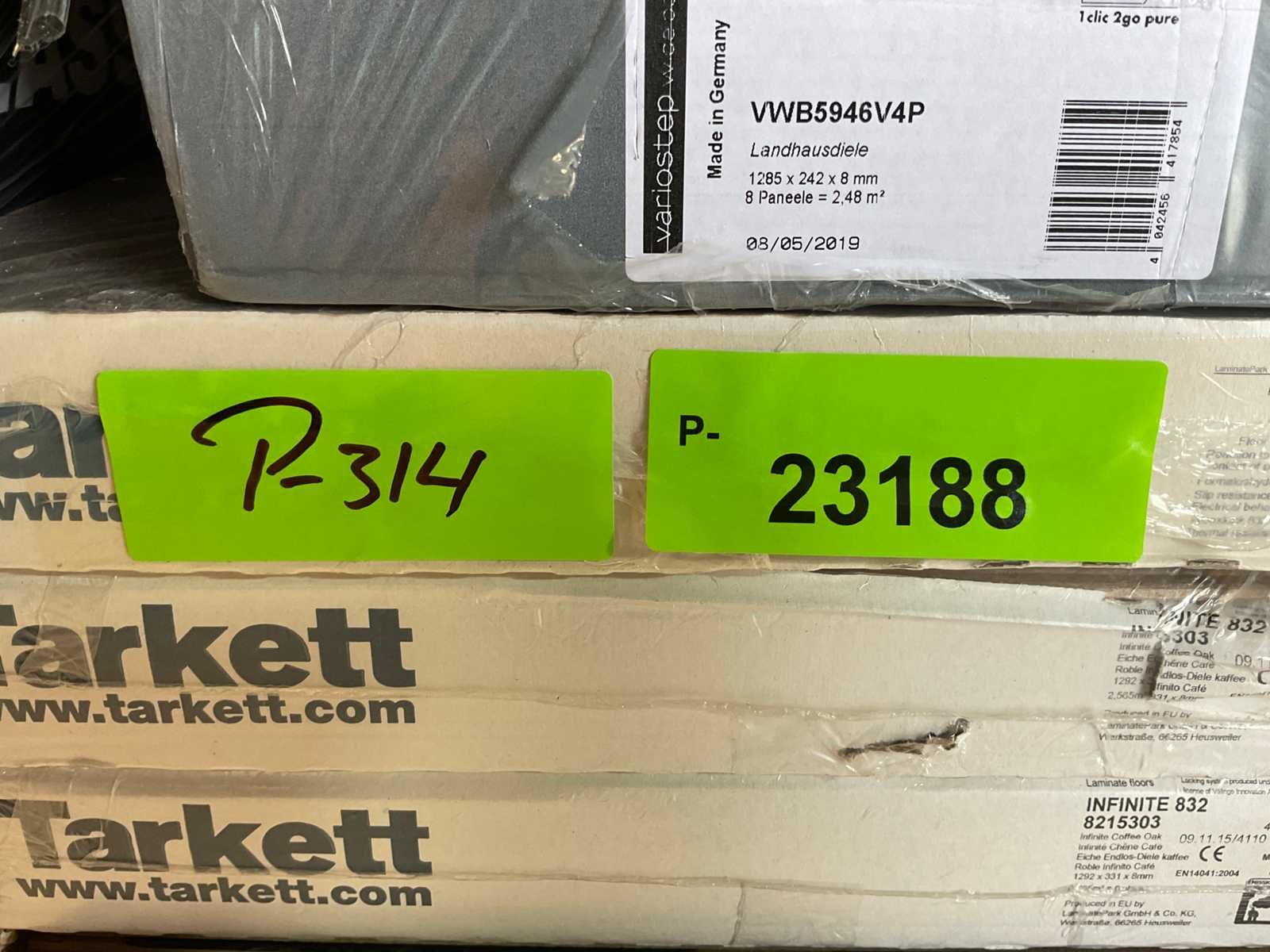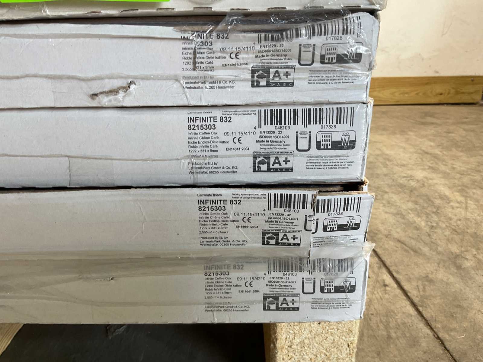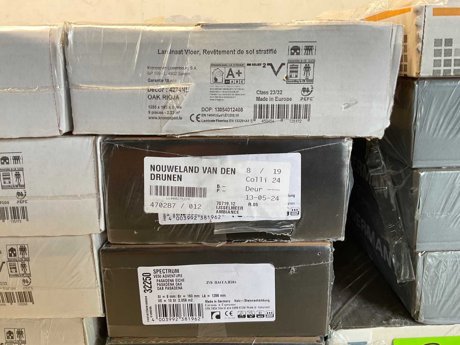 Mixpallet met diverse soorten laminaat – ongeveer 22 pakken, goed voor circa 48 m². Bekijk de foto’s voor specificaties en details.