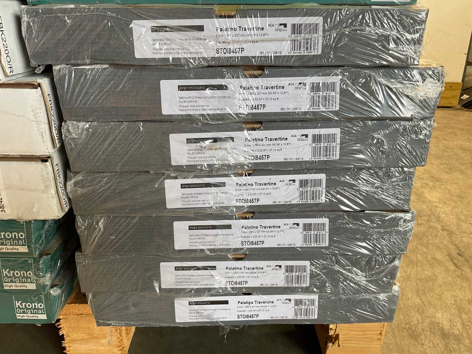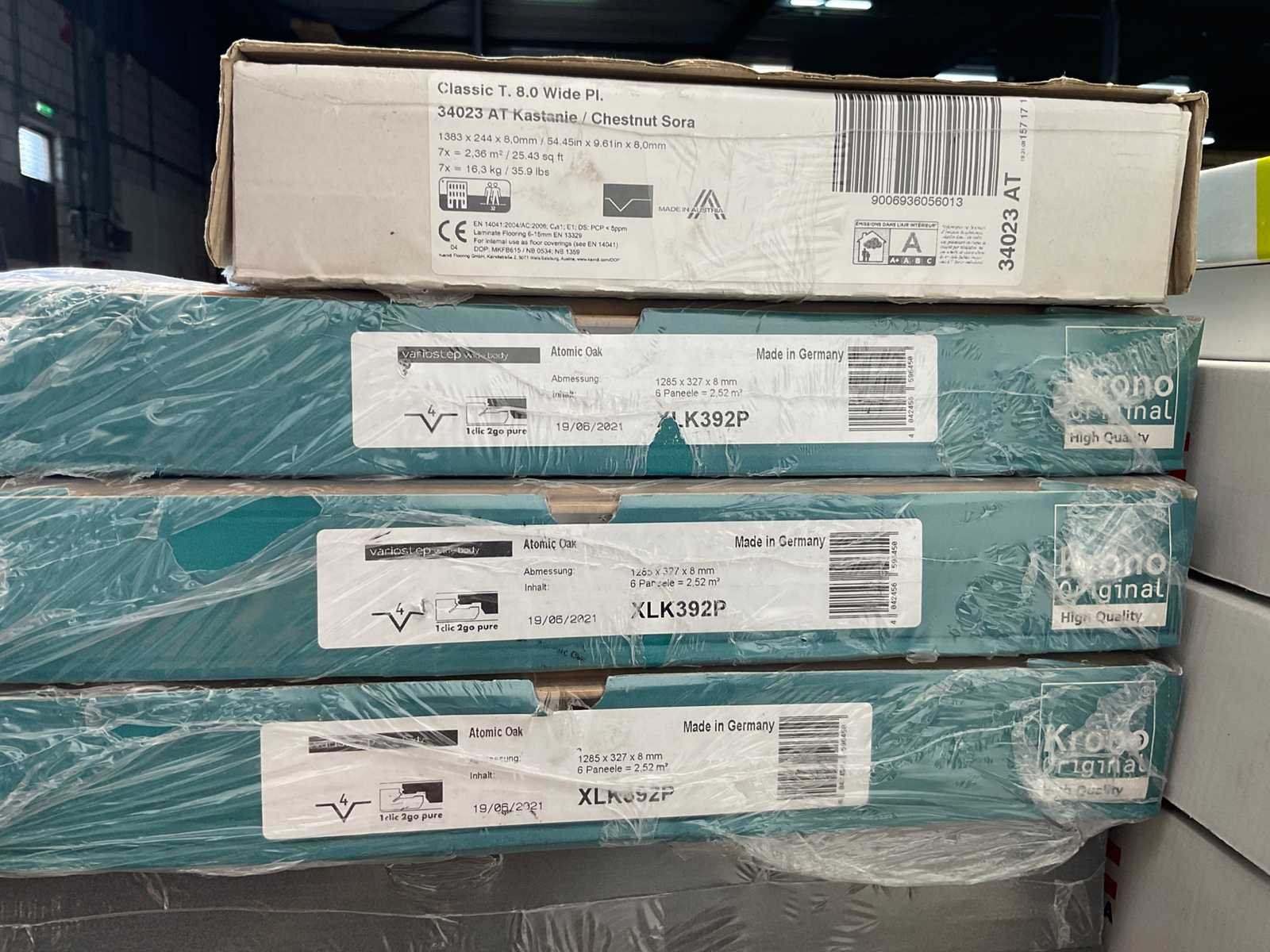 Mixpallet met diverse soorten laminaat – ongeveer 21 pakken, goed voor circa 50 m². Bekijk de foto’s voor specificaties en details.