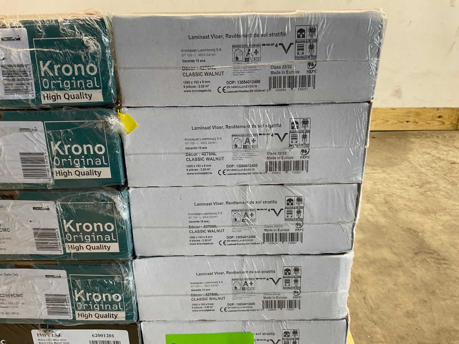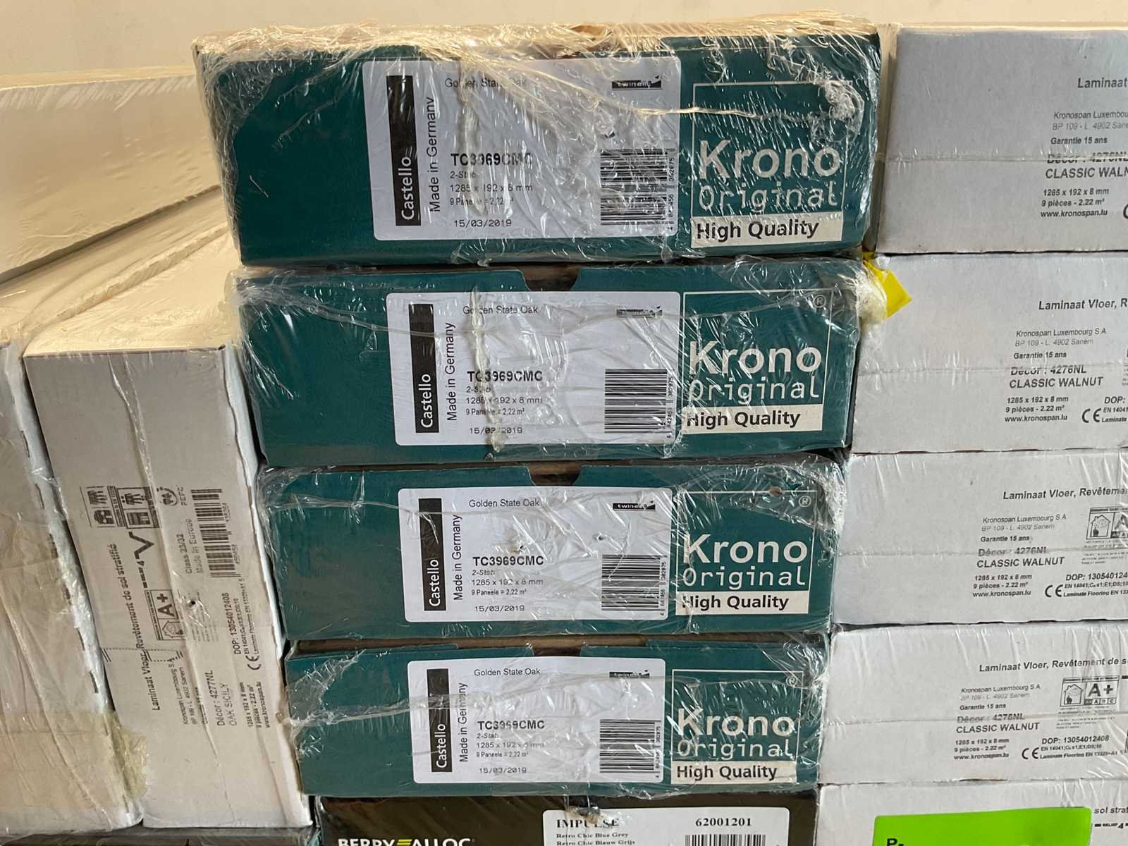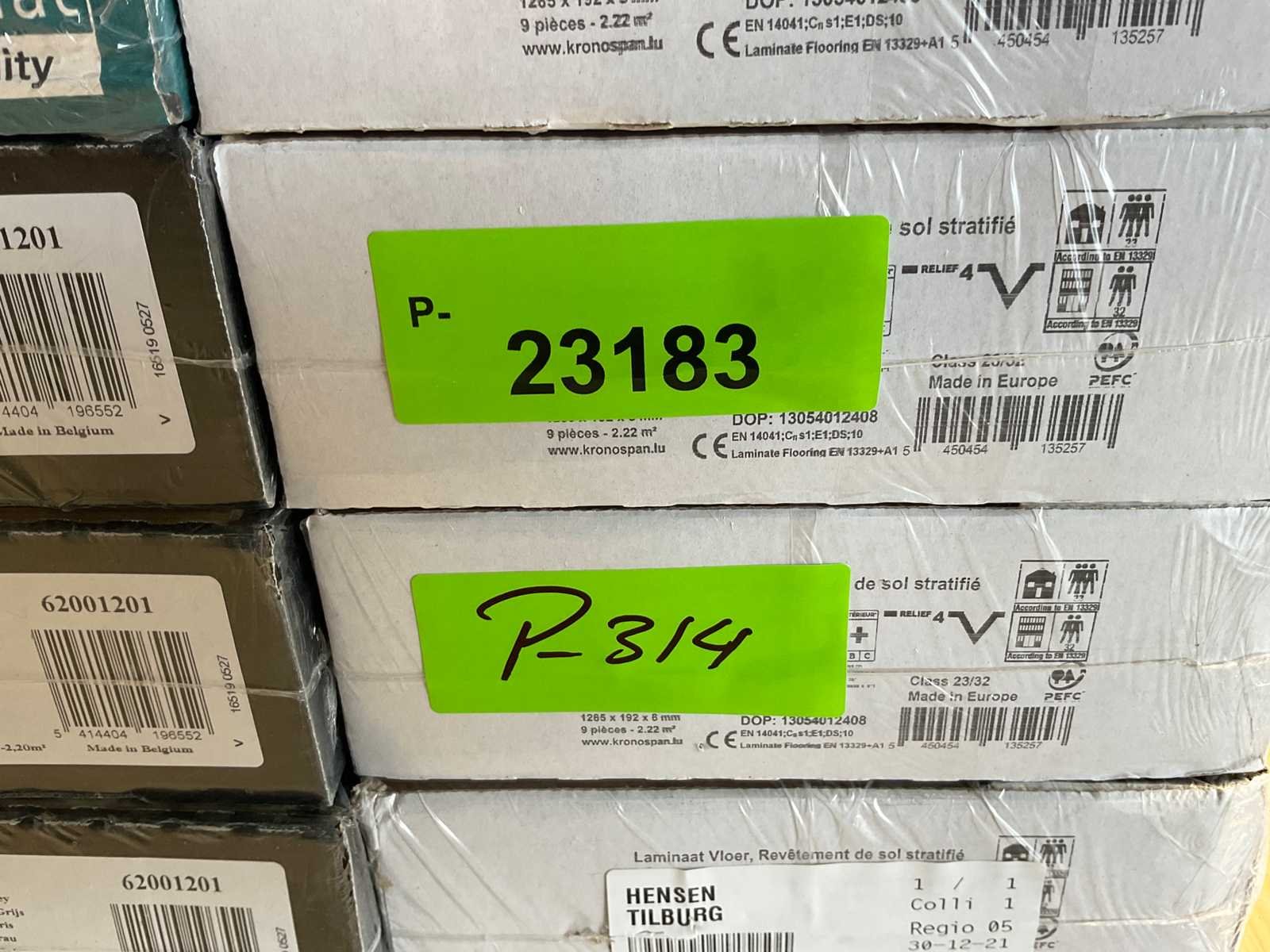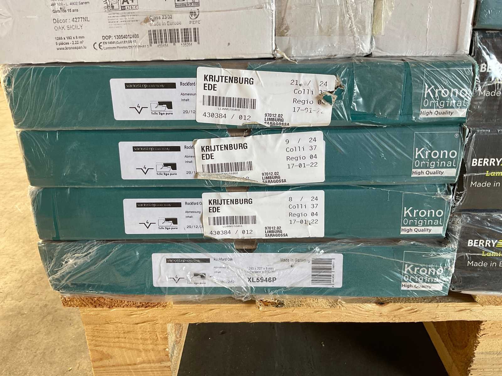 Mixpallet met diverse soorten laminaat – ongeveer 24 pakken, goed voor circa 53 m². Bekijk de foto’s voor specificaties en details.