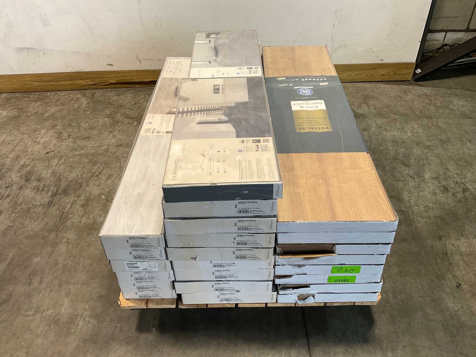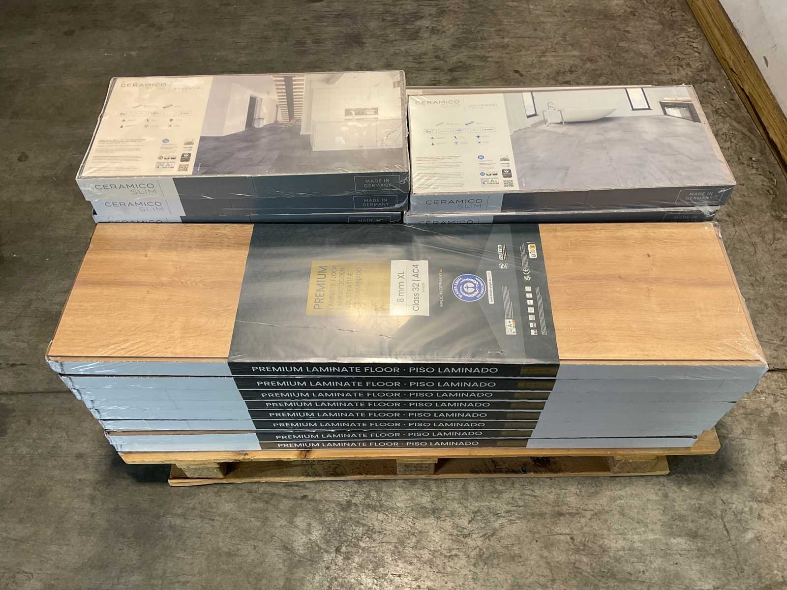 Mixpallet met diverse soorten laminaat – ongeveer 31 pakken, goed voor circa 68 m². Bekijk de foto’s voor specificaties en details.