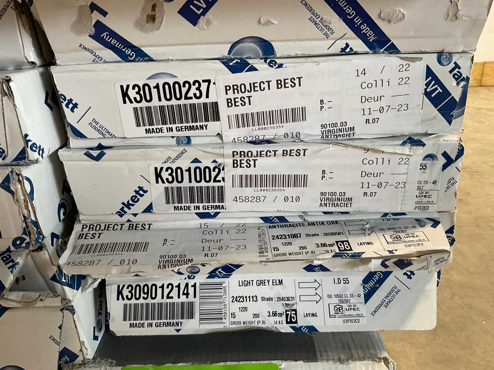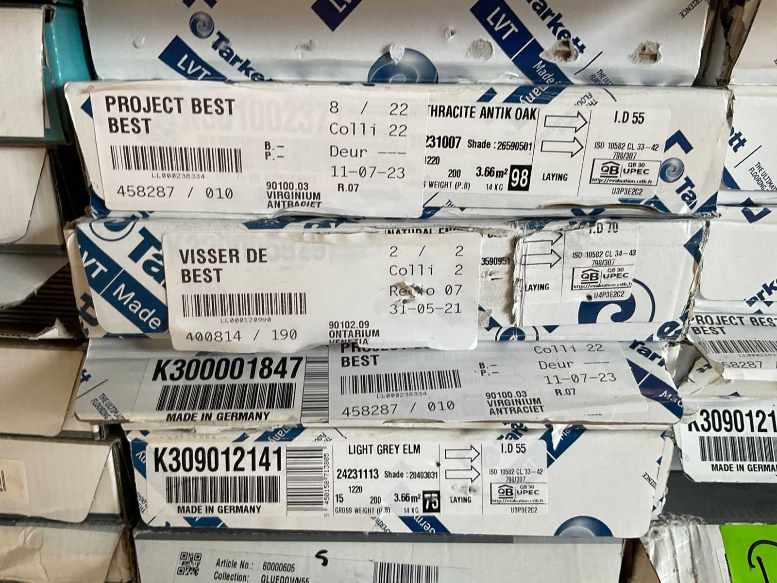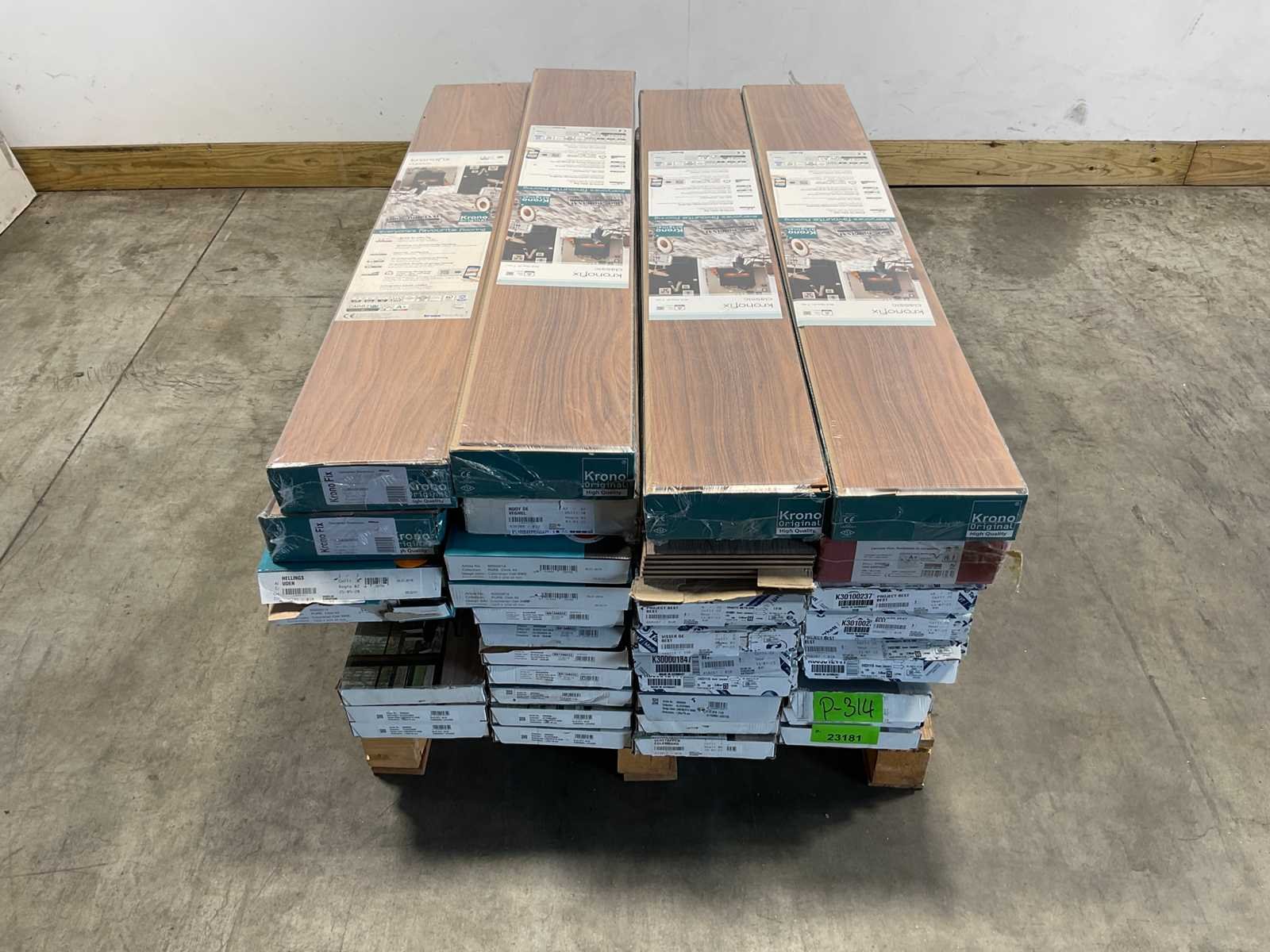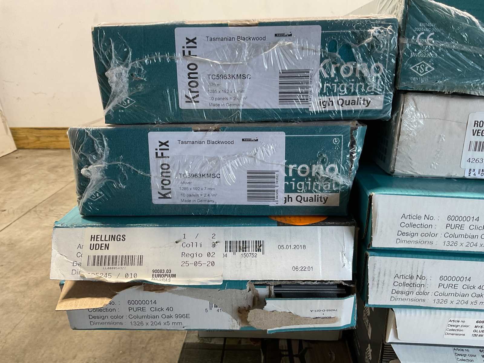 Mixpallet met diverse soorten laminaat – ongeveer 39 pakken, goed voor circa 85 m². Bekijk de foto’s voor specificaties en details.