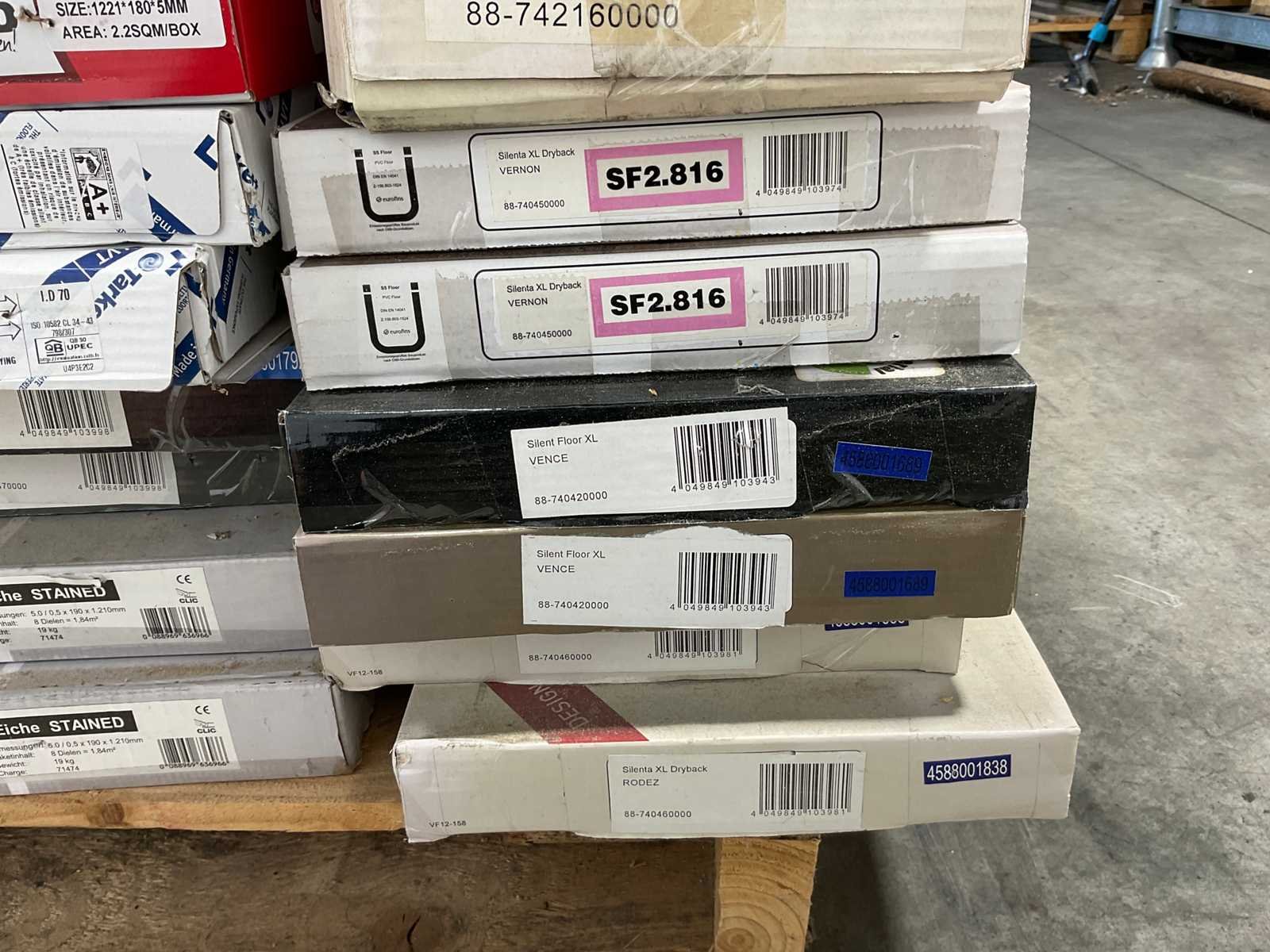 Mixpallet met diverse soorten laminaat – ongeveer 50 pakken, goed voor circa 100 m². Bekijk de foto’s voor specificaties en details.