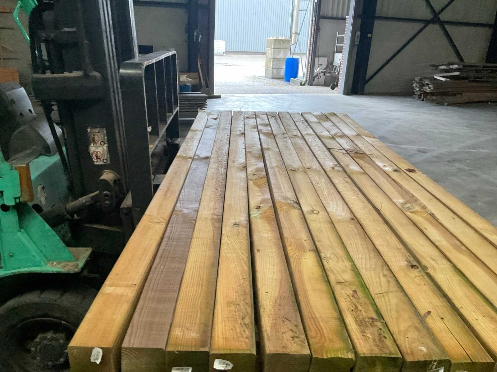 Merk: Hillhout Houtsoort: Grenen geïmpregneerd Materiaal: Grenen geïmpregneerd Breedte: 88mm Hoogte: 88mm Kopmaat: 88x88 Gewicht: 150kg Totale afmeting Breedte: 2700mm