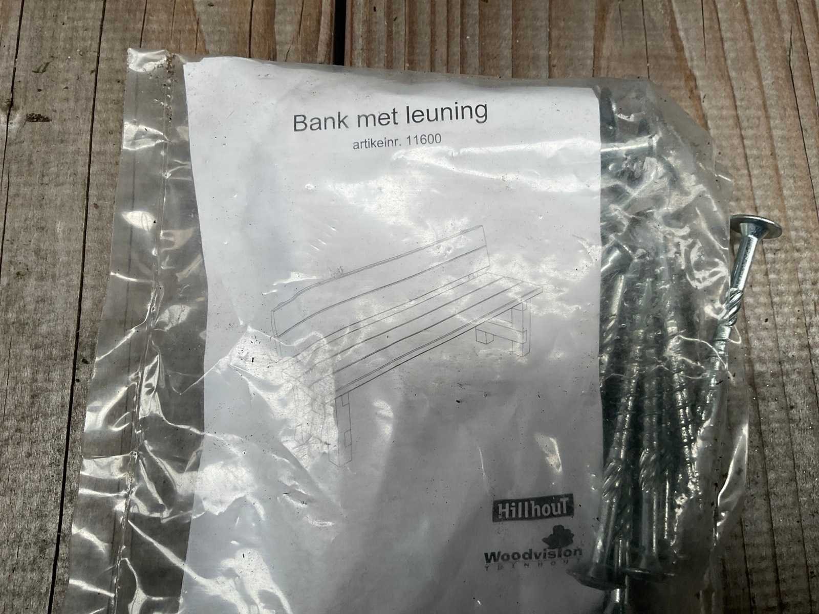 Zie foto's voor details. Merk: Hillhout Model: Bank met leuning Lengte: 200cm Breedte: 50cm Hoogte: 45cm Materiaal: Douglas