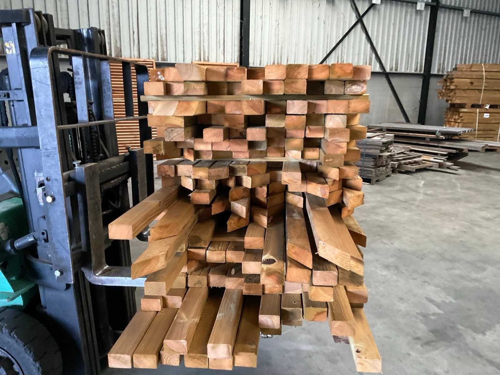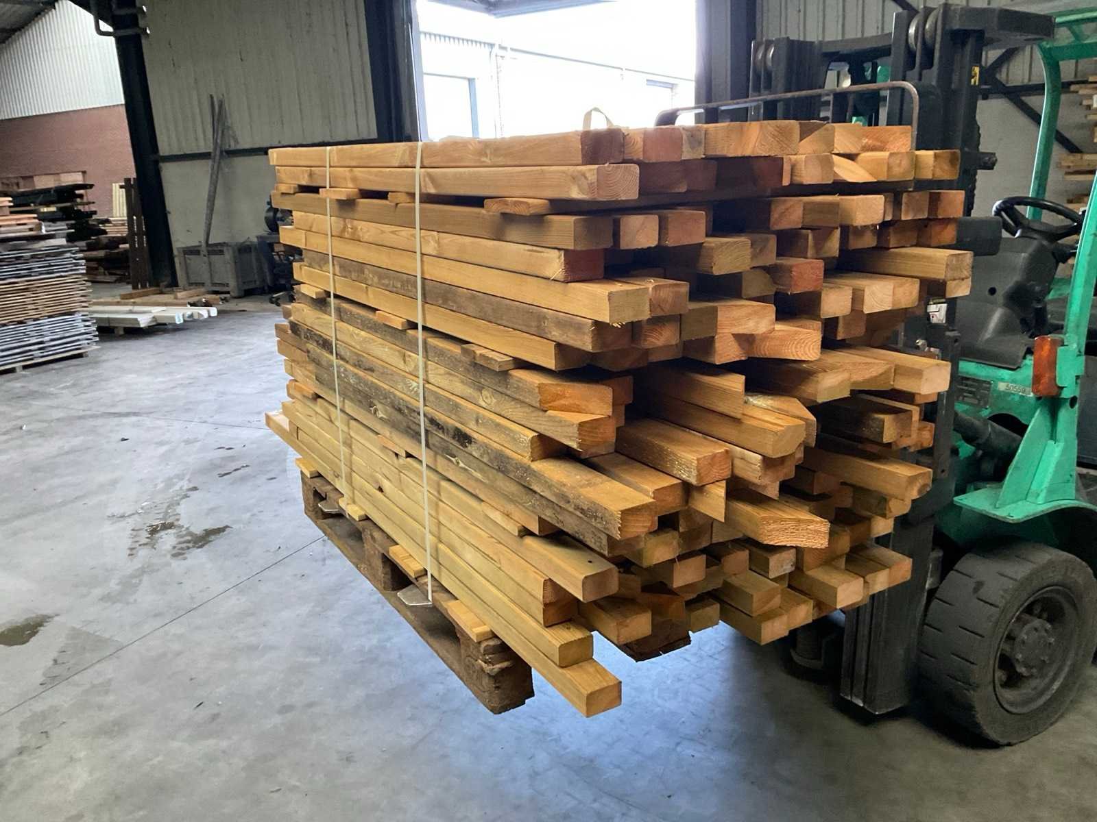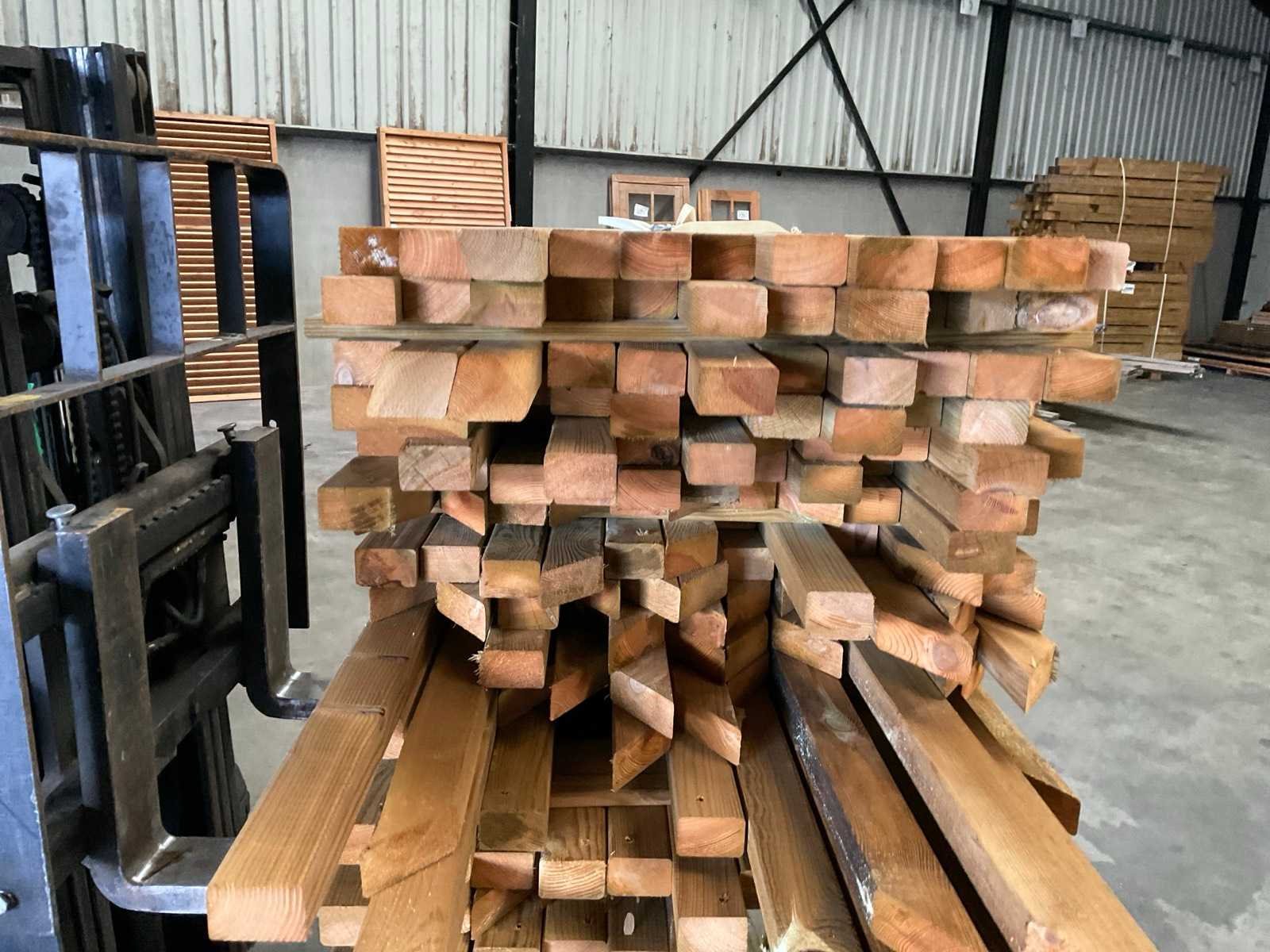 Partij grenen geïmpregneerde balken 80-180x6,5x4,5 cm. Bestaat uit diverse lengtes 80-180cm, in totaal ca. 250 lopende meter. Zie foto's voor details. Houtsoort: Grenenhout geimperneerd Kopmaat: 45x65 Gewicht: 400kg