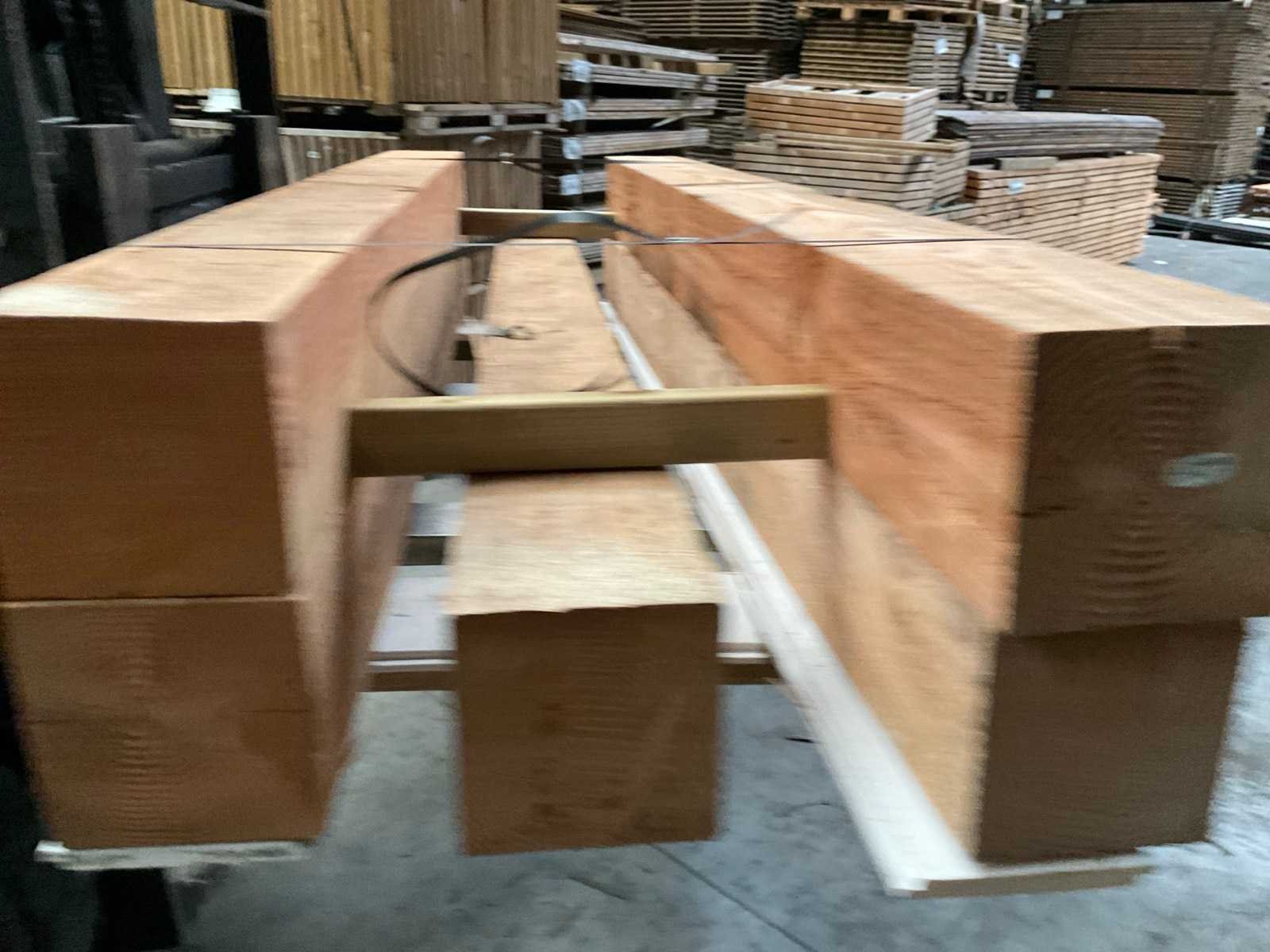 Douglas tuinpaal 250x20x20 cm, zie foto's voor details. Houtsoort: Douglas Breedte: 200mm Hoogte: 200mm Kopmaat: 200x200 Gewicht: 400kg Totale afmeting Breedte: 2500mm