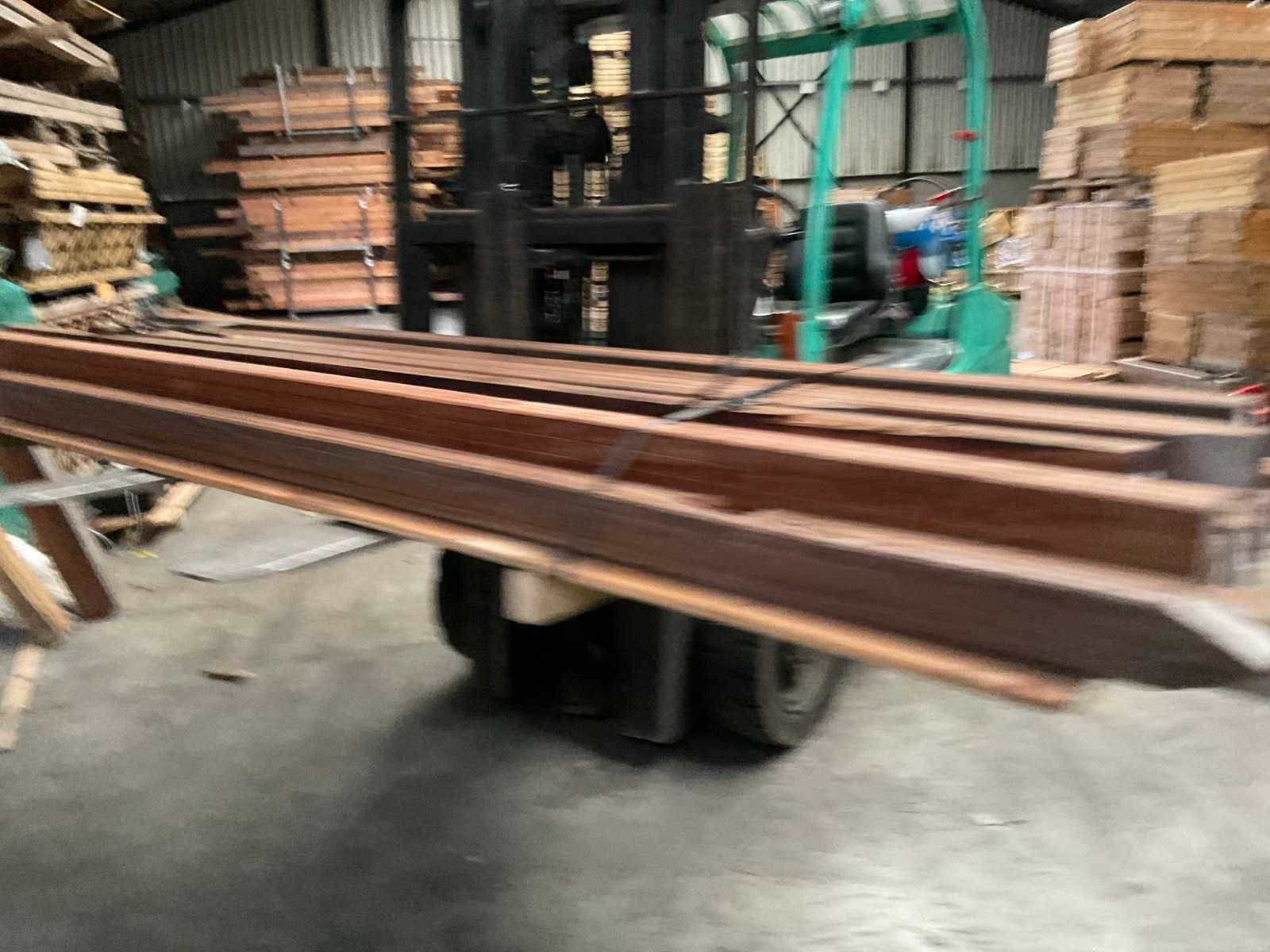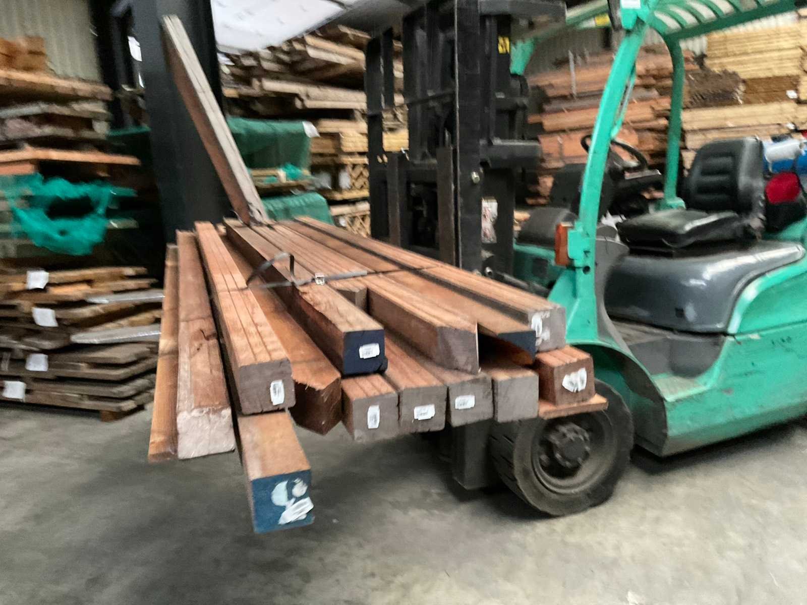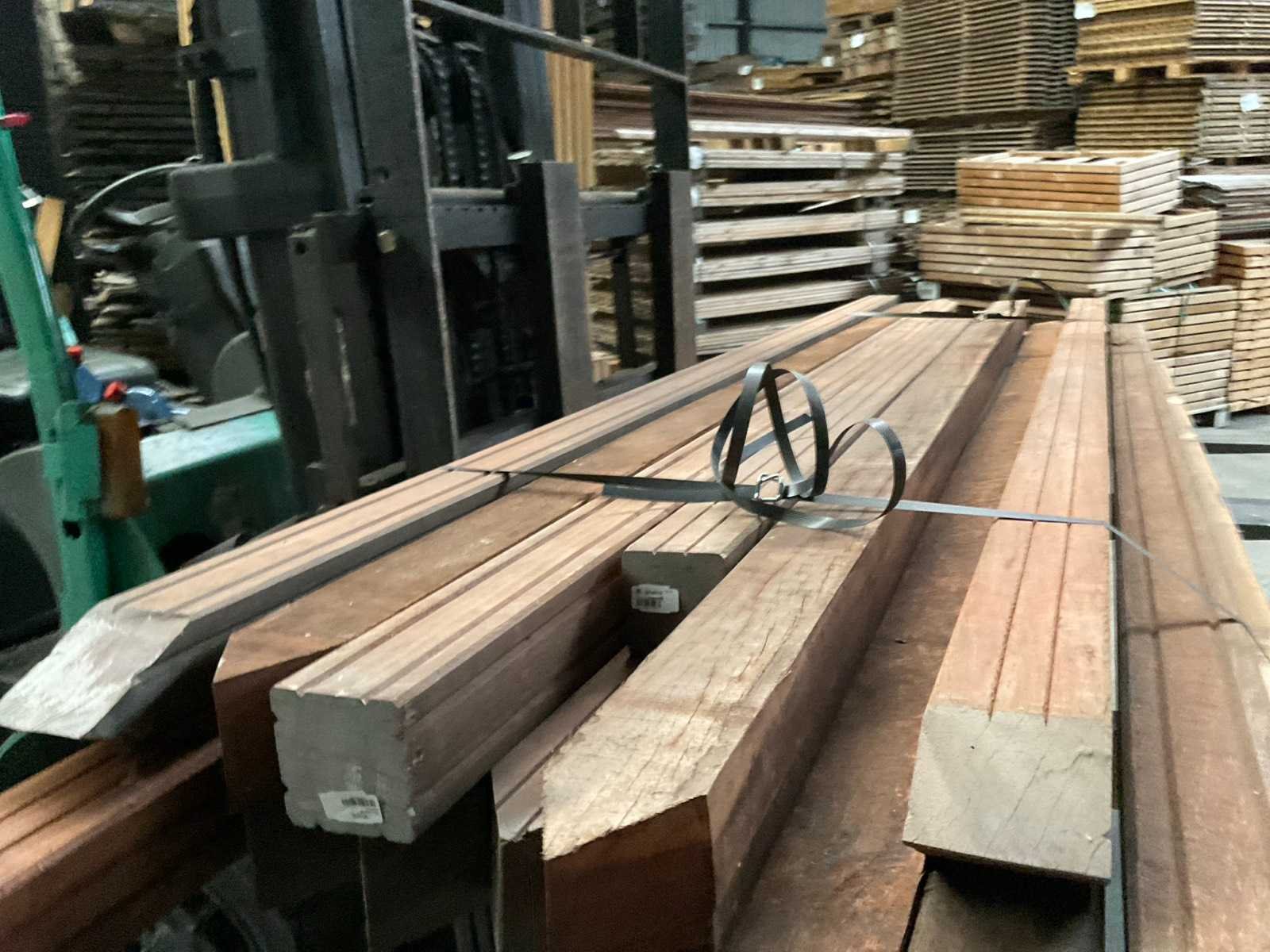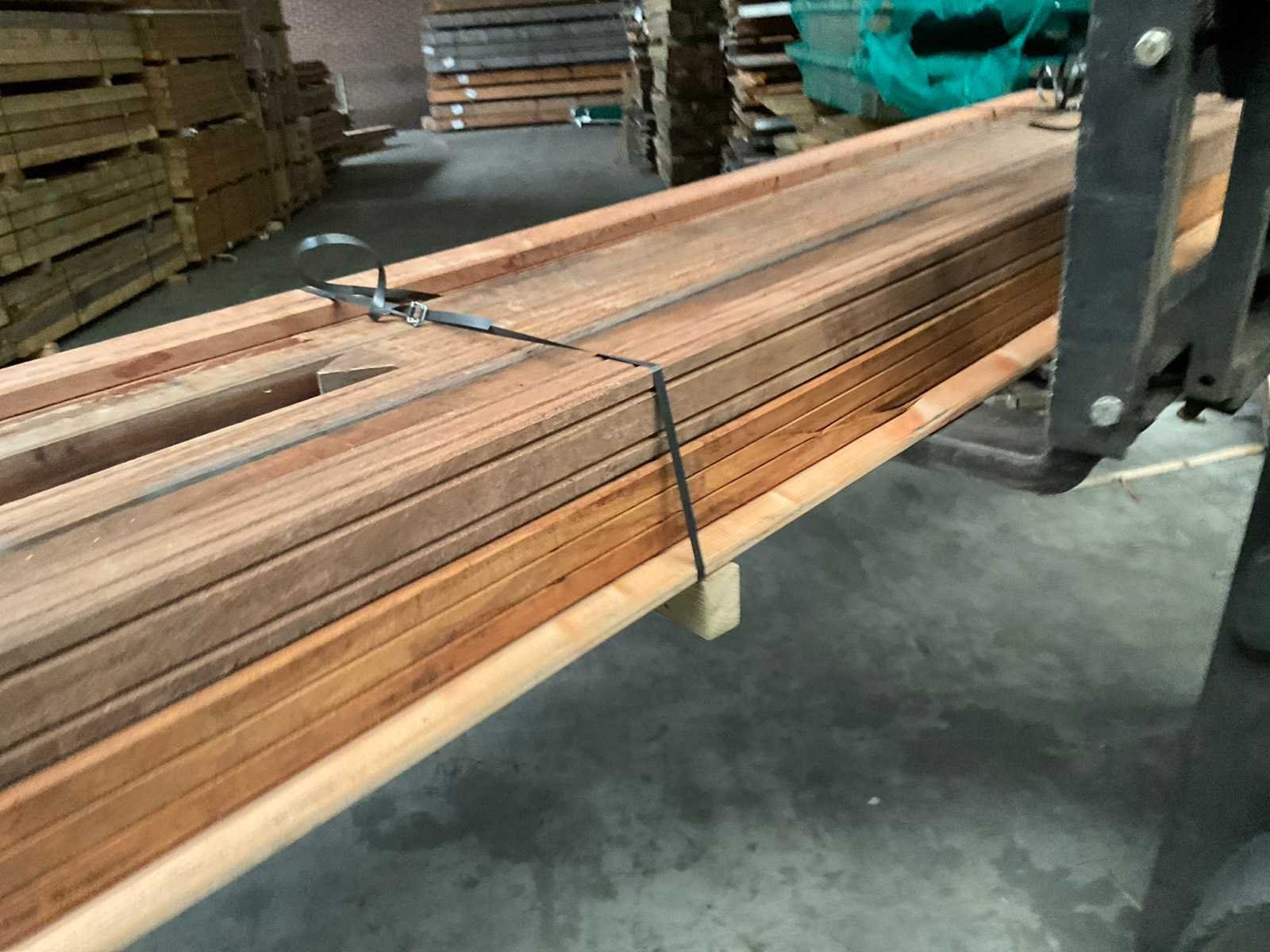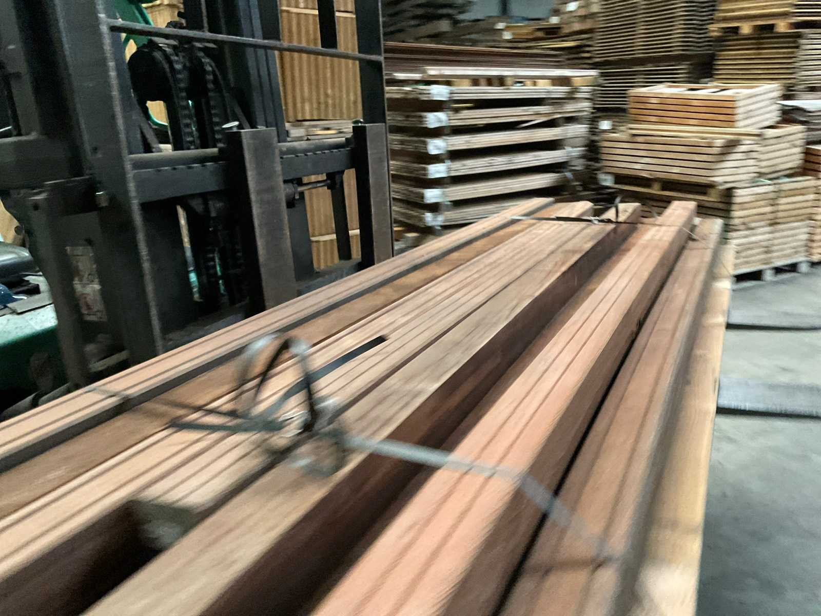 Zie foto's voor details. Houtsoort: Azobé Kopmaat: 90x90 Gewicht: 500kg Totale afmeting Breedte: 2700mm