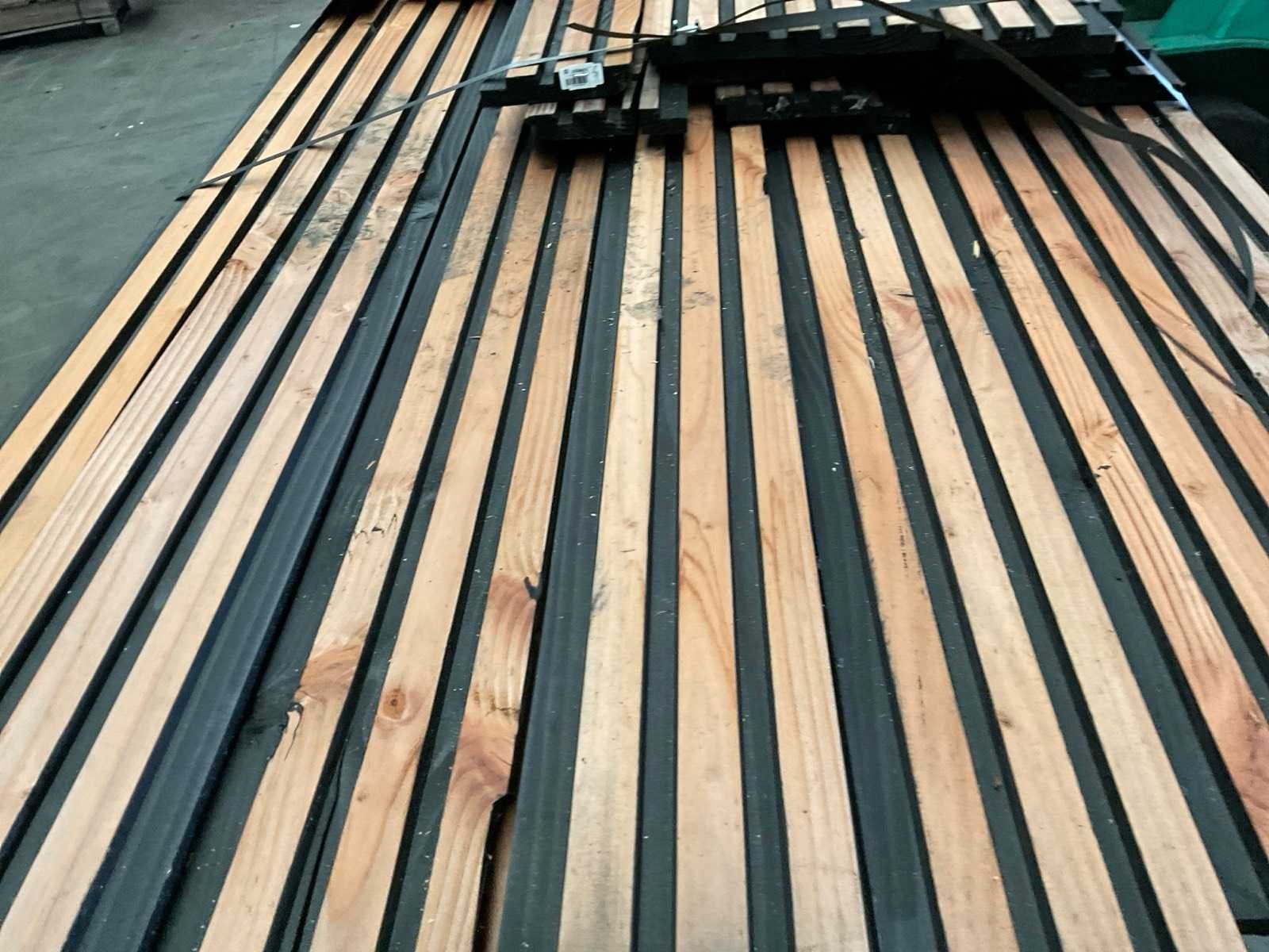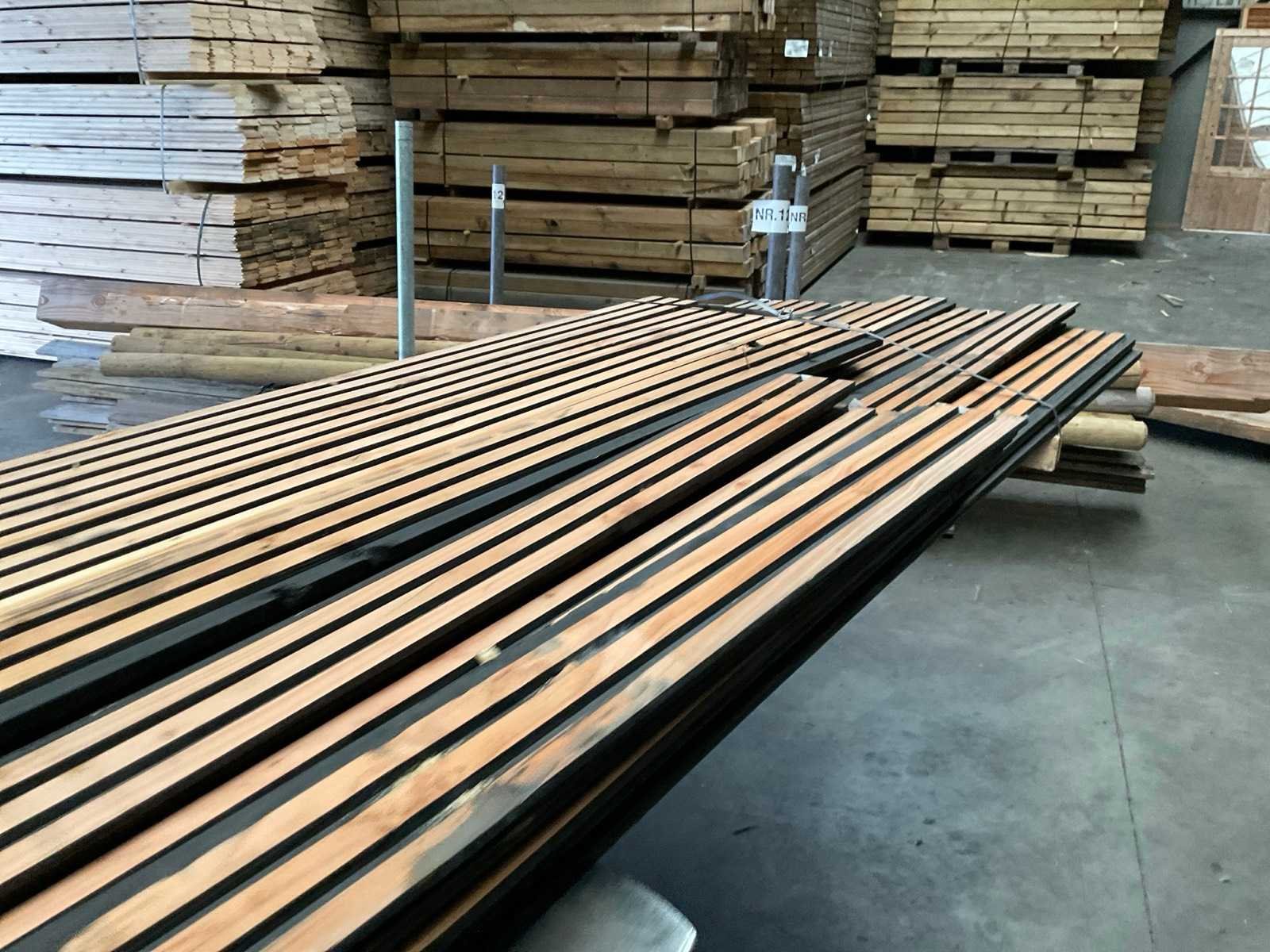 Douglas triple rhombusprofiel blank/zwart 300-500x14x2,5 cm. 6x 300cm, 14x 400cm, 11x 500cm Merk: Woodvision Houtsoort: Douglas Materiaal: Douglas Breedte: 140mm Hoogte: 25mm Kopmaat: 25x140 Kleur: Zwart Gewicht: 900kg