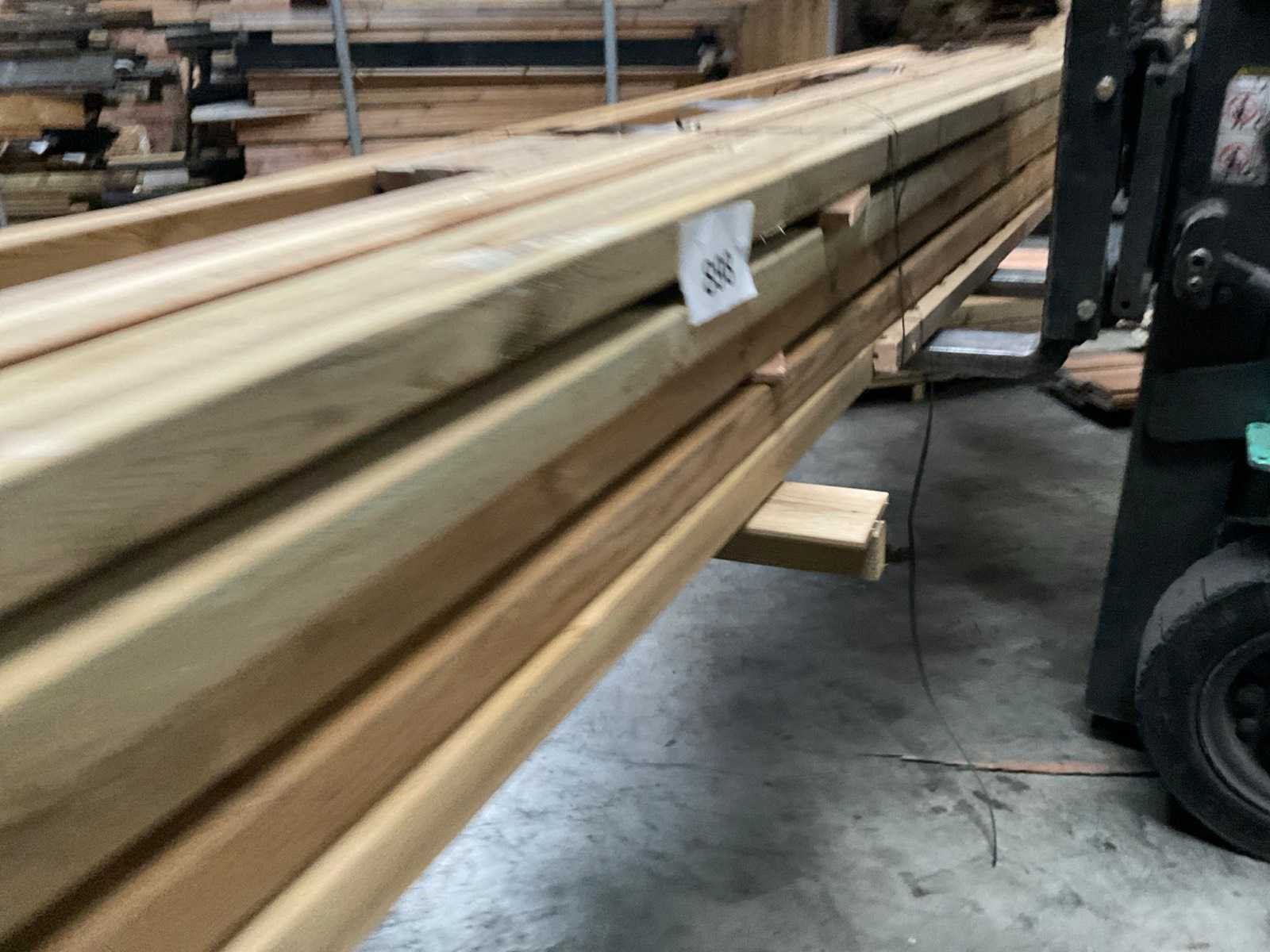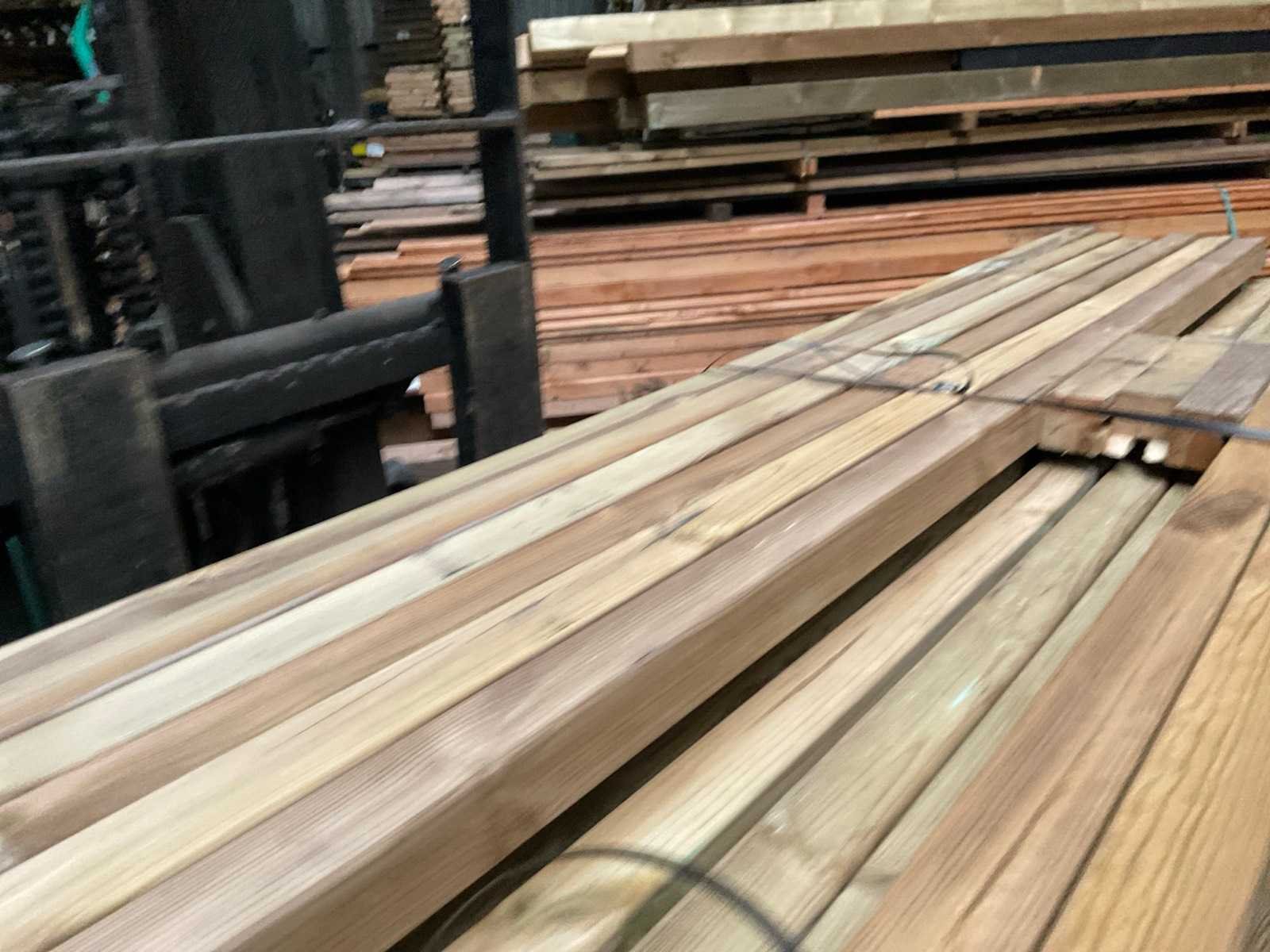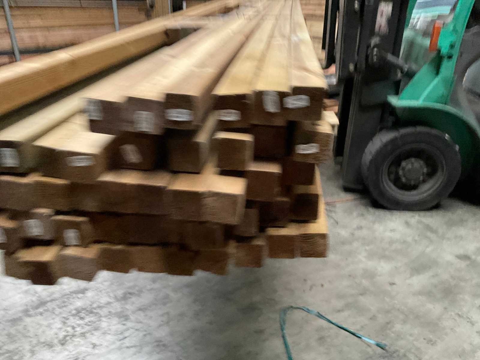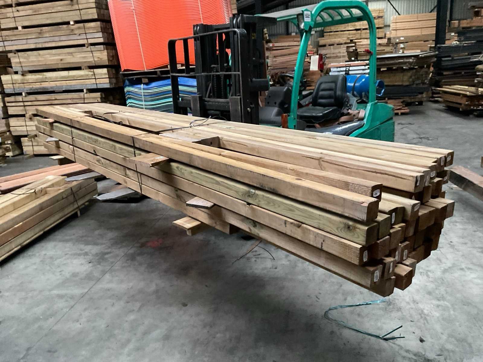 Kleine beschadigingen zie Foto,s Houtsoort: Grenen geimpregneerd Materiaal: Geschaafd Kopmaat: 68x68mm Gewicht: 600kg Totale afmeting Breedte: 4000mm