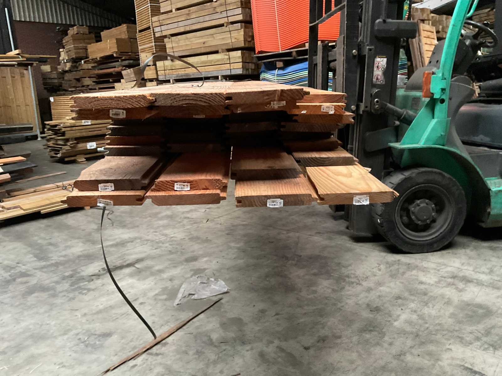 Douglas blokhutprofielen 300–400×18,5×2,8 cm Partij Douglas blokhutprofielen met lichte beschadigingen en verkleuringen (diverse modellen). Inhoud partij: 12 stuks van 400 cm 23 stuks van 300 cm Ideaal voor schutting-, gevel- of tuinhuisprojecten waar cosmetische imperfecties geen probleem zijn. Zie foto's voor details. Houtsoort: Douglas Lengte: 300-400cm Breedte: 185mm Hoogte: 28mm Kopmaat: 28x185 Gewicht: 450kg