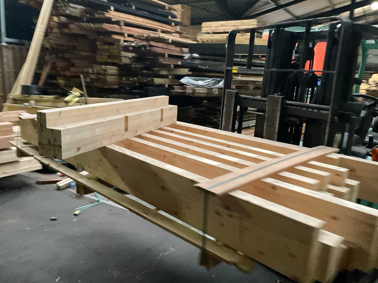 Partij vuren balken geschaafd