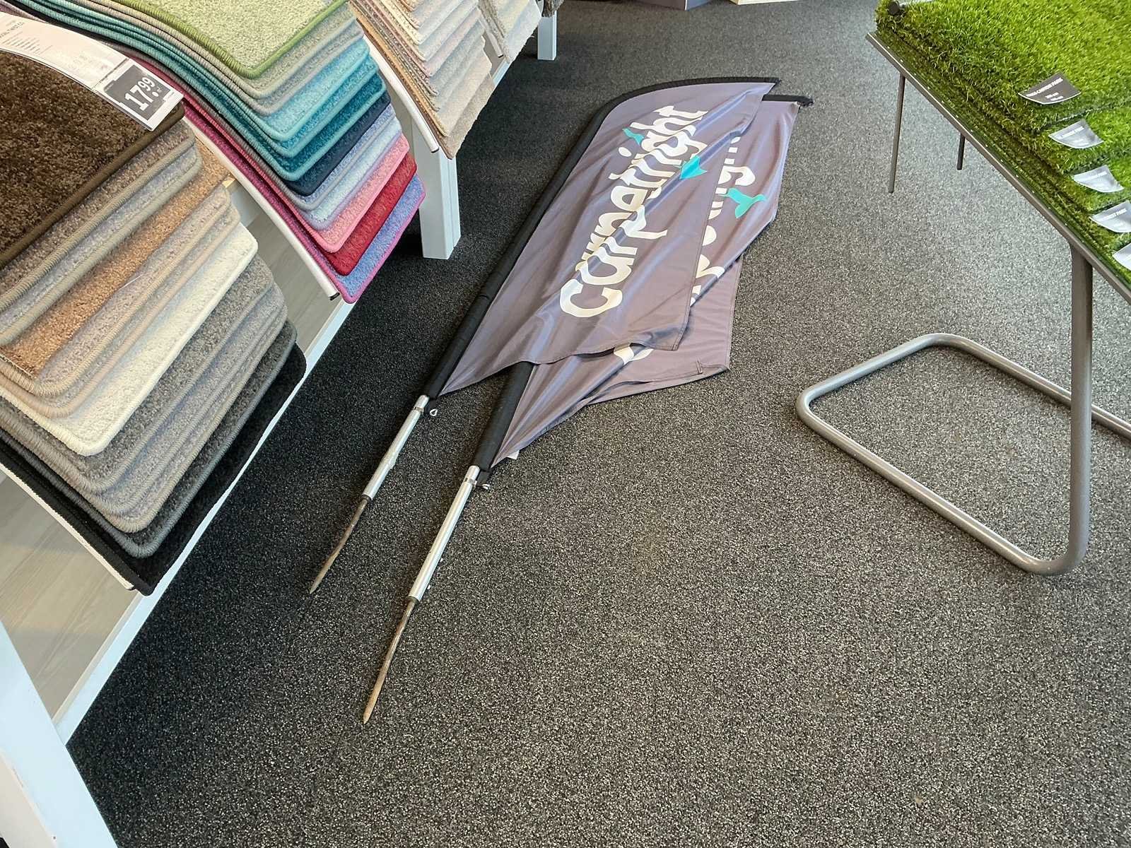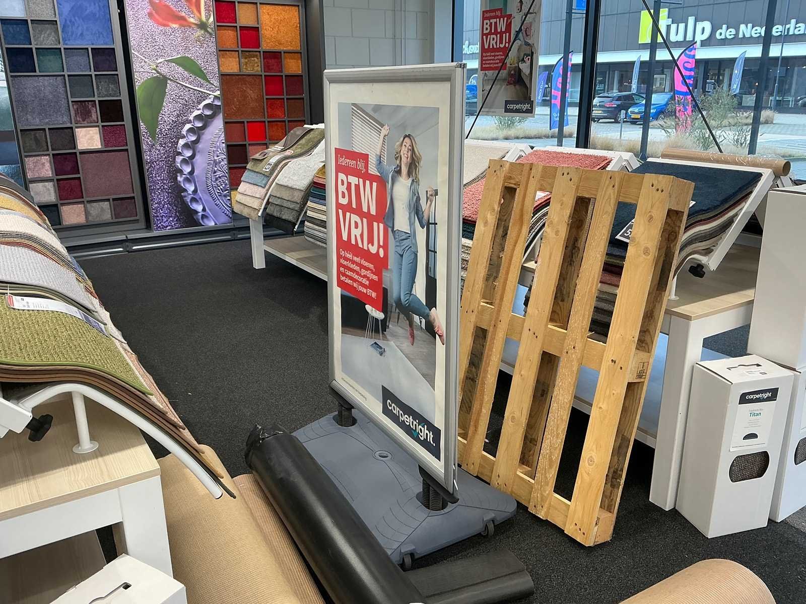 Stoepbord is 95x60x150 cm Vlaggen zijn 60x310 cm