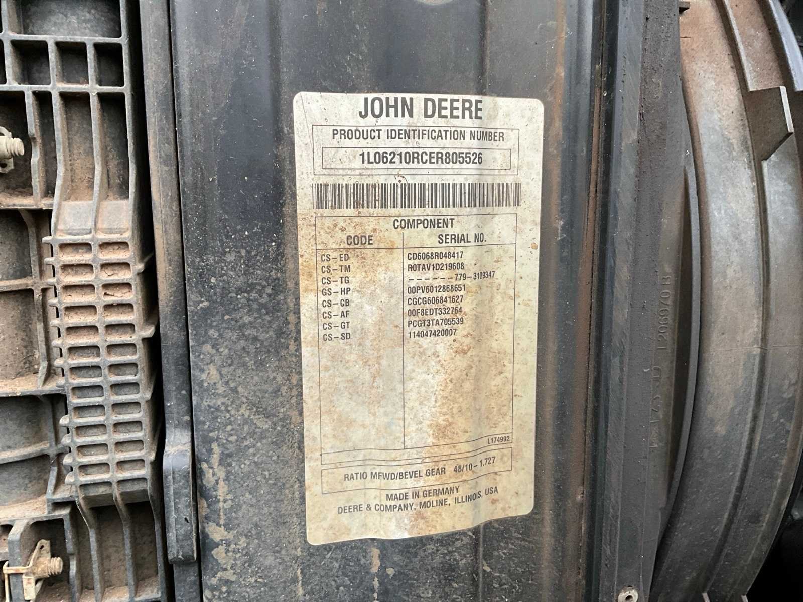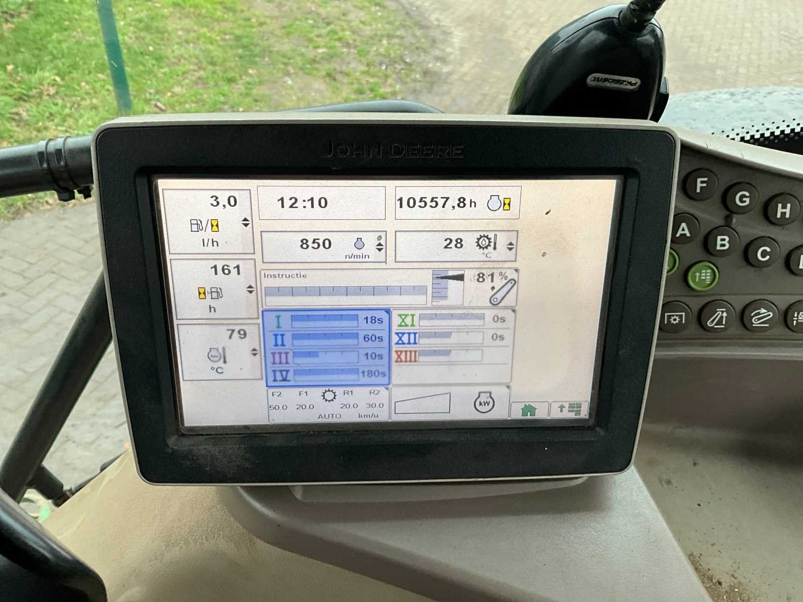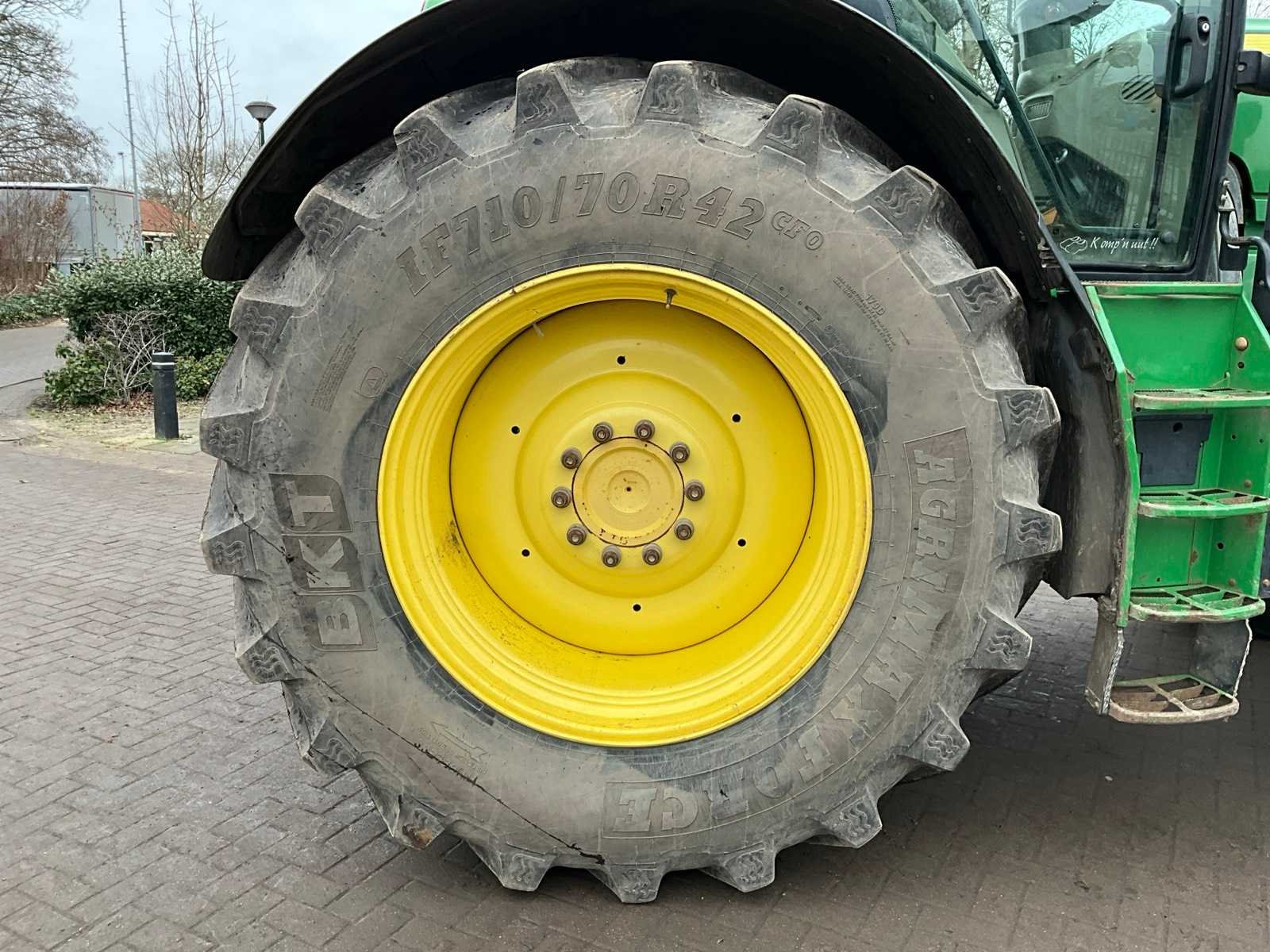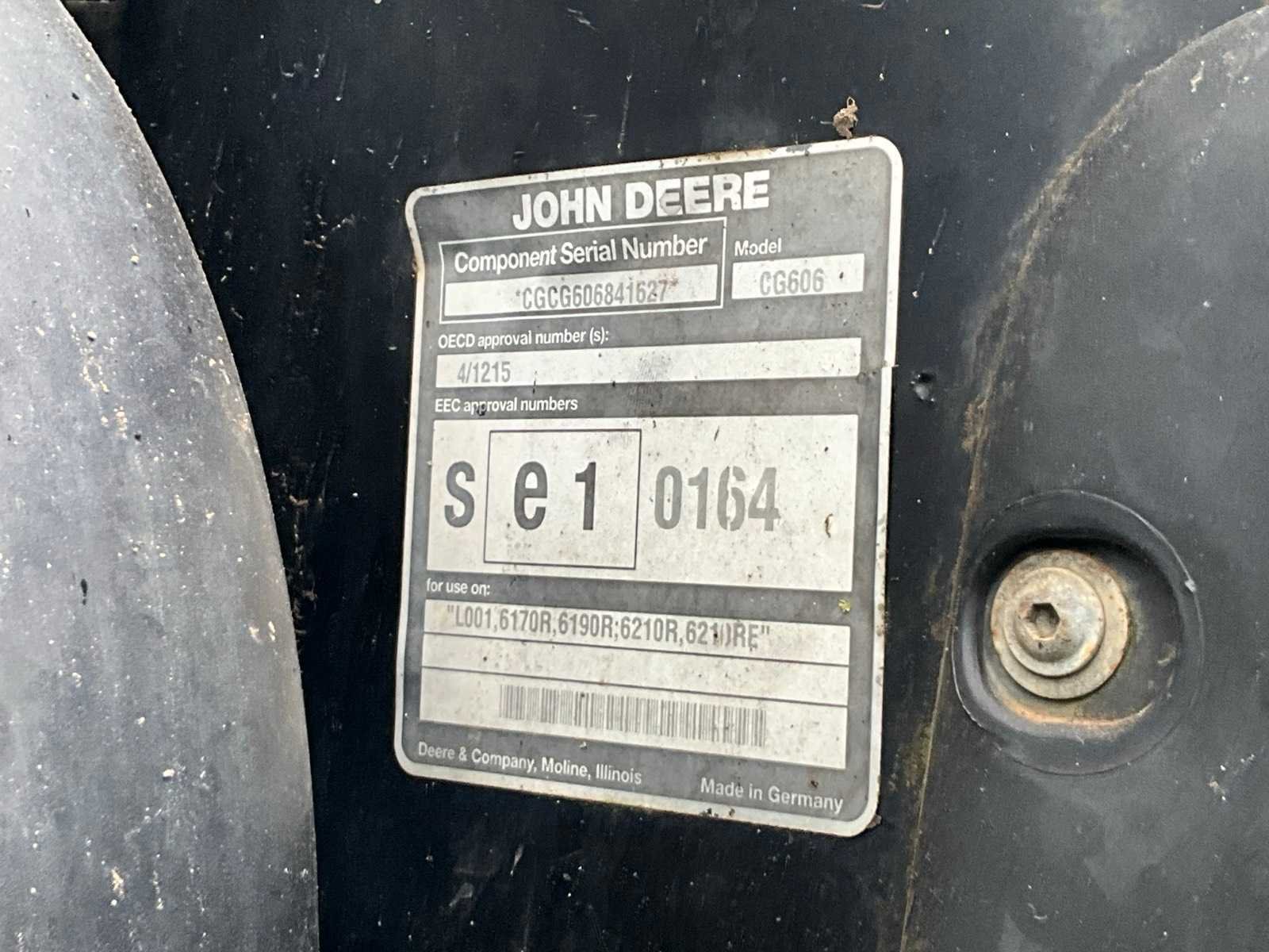 Voorzien van John Deere PowerTech PVS 6,8L - 6-cilinder - dieselmotor; aftakastoerental 540/ 540E/ 1000/ 1000E; 2 dubbele werkende hydraulische ventielen achter Merk: John Deere Type: 6210R Bouwjaar: 2015 Kenteken: TJB-32-B Motorvermogen (kW): 154kW Afgelezen urenstand: 10557 Versnellingsbaktype: DirectDrive (24/24) Bandenmaat voor: 600/17R28 Bandenmaat achter: 710/70R42 Voorlader: true Fronthefinrichting: true Frontaftakas: true Cabine: true Luchtgeveerde stoel: true Eigen gewicht: 7800kg Totale afmeting L: 4950mm Totale afmeting Breedte: 2550mm Totale afmeting Hoogte: 3100mm Chassisnummer: 1L06210RCER805526 Datum eerste toelating: 2015-06-30