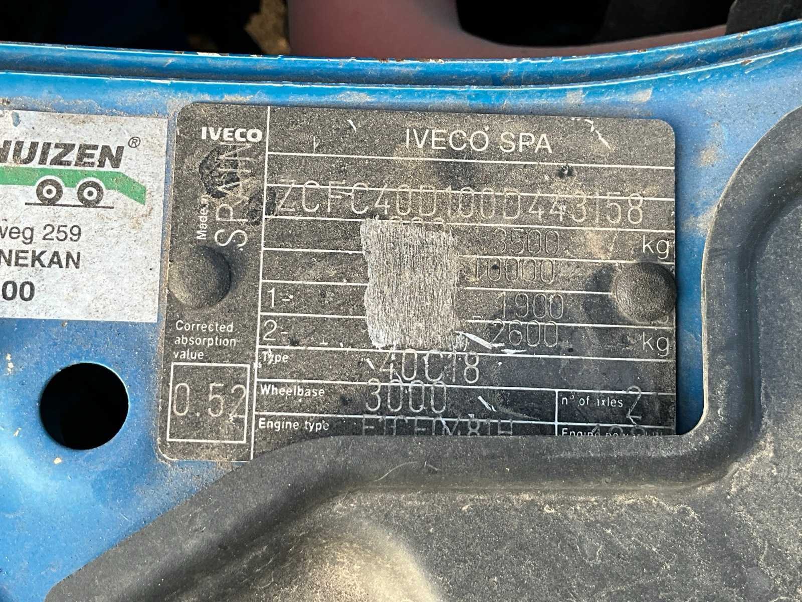 Kenteken: 6-VPL-59 Merk: Iveco Type: 40C18/T Model: Daily Bouwjaar: 2011 Chassisnummer: ZCFC40D100D443158 Afgelezen kilometerstand: 176840km Cilinderinhoud: 2998cc Vermogen (kW): 130kW Brandstof: diesel Datum eerste toelating: 2011-08-12 Datum eerste toelating (NL): 2011-08-12 APK vervaldatum: 2025-12-05 NAP status: Logisch Transmissie: Handgeschakeld Aantal zitplaatsen: 3 Kleur: niet van toepassing Accessoires - checkbox: Geveerde bestuurdersstoel, tachograaf, CD-speler, radio Bruto BPM (NL): 12115 Rest BPM: 0 Aantal deuren: 0 Aantal sleutels: 1 Ledig gewicht: 2020kg Laadvermogen: 1480kg Vermogen (pk): 177 Aantal cilinders: 4 Velgmaat: 16 Carrosserie: opleggertrekker Emissieklasse: 4 Maximaal trekgewicht ongeremd: 750