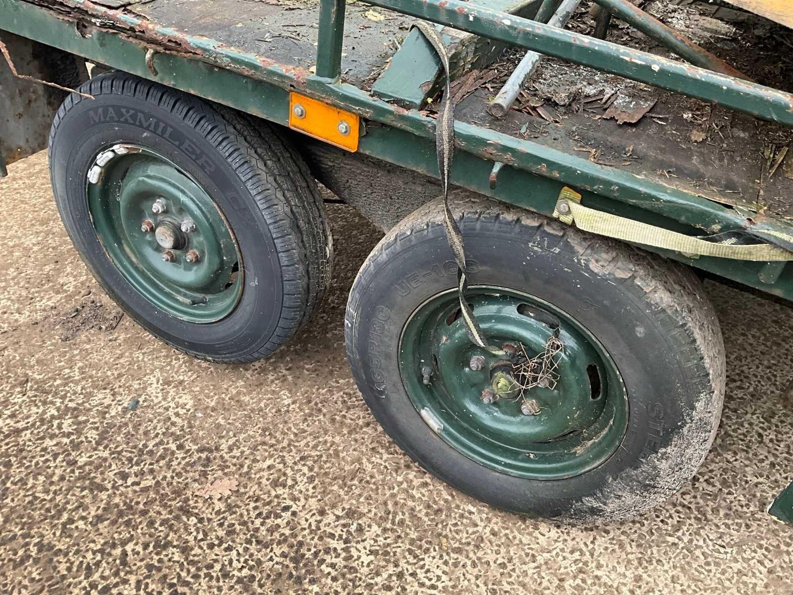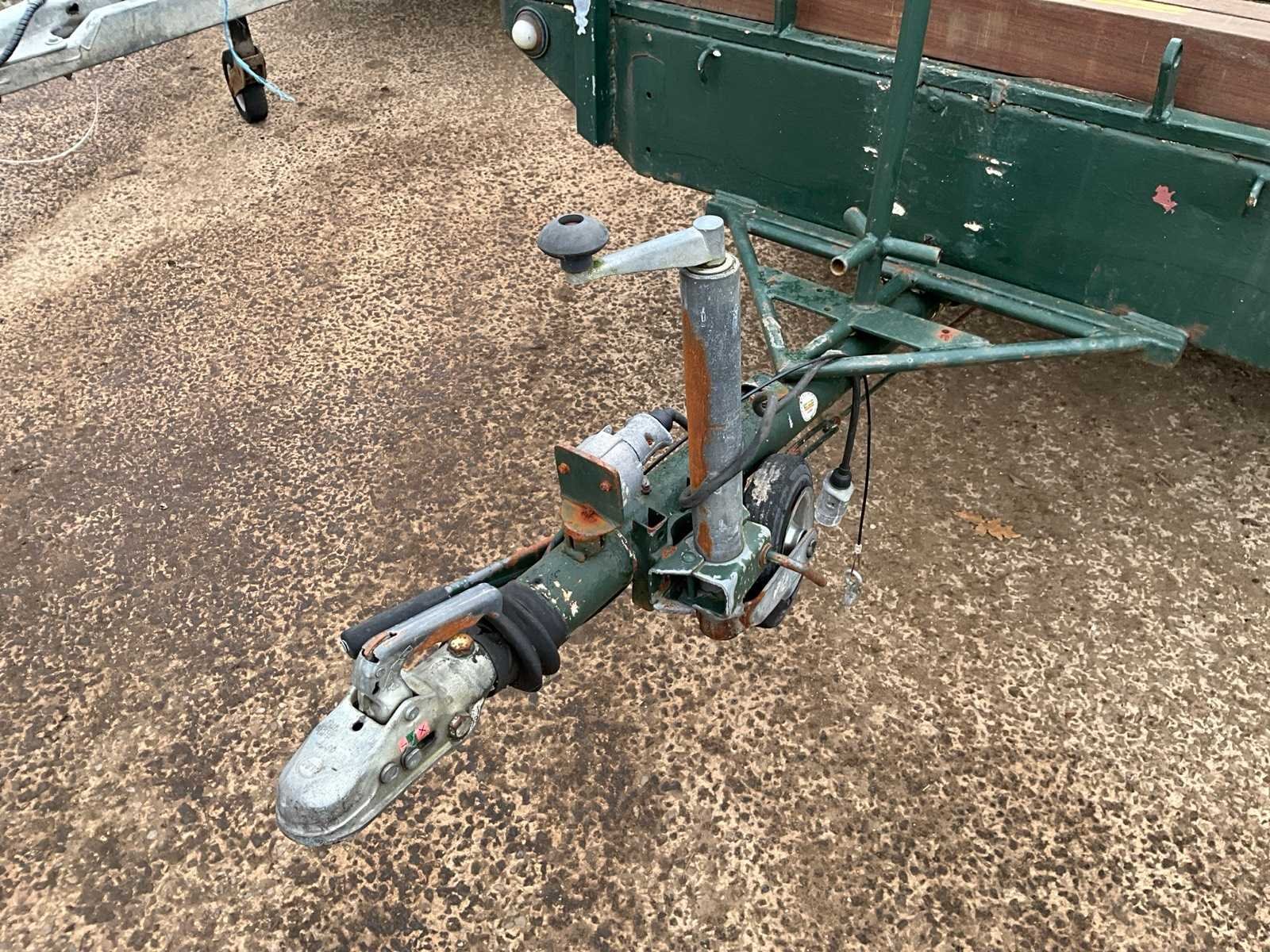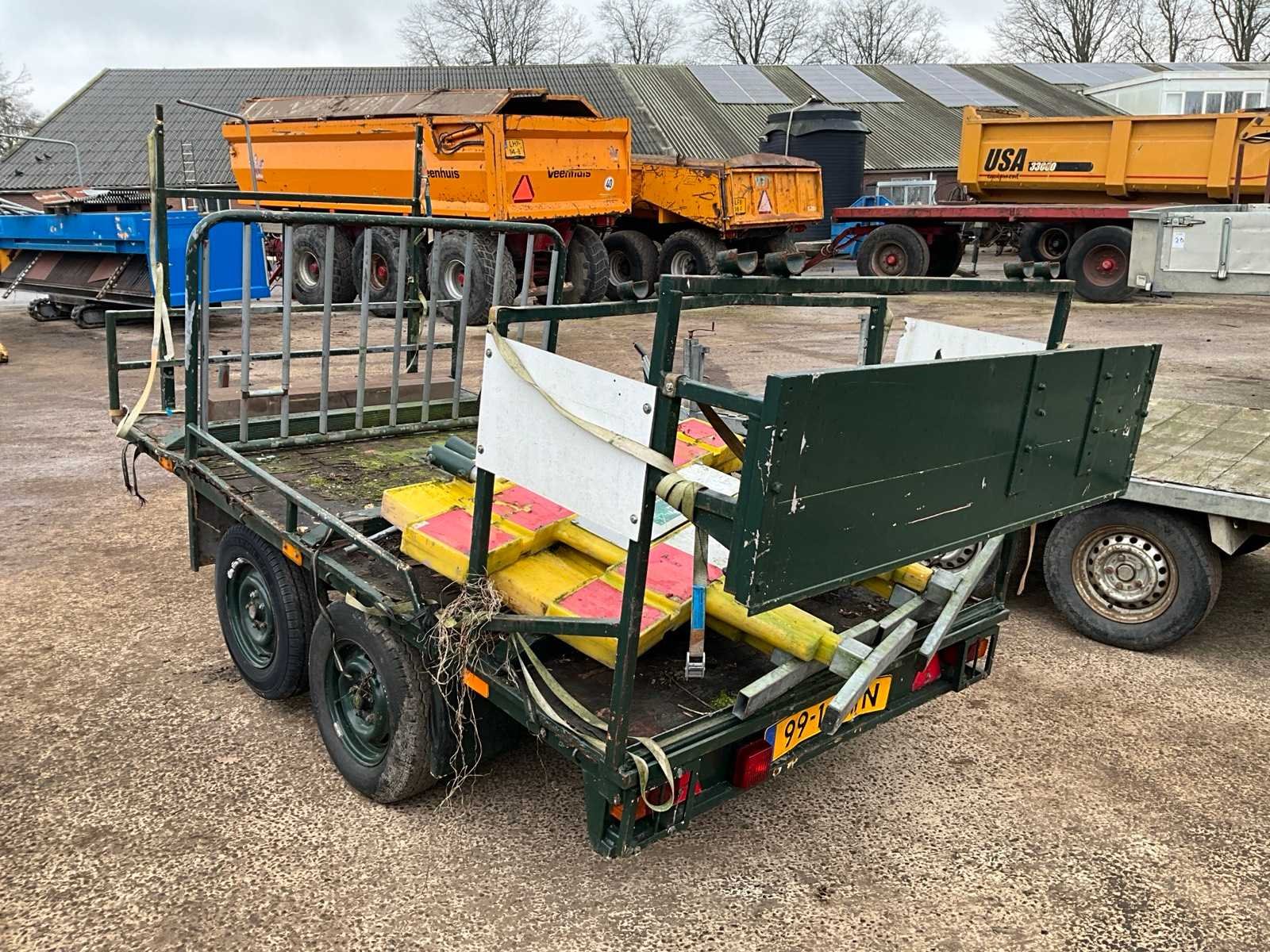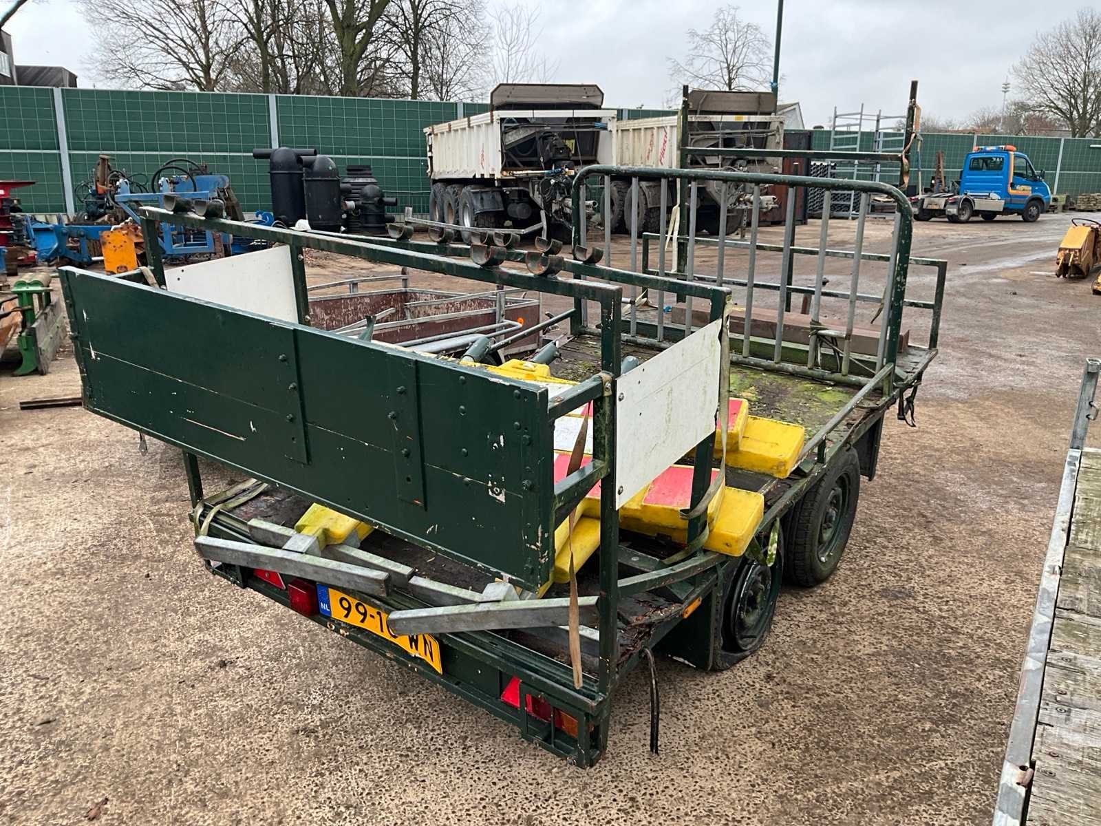 Voorzien van 2 afzetborden; let op, lekke band Merk: Equipe Type: 150 V Bouwjaar: 1981 Chassisnummer niet afleesbaar: true Aantal assen: 2 Laadbak afmeting l: 280cm Laadbak afmeting b: 155cm Ledig gewicht: 350kg Laadvermogen: 1150kg Datum eerste toelating: 1981-02-24 Datum eerste toelating (NL): 1981-02-24 Kenteken: 99-10-WN Hoogte: 165cm Lengte: 415cm Breedte: 157cm