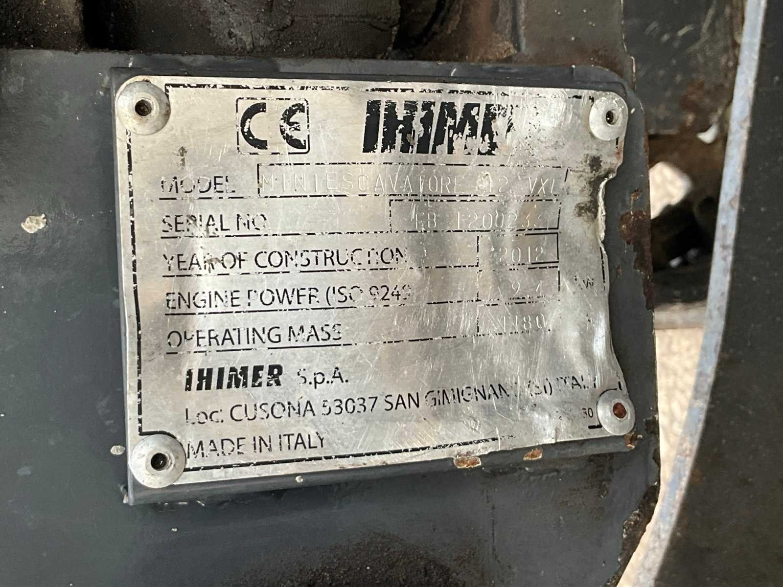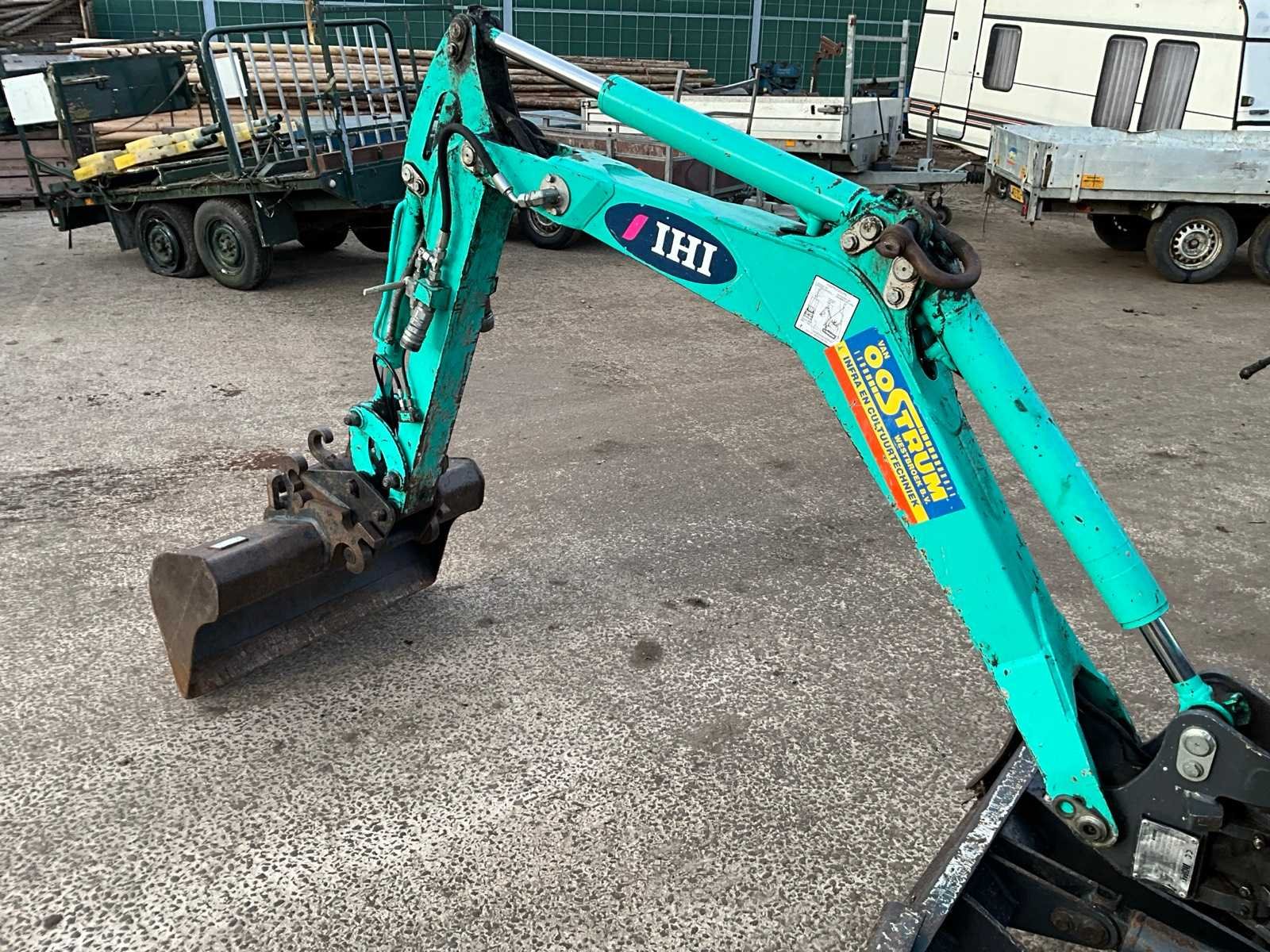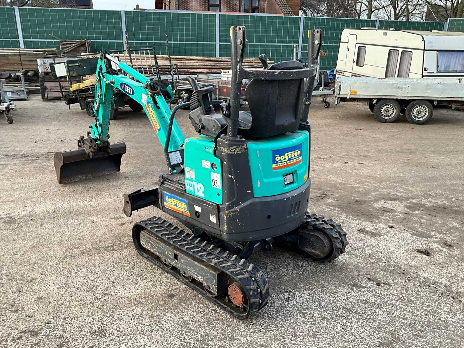 Zonder sleutel; start d.m.v. schroevendraaier Merk: IHI Type: 12 VXE Bouwjaar: 2012 Serienummer: EB12002331 Motorvermogen (kW): 9.4kW Brandstof: Diesel Bedrijfsgewicht: 1180kg Gieklengte: 2650mm Inclusief graafbak: Yes Graafbak afm. l: 800mm Graafbak afm. h: 500mm Rups breedte: 180mm Afgelezen urenstand: 2025 Totale afmeting Breedte: 1000mm Totale afmeting Hoogte: 1700mm