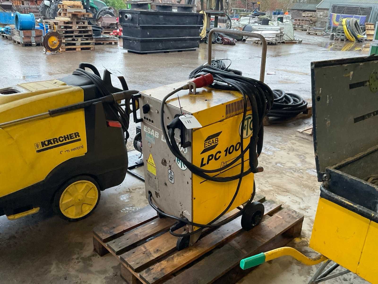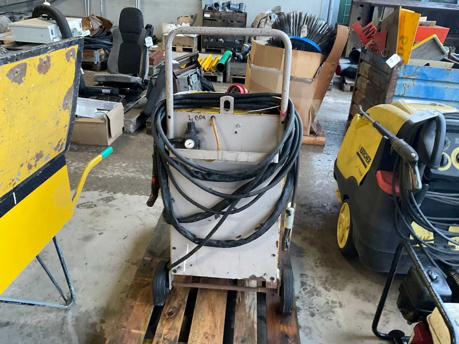 Mobiel Merk: ESAB Type: LPC 100 Ampère belasting: 100A Inschakelduur: 60% Aansluiting: 400V Afmeting l: 600mm Afmeting b: 700mm Afmeting h: 1300mm