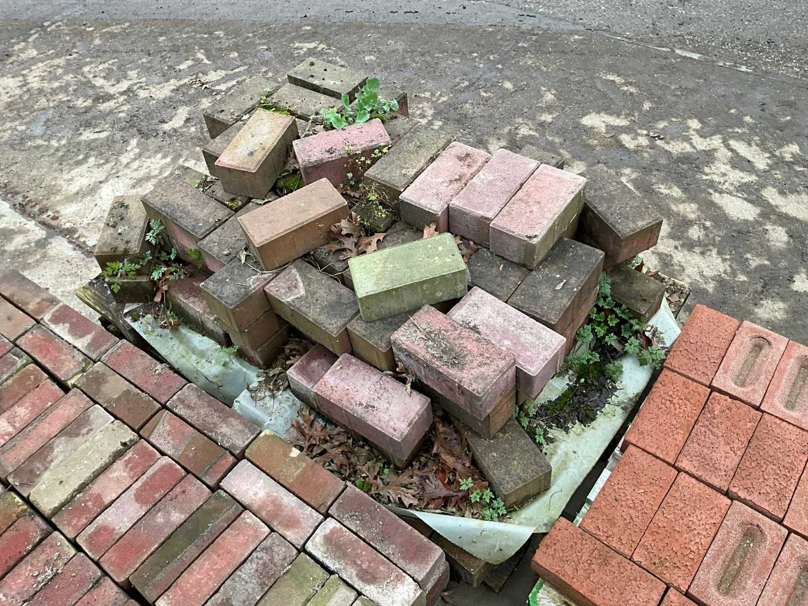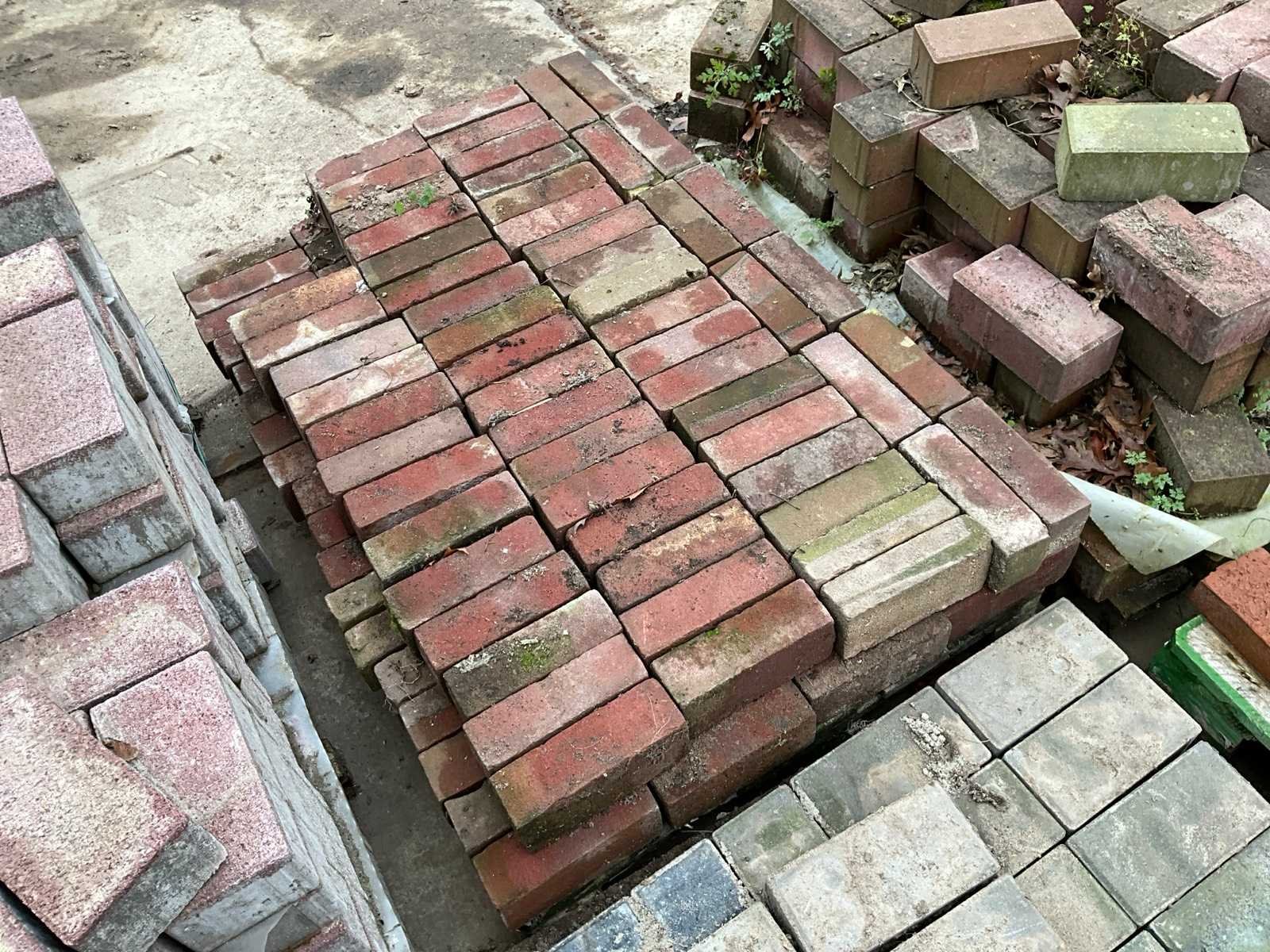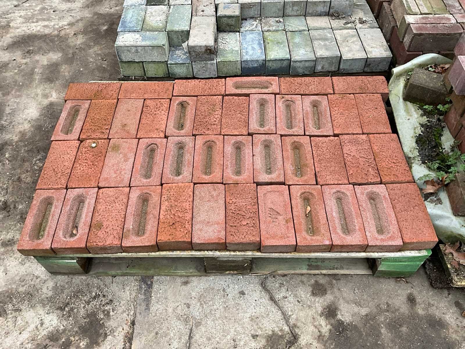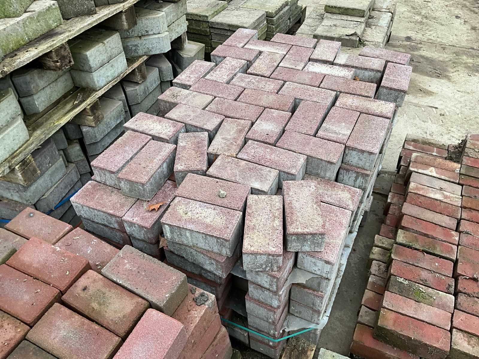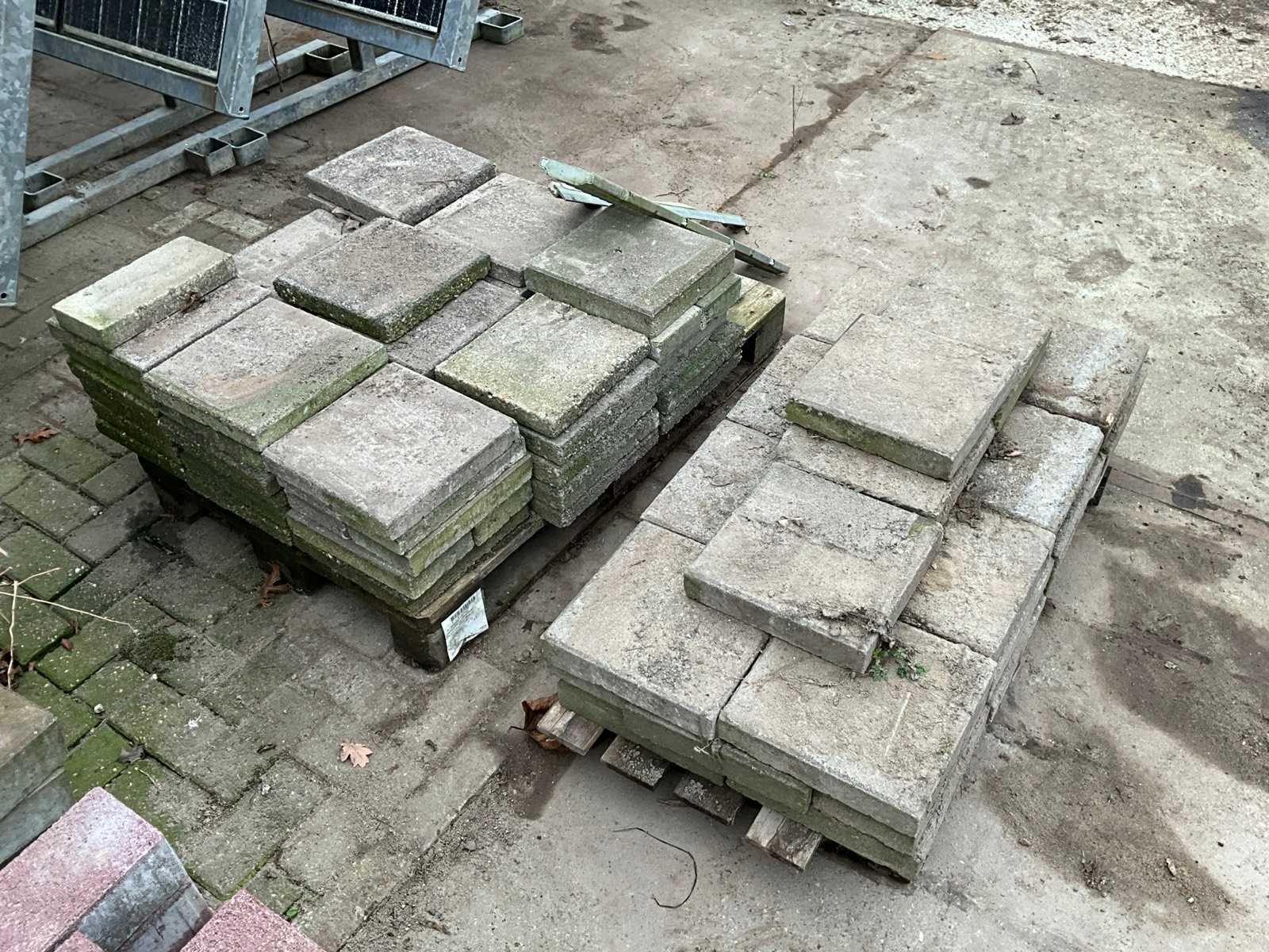 Bestaande uit totaal 7 pallets met klinkers waaronder 20x10x8 cm; 20x10x5 cm en 20x8x6 cm; inclusief 1 pallet bisschopmutsen 30x20x8 cm en 2 pallets tegels 30x30 cm