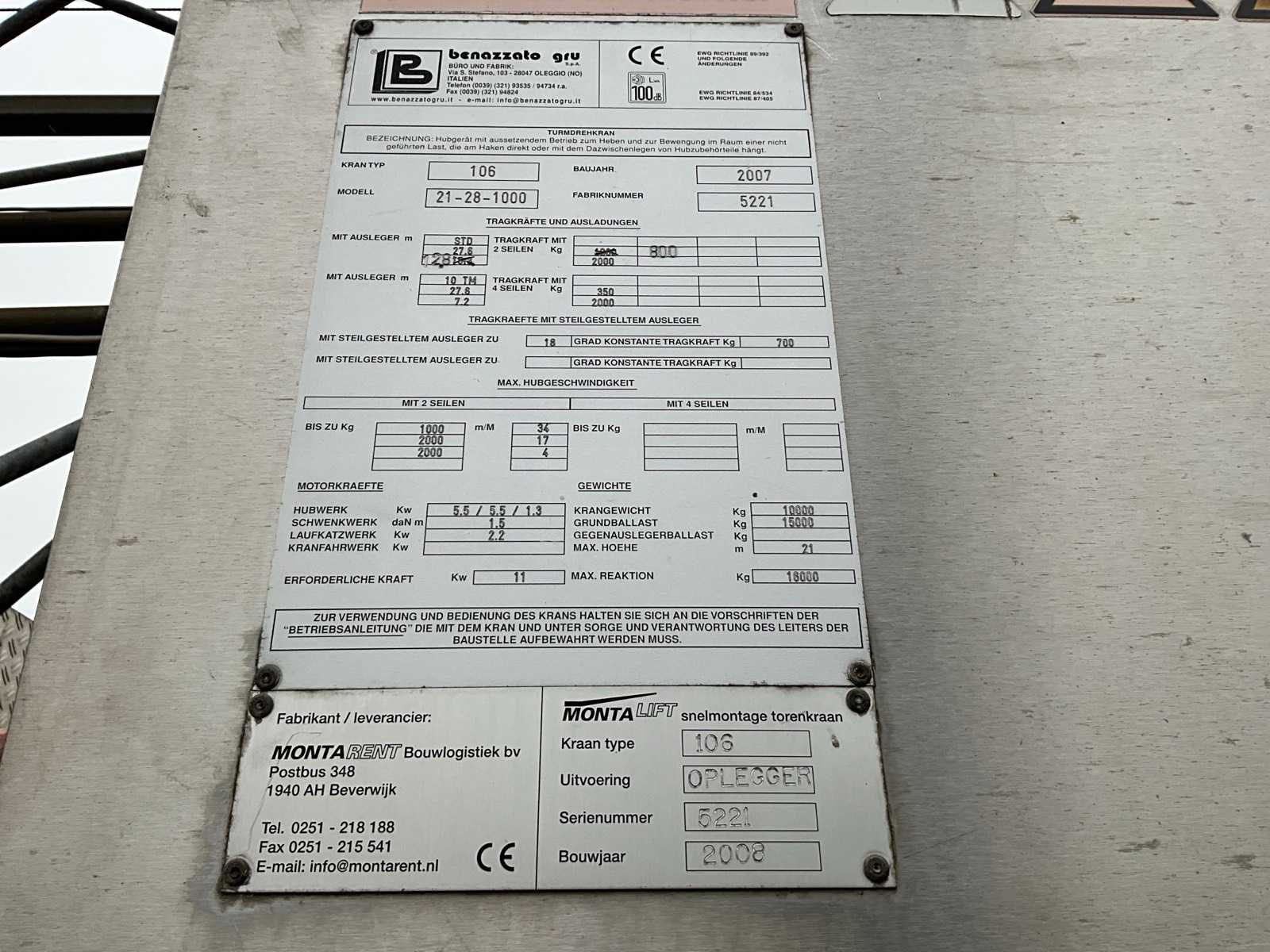 2007 montalift 106 oplegger torenkraan