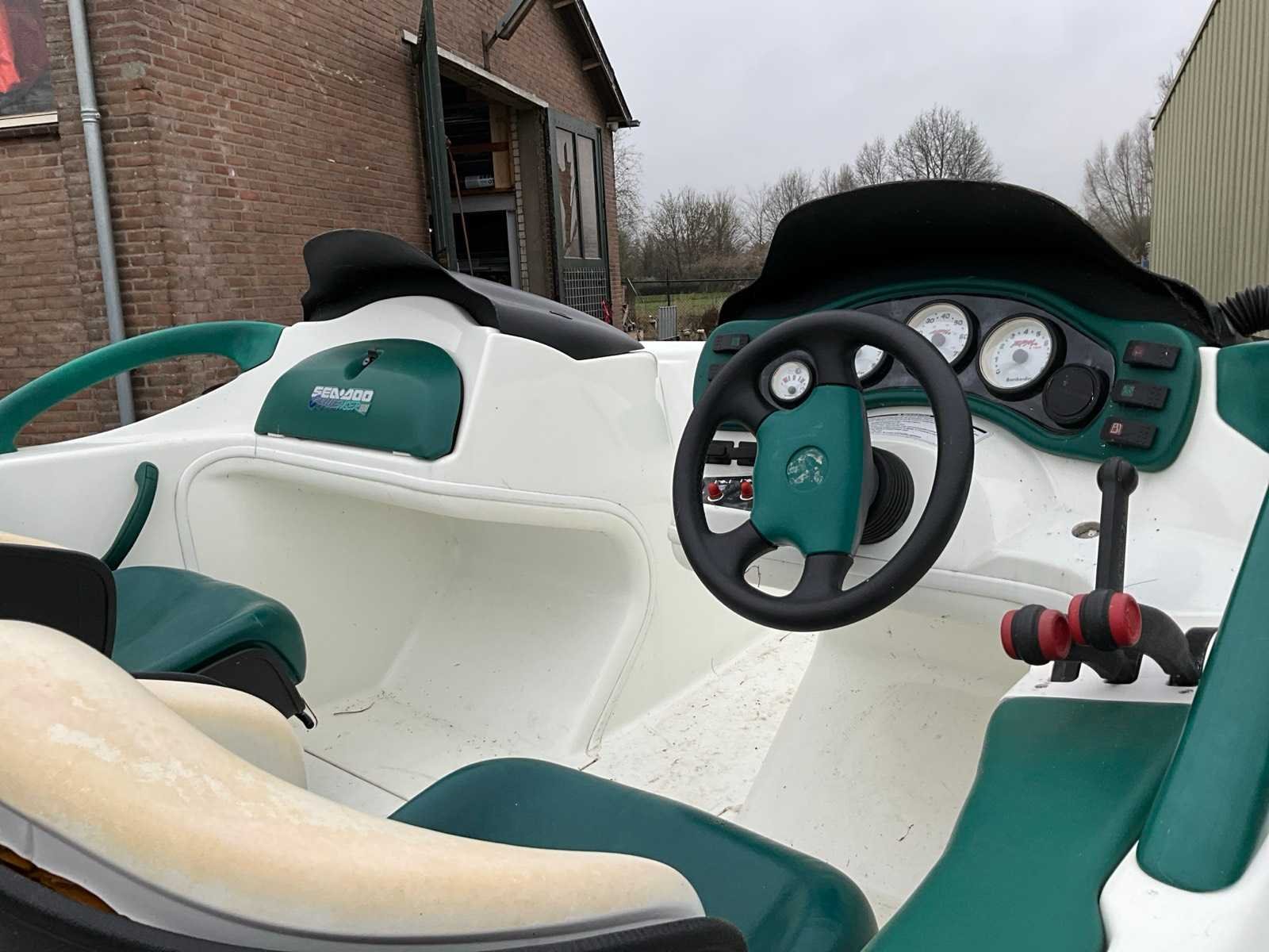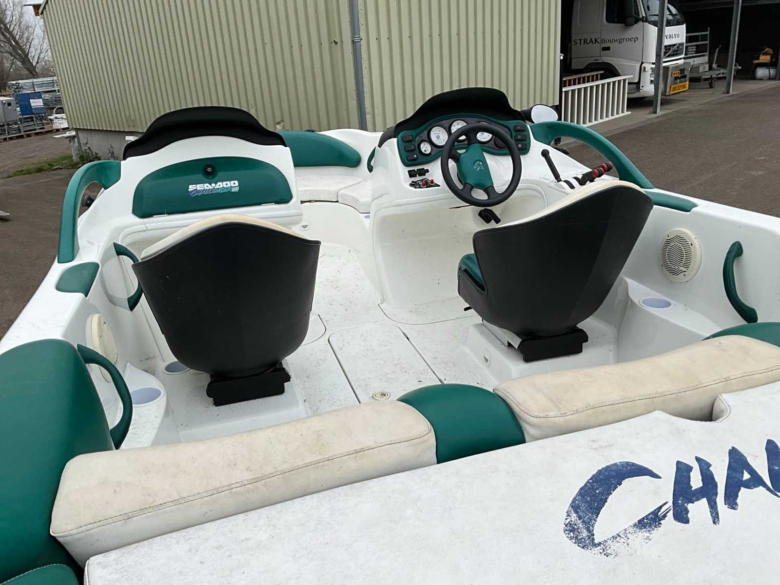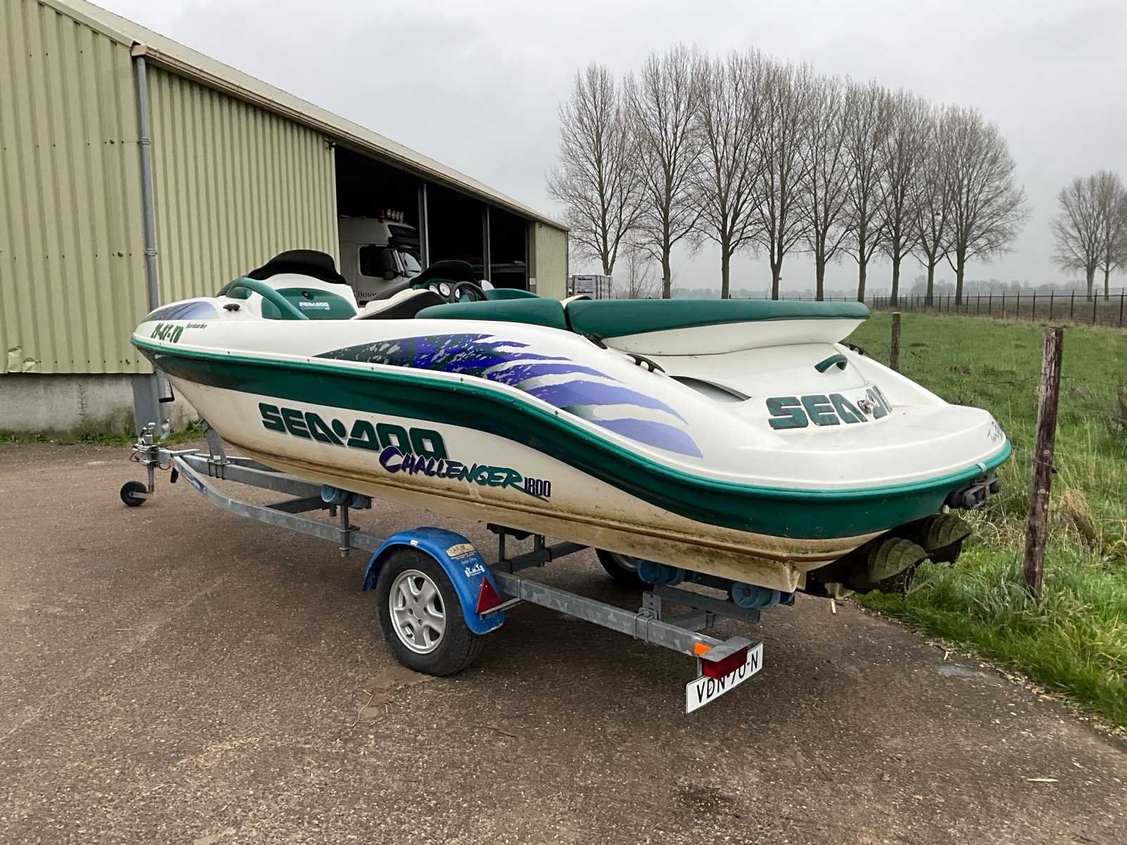 Twin Rotax, 2x 110 pk motor, Met Freewheel trailer uit 2003 Merk: Seadoo Type: Challenger 1800 Bombardier Rompmateriaal: Polyester Bouwjaar: 1997 Breedte formaat: 2.2m Registratie nummer: 29-87-YD Binnenboord: true Lengte: 5.45